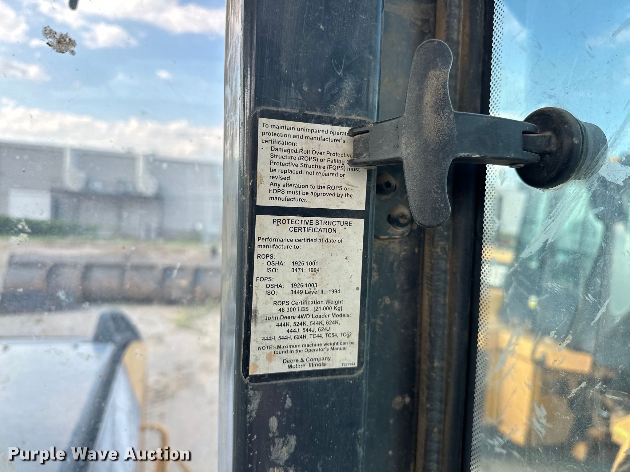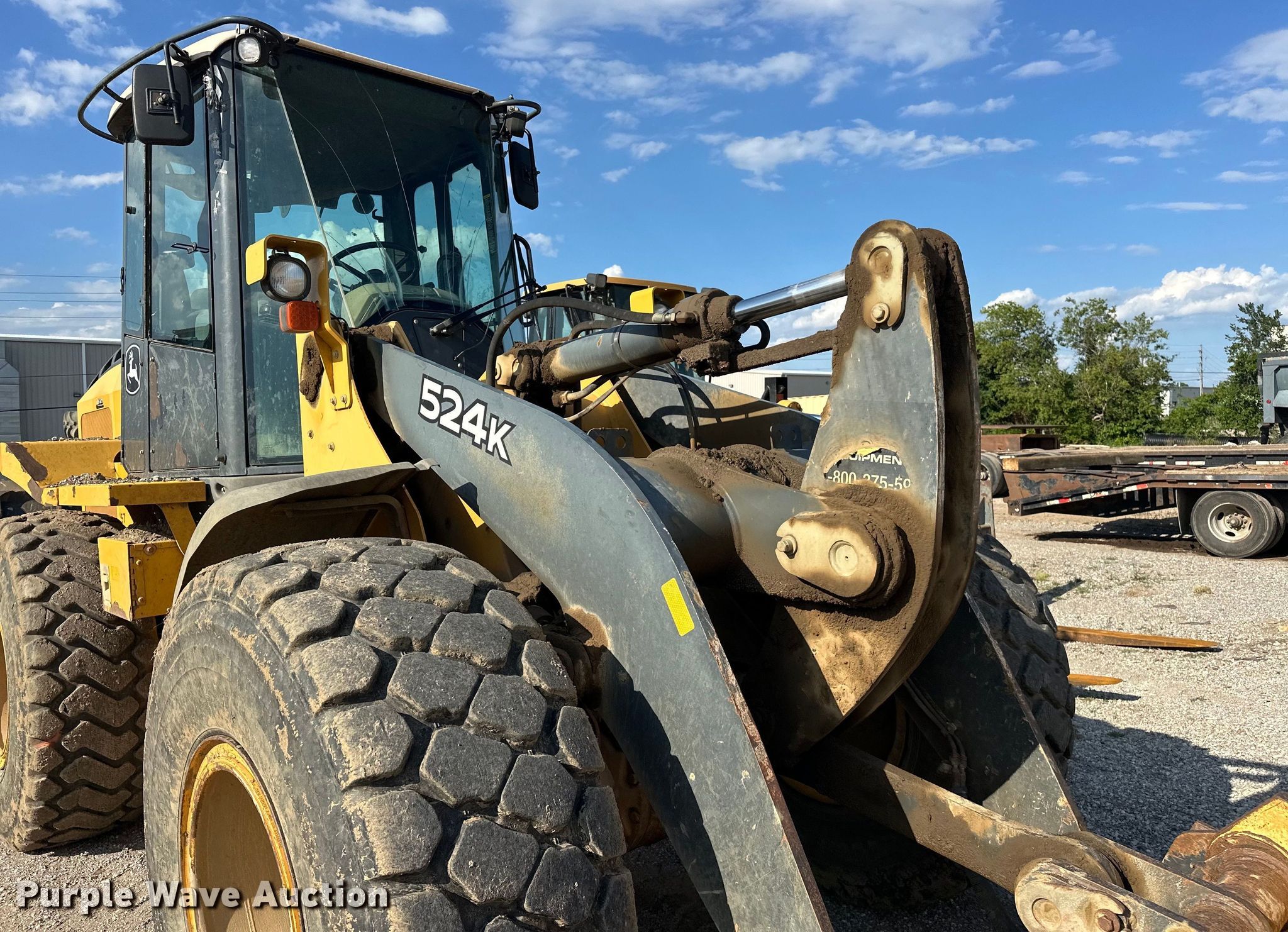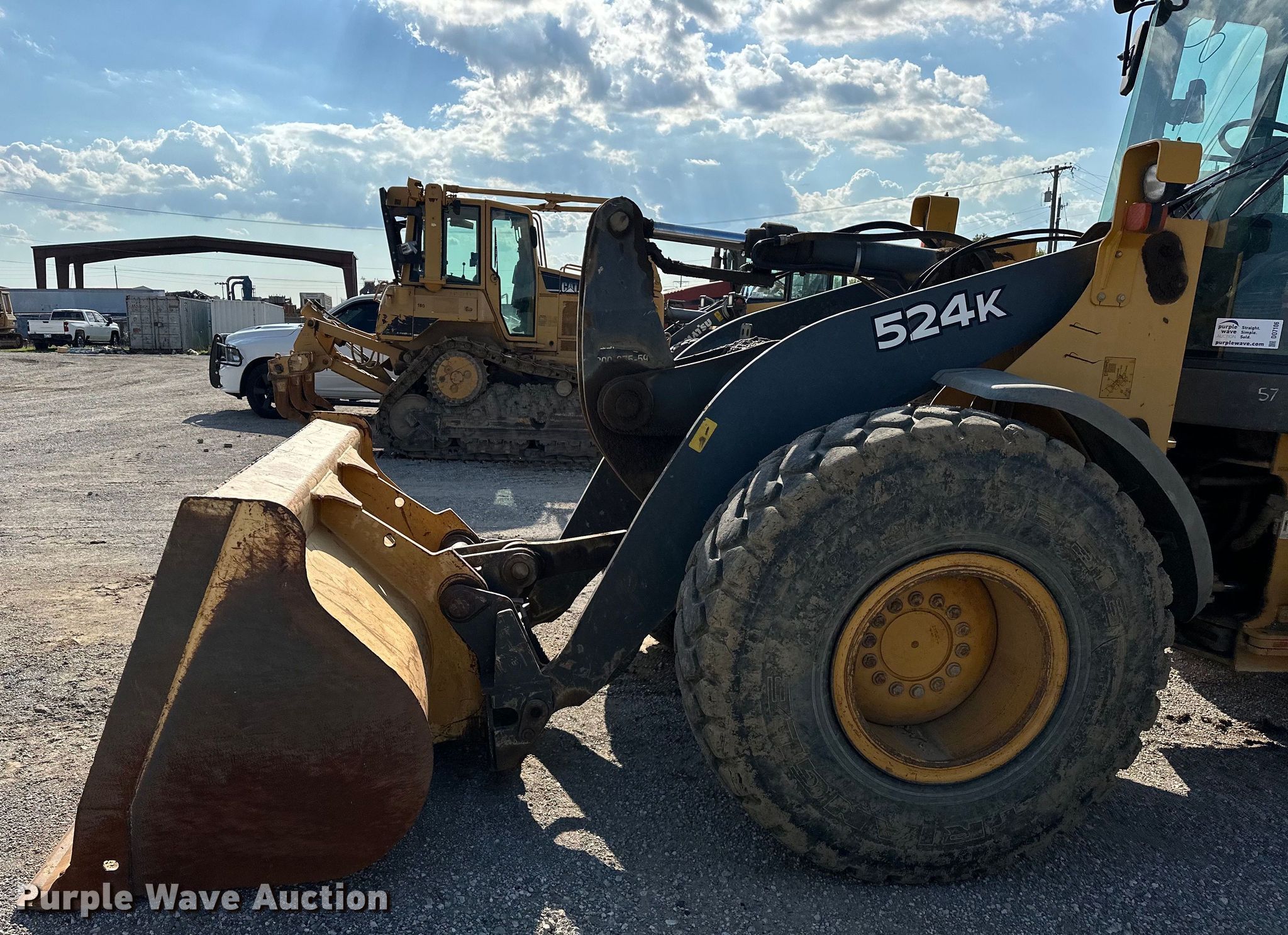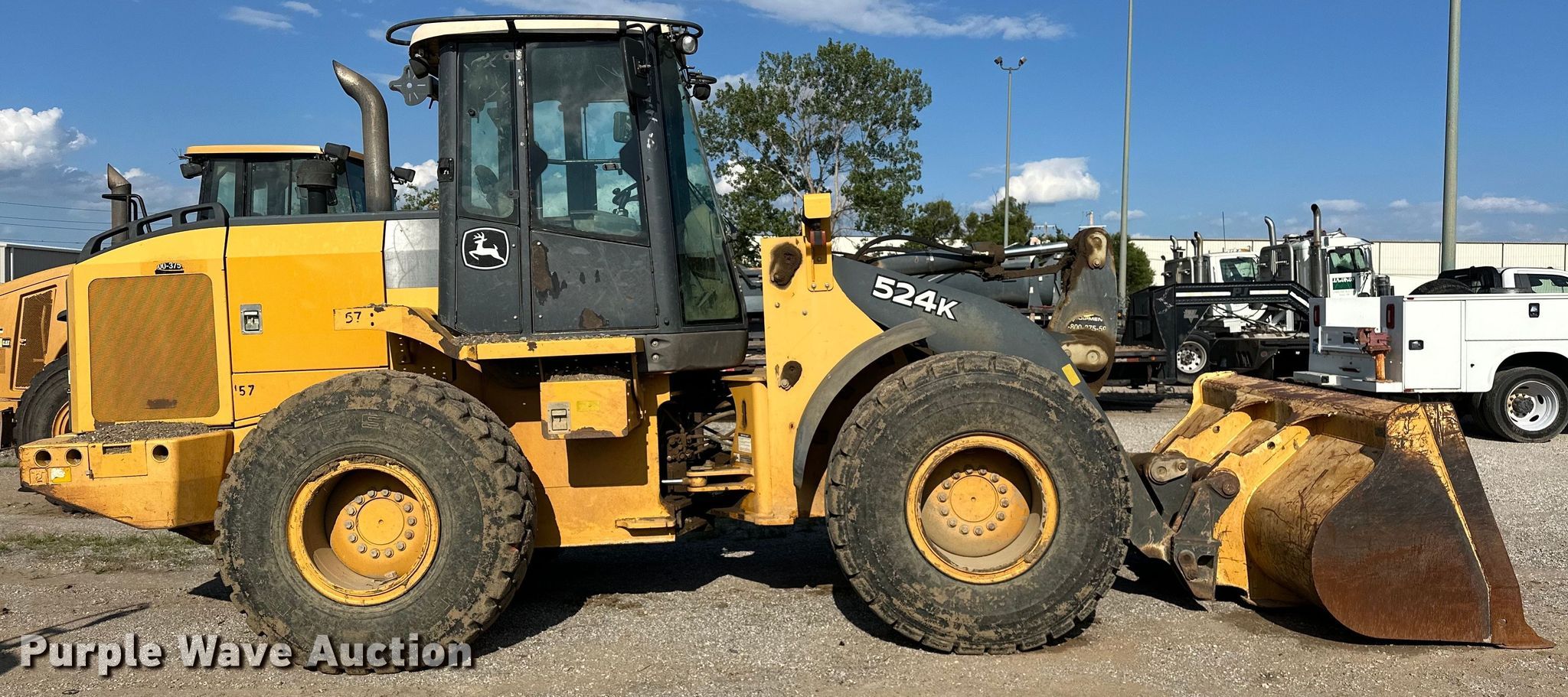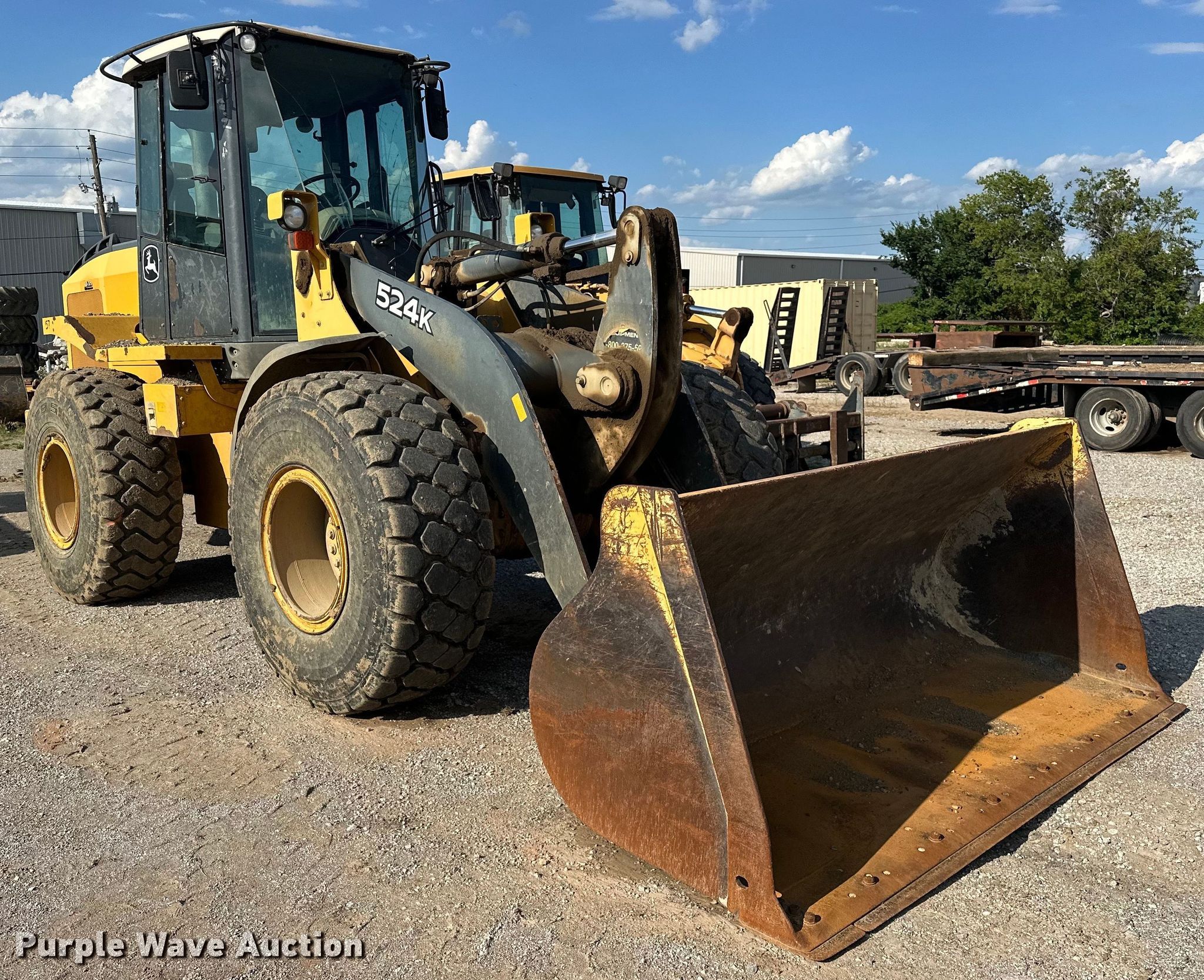 Purple Wave is selling a used Wheel Loader in Oklahoma. This item is a 2009 John Deere 524K wheel loader with the following: Hours: 11,327 on meter, Miles or hours may vary, unit still in use, Serial: DW524KZ625199