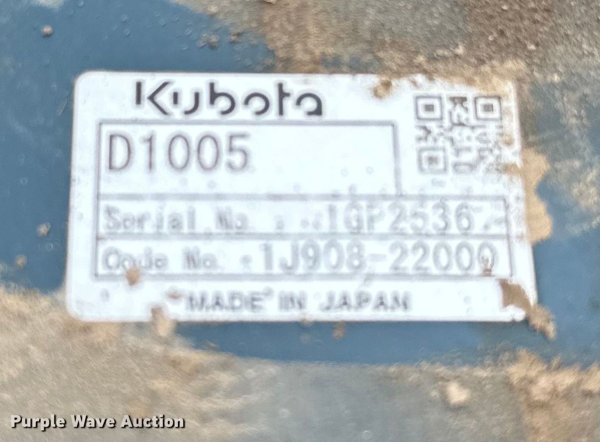 Bomag BMP 8500 trench compactor. Hours: Unknown. Engine Kubota D1005, Serial: 1GP2536, Displacement: 1.0L, Cylinders: 3, Fuel type: Diesel. Transmission Hydrostatic. Features Vibratory system Two speed, Drum: Padfoot Width: 34", Diameter: 20", Drum scrapers: Front, Rear, Remote control. Notes Dead battery, Engine issues, stalls , Unknown operating condition. Cherokee Builders Inc. Tulsa, OK 74116
