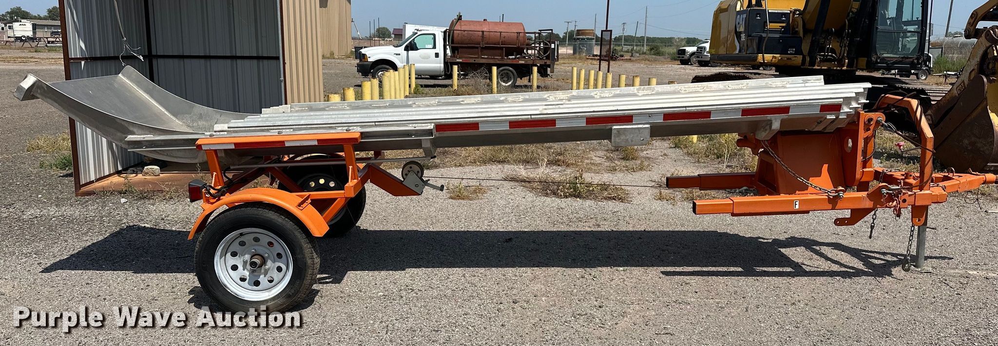 Evacuation slide trailer. Serial: BE715-3. Dimensions Overall: 20' L x 66" W. Features Sections: 4, Width: 24", Section length: 12'. Chassis Ball hitch: 2", Landing gear: Single, Suspension: Spring. Tires Steel wheels, Size: ST205/75D15. Transfer of ownership documentation will be a bill of sale. 343 Southeast 4th Street. Lindsay, OK 73052