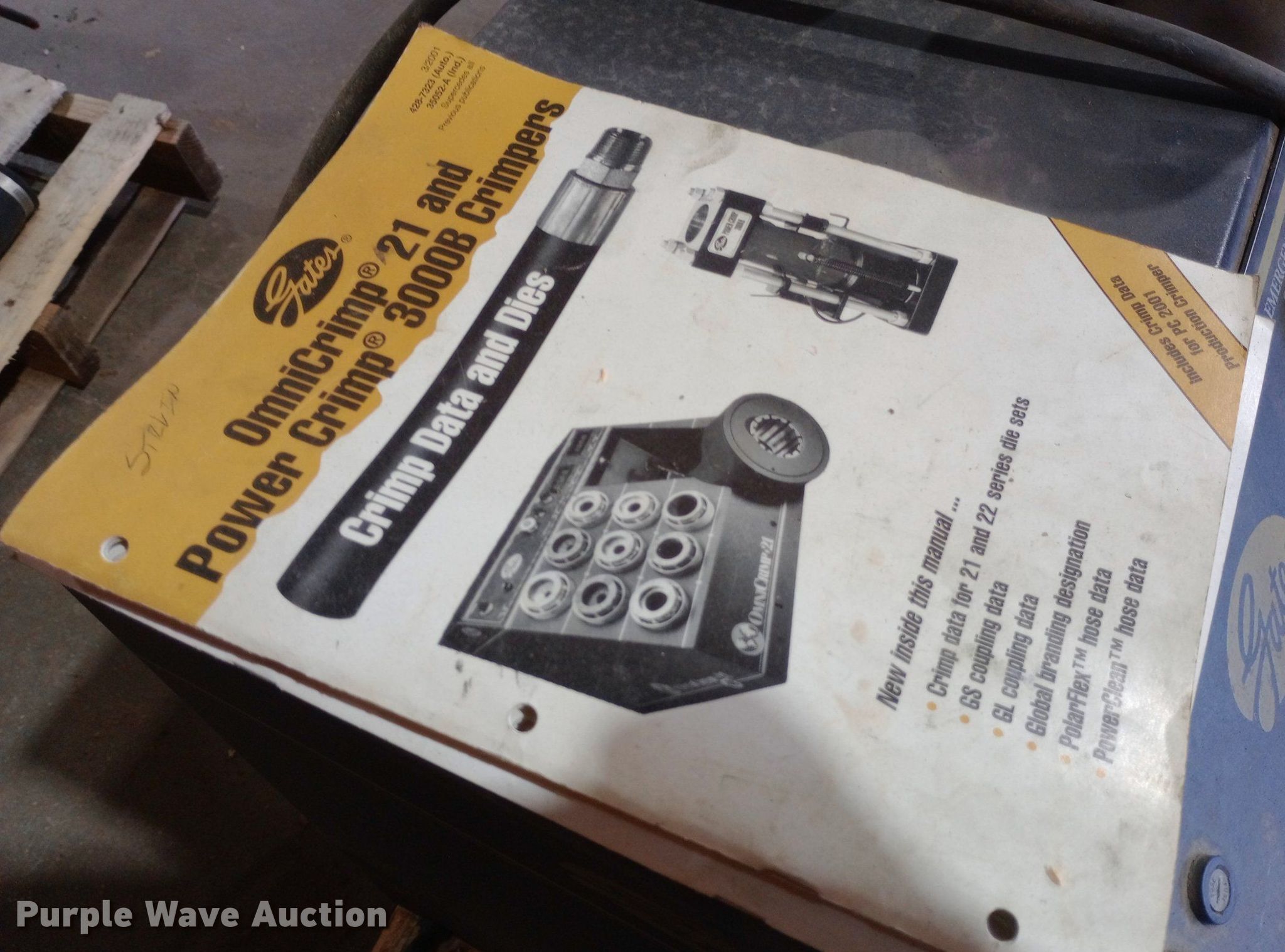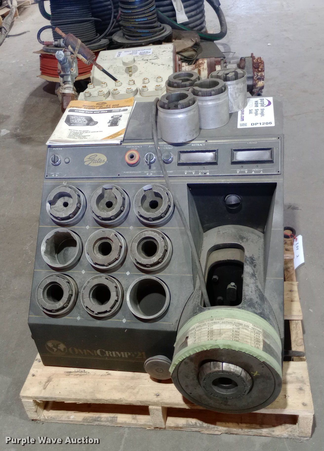 Purple Wave is selling a used Tools in Kansas. This item is a Gates Omni Crimp 21 hydraulic hose crimping machine with the following: Serial: 1050-0