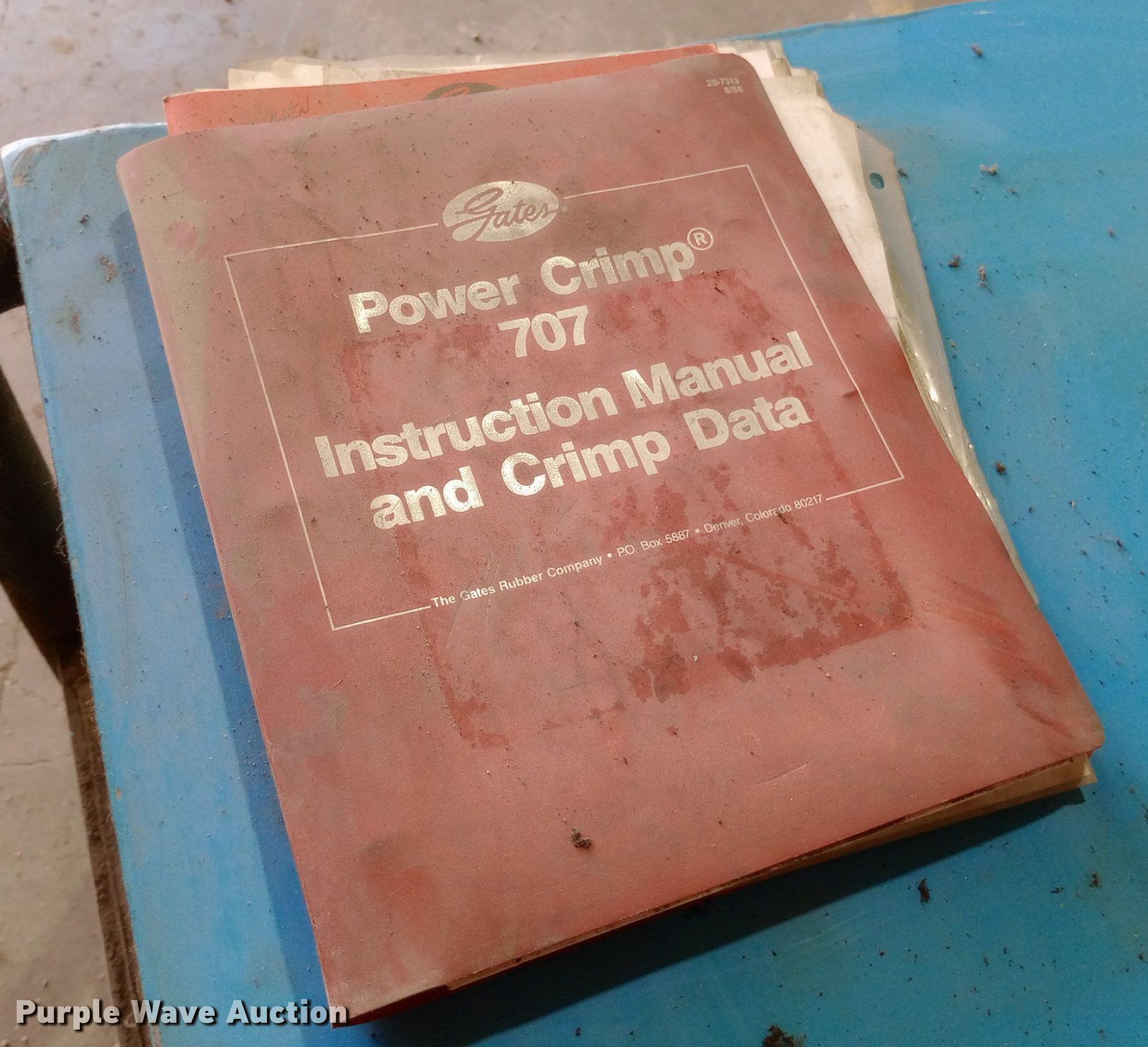 Purple Wave is selling a used Tools in Kansas. This item is a Gates PC 707 hose crimper with the following: HP: 1, Volts: 115/208-230, Phase: Single