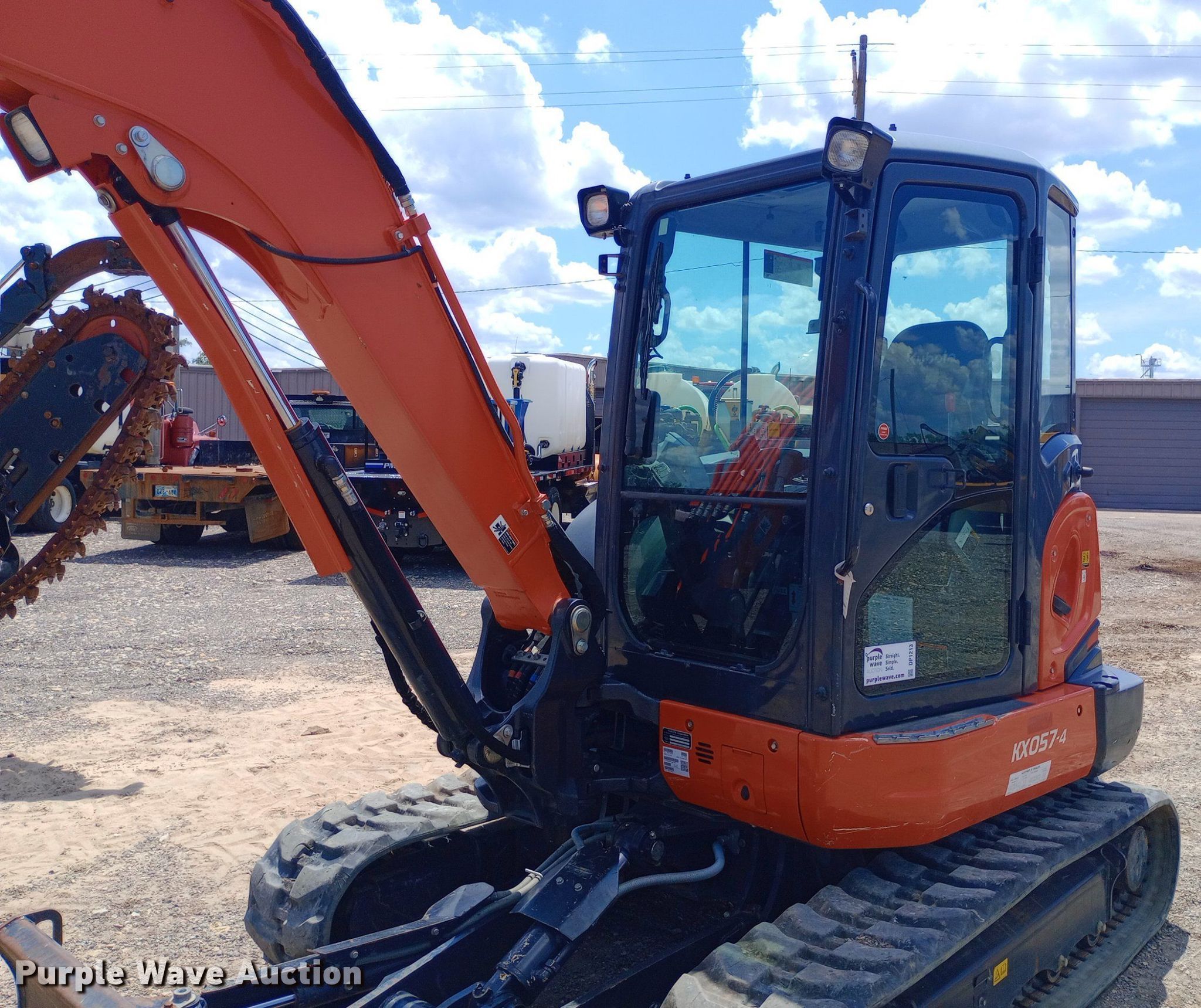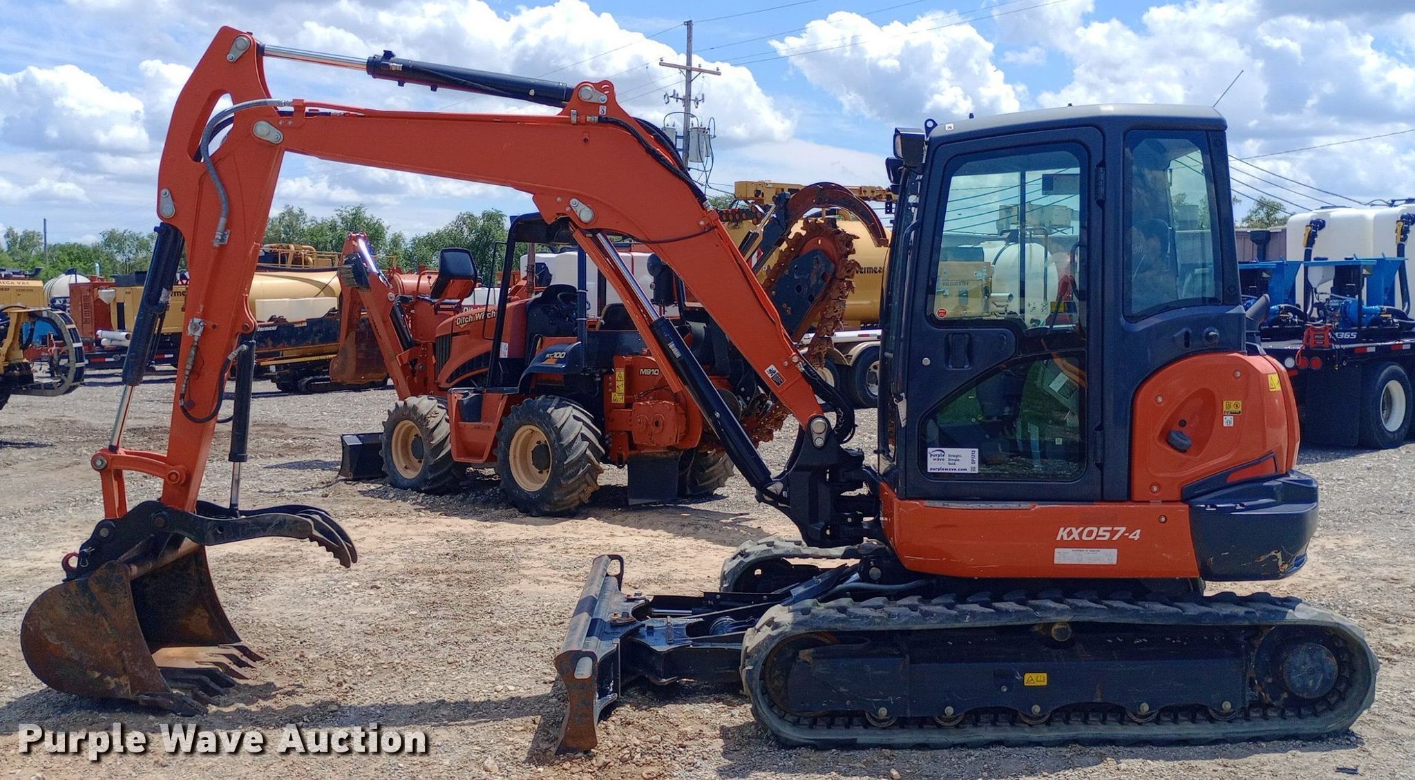 Purple Wave is selling a used Mini Excavator in Kansas. This item is a 2020 Kubota KX057-4 mini excavator with the following: Hours: 421 on meter, Serial: KBCDZ360EL3B32484