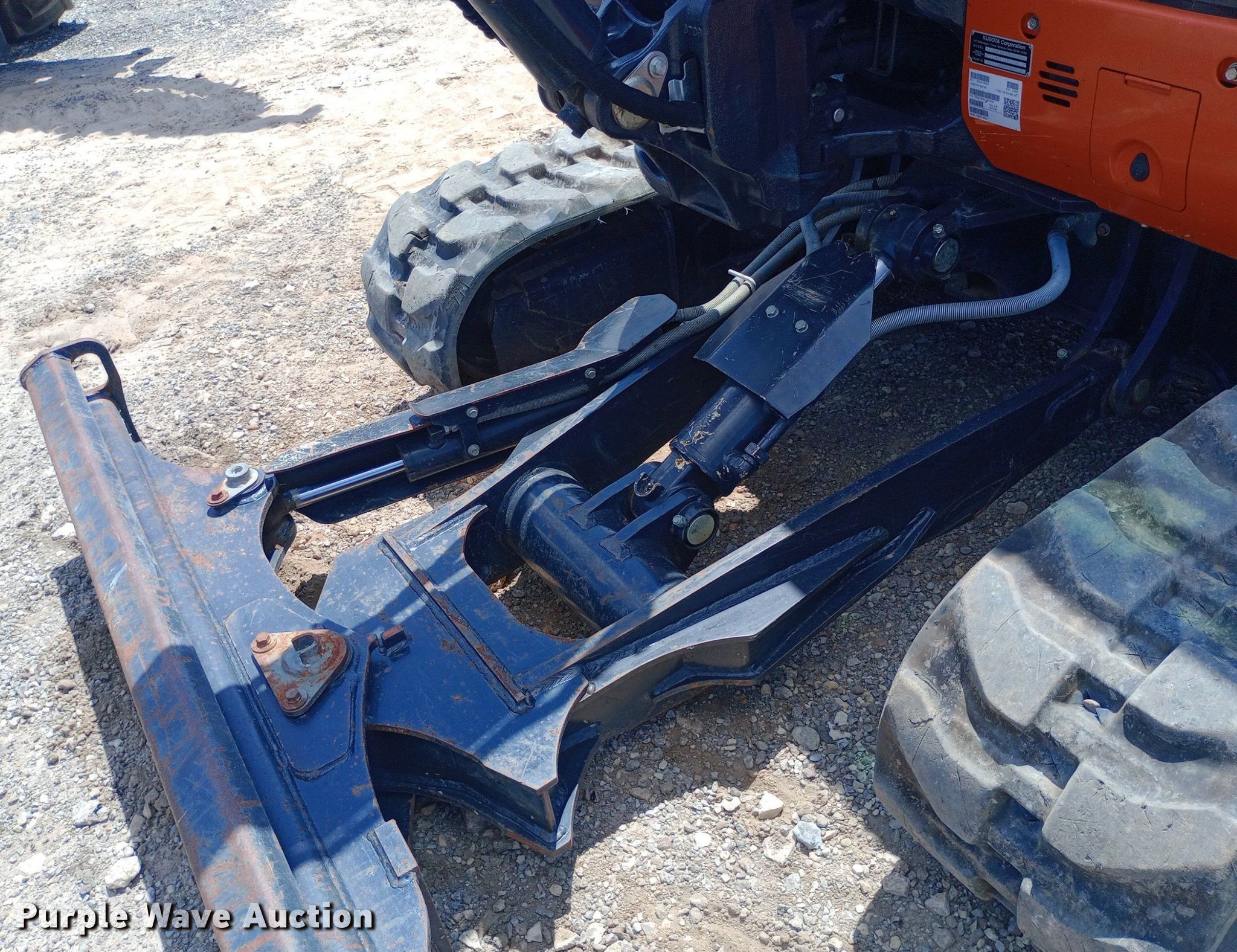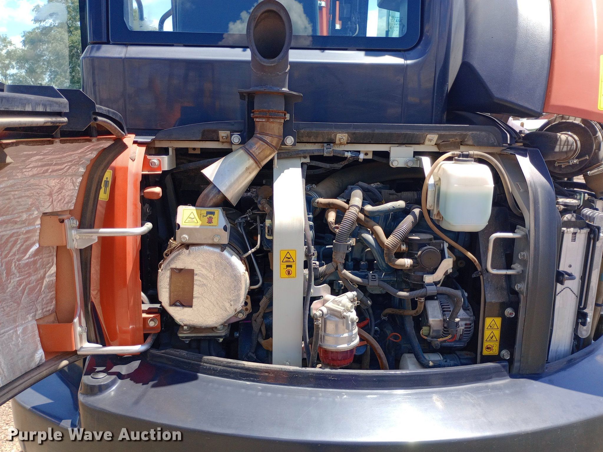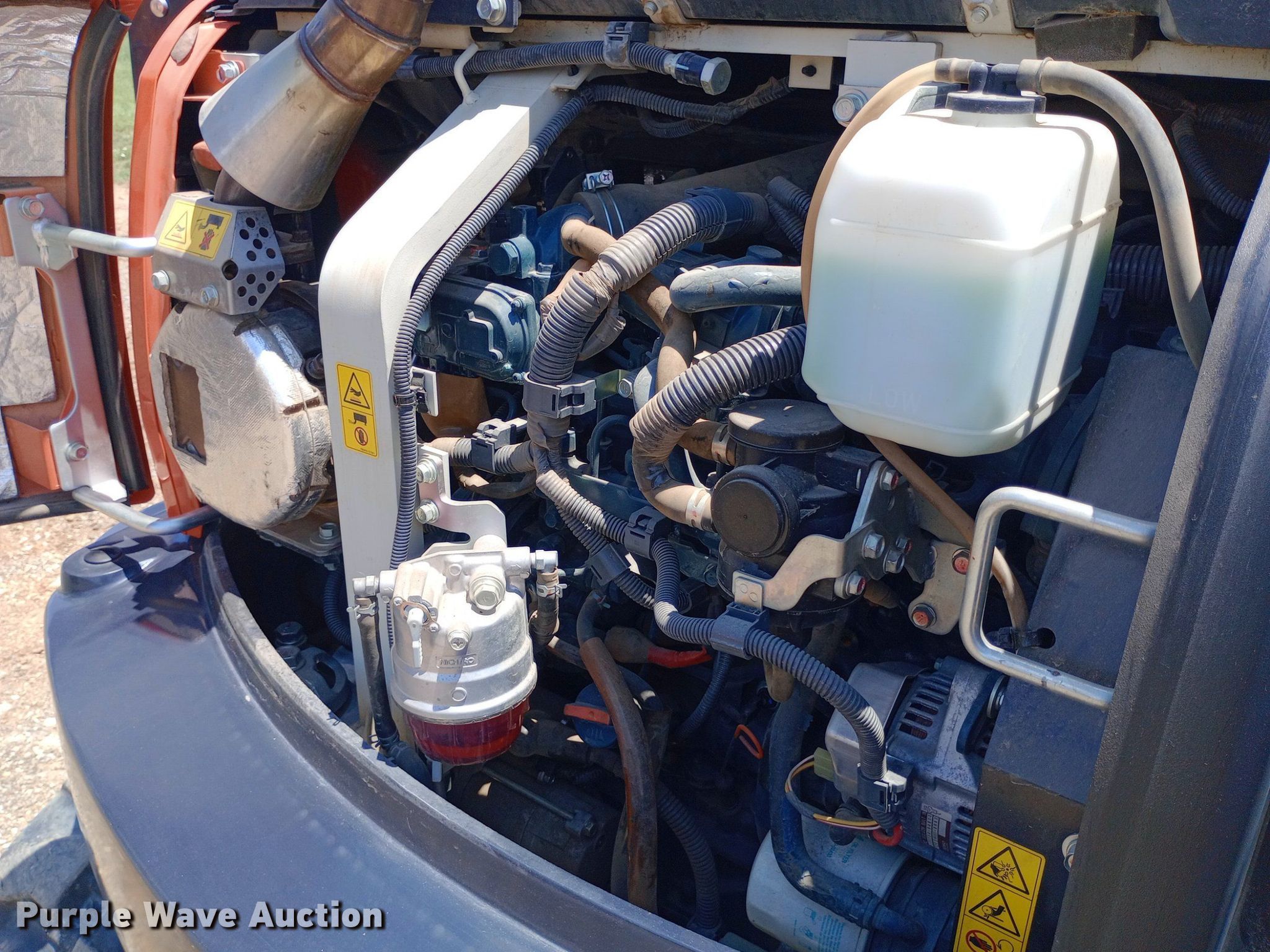 2020 Kubota KX057-4 mini excavator. Hours: 421 on meter, Serial: KBCDZ360EL3B32484. Engine Kubota, Serial: 8LC1942, Cylinders: 4, Fuel type: Diesel. Transmission Hydrostatic. Operators station Enclosed cab, AC, Heat. Features Auxiliary hydraulics, Backfill blade Width: 77", Boom Swing, Stick Stick length: 6', Thumb: Hydraulic, Bucket Width: 37", Teeth: 77. Tracks Width: 15", Rubber. Source HDD, LLC. Hutchinson, KS 67501