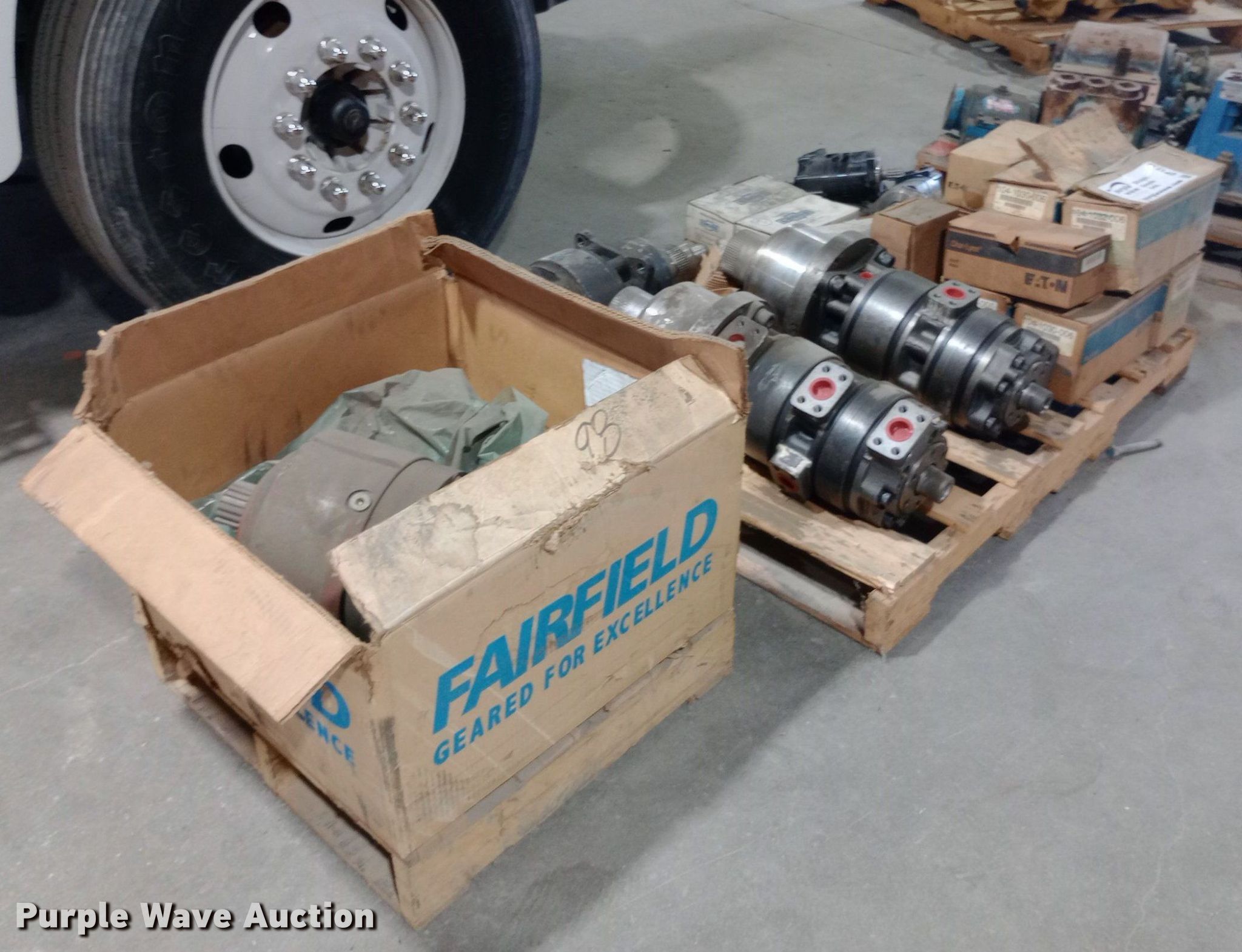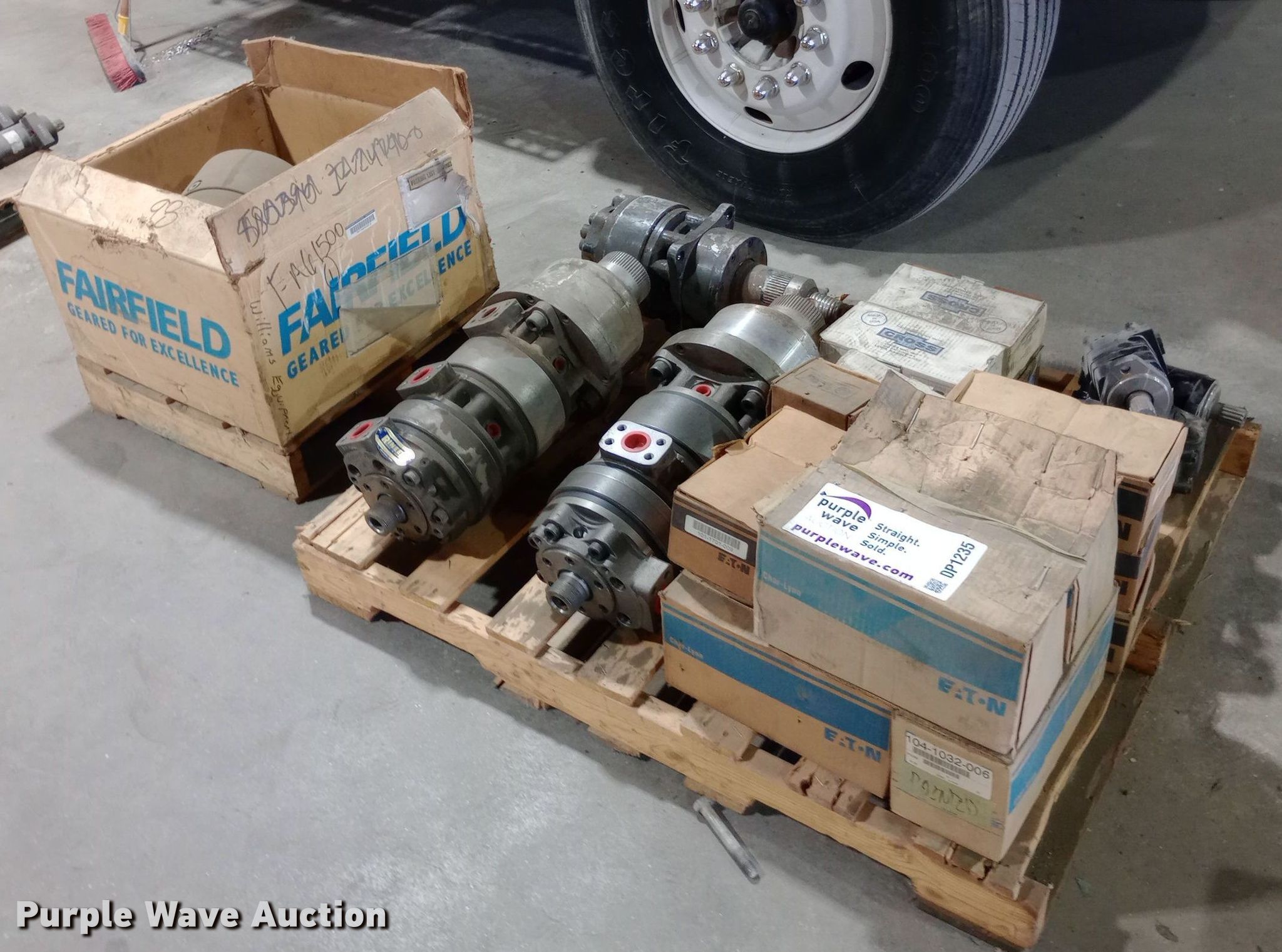 Purple Wave is selling a used Tools in Kansas. This item is a Hydraulic motors with the following: (2) Rinneer 057D4PC0924741008, (3) Eaton 104-1030-006, (2) Eaton 104-1032-006, (4) Eaton 101-1701-009, (6) cross hydraulic valves, Fairfield S3A63325ZB