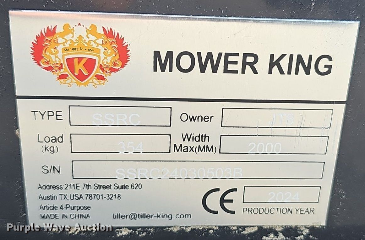 Purple Wave is selling a used Skid Steer Attach. in Nebraska. This item is a 2024 Mower King SSRC skid steer rotary mower with the following: Serial: SSRC24030503B, Width: 72", Unused