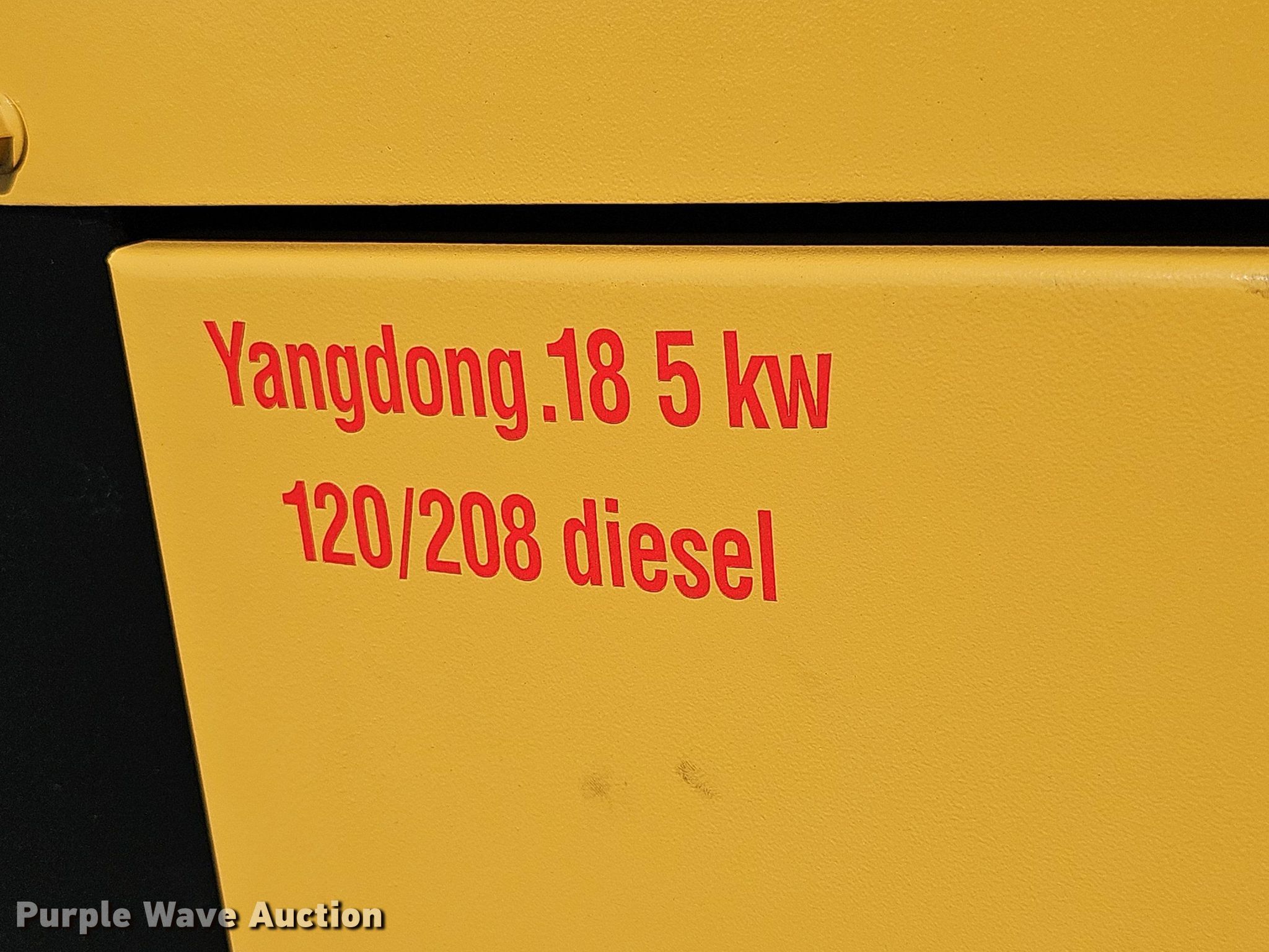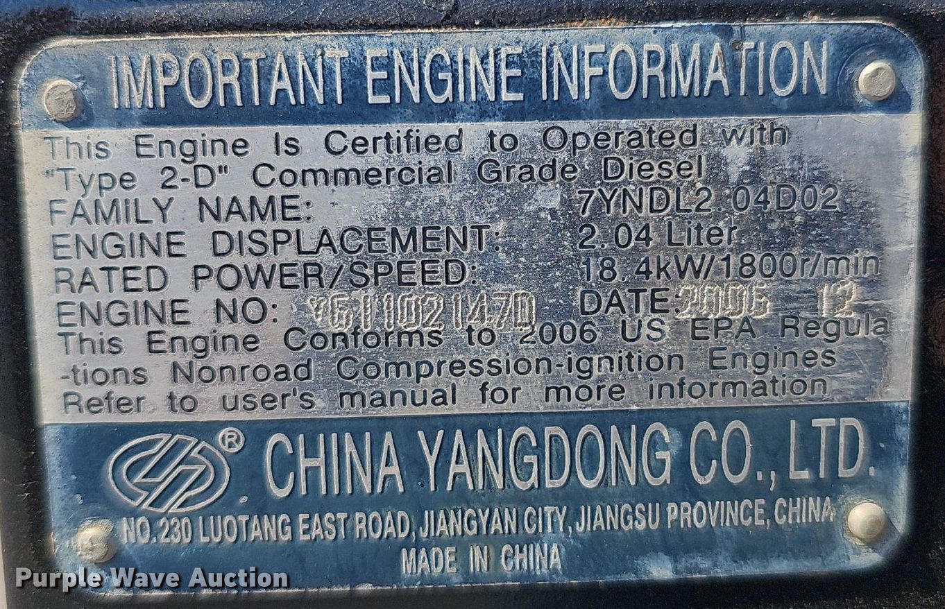 Diesel Pro SDG-Y12S generator. Hours: Unknown, Serial: S0611981. Dimensions 67.5" L x 36" W x 44.5" H. Engine China Yangdong 7YNDL2.04D02, Serial: Y611021470, Displacement: 2.04L, Cylinders: 4, Fuel type: Diesel. Features Generator kW: 12, Phase: Single, Electric start, Fuel tank, Skid mounted. Notes Possible starting and shutoff issues, special sequence required, Non-operational hour meter. Jordan Machinery/ S & N Auto Sales. 25050 US Hwy 275. Waterloo, NE 68069
