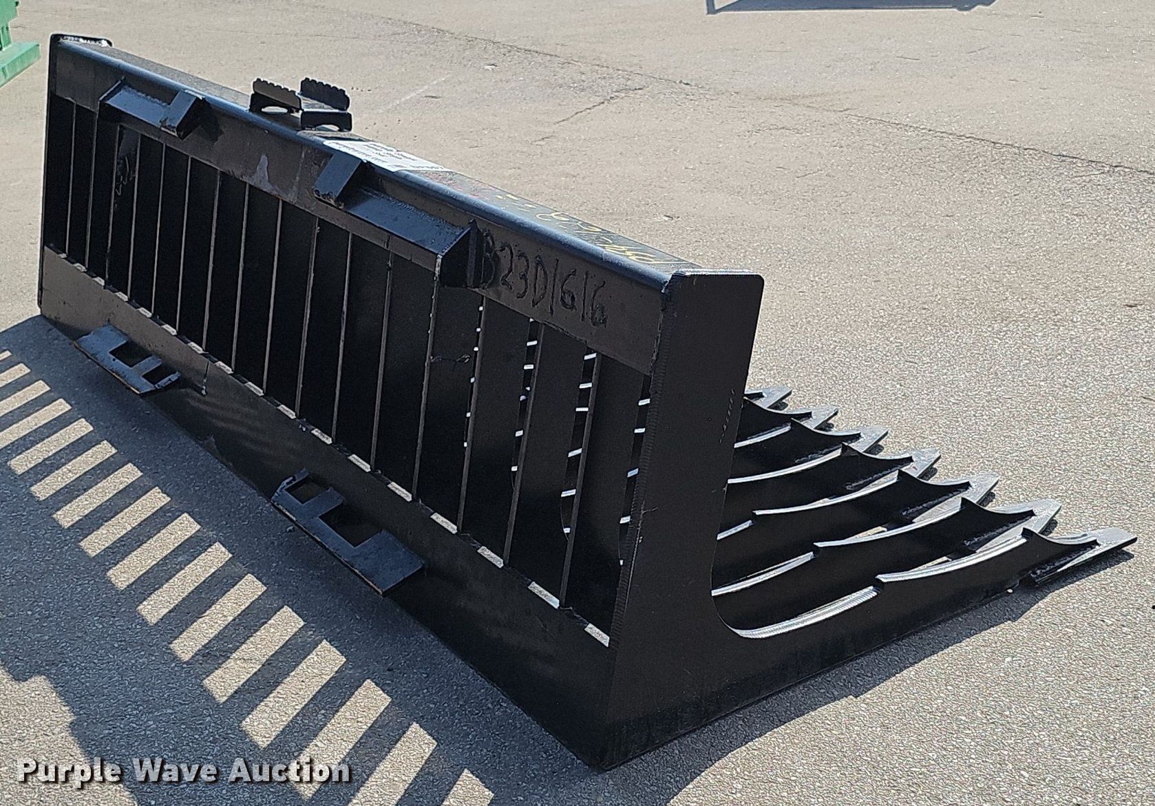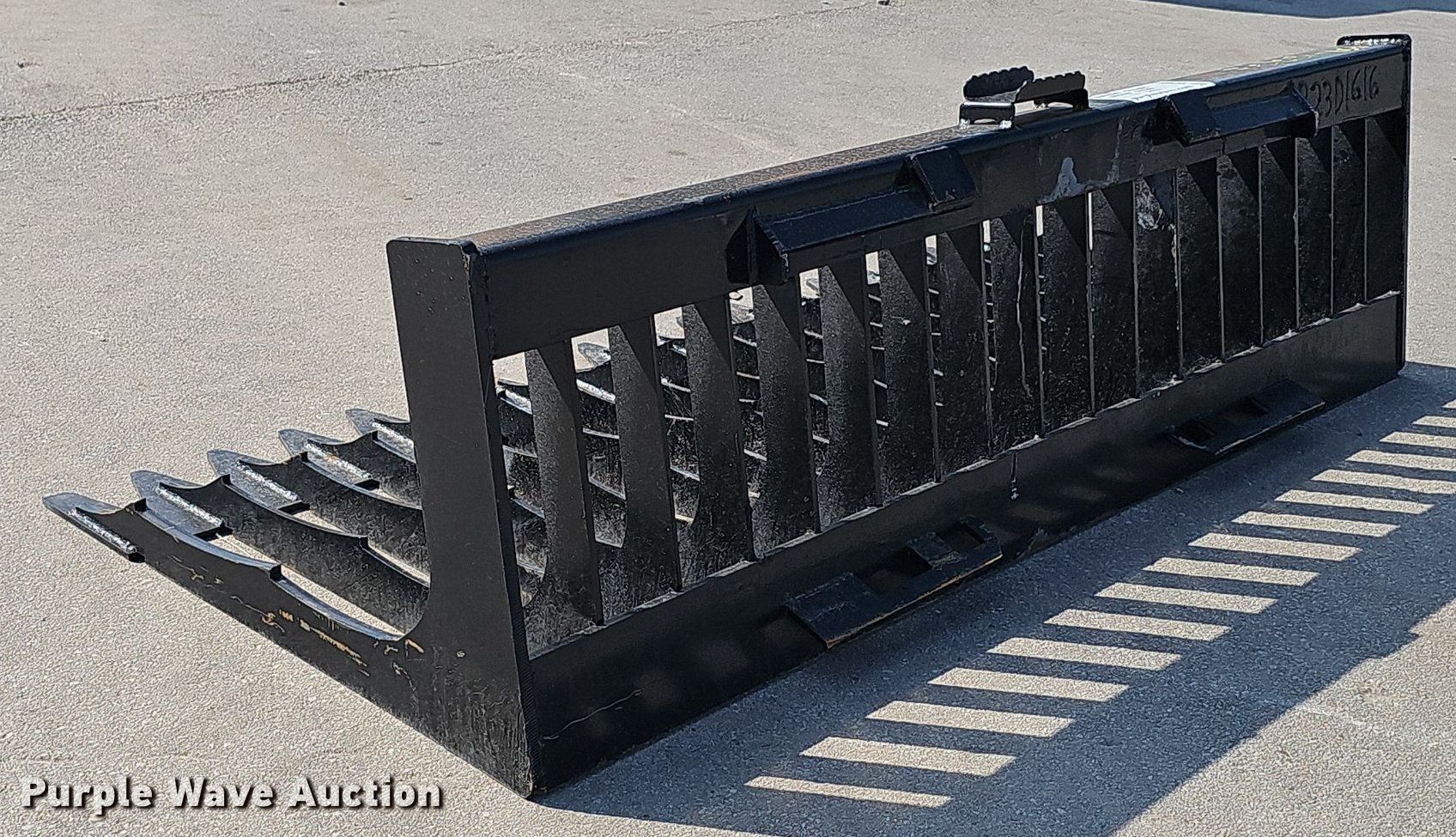 Purple Wave is selling a used Skid Steer Attach. in Nebraska. This item is a 76" W skid steer rock bucket with the following: Serial: B23D1616, Unused