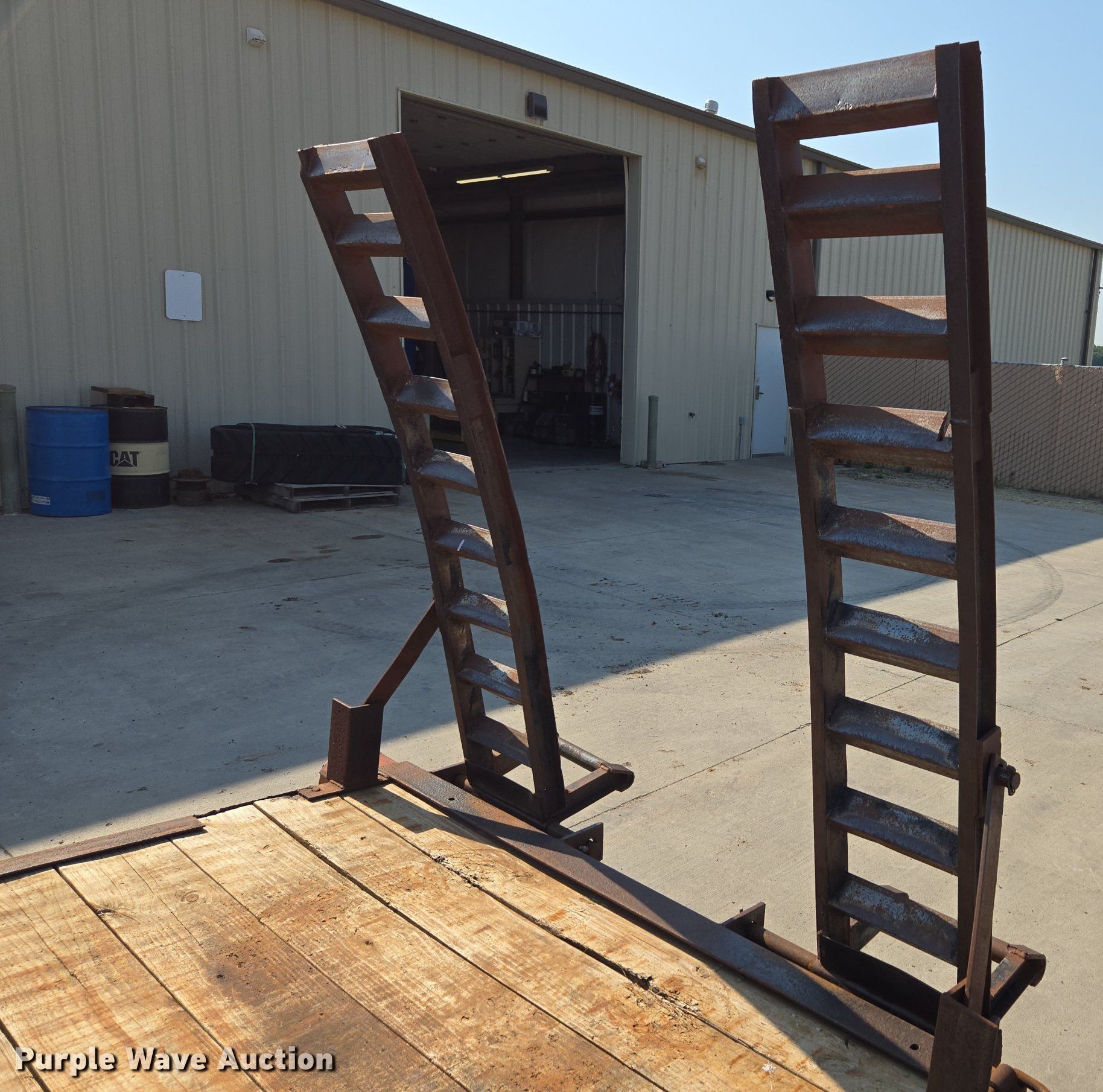 1995 Charles Machine Works TP18-1 equipment trailer. VIN: 1DS0000C4S17M1710. Dimensions Overall: 22' L x 101" W, Deck: 16' L x 76" W, Ramps: Manual Length: 6'. Features Deck type: Wood. Chassis Hitch: Pintle, Landing gear: Single, Suspension: Spring, Brakes: Electric, Axles: Tandem, GVWR: 16,000 lbs, GAWR: 8,500 lbs. Tires Steel wheels, Size: 215/75R17.5. Kansas title. Larson Construction, Inc.. Manhattan, KS 66503
