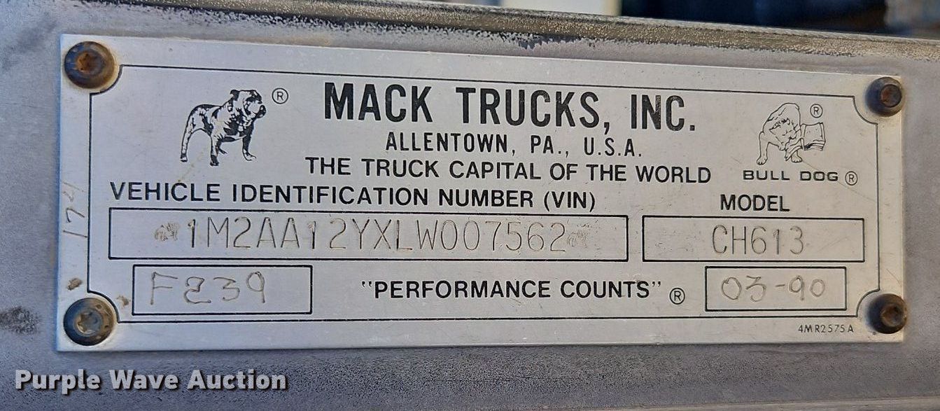 Purple Wave is selling a used Construction Dump Truck in Kansas. This item is a 1990 Mack CH613 dump truck with the following: Miles: 544,326 on odometer, VIN: 1M2AA12YXLW007562