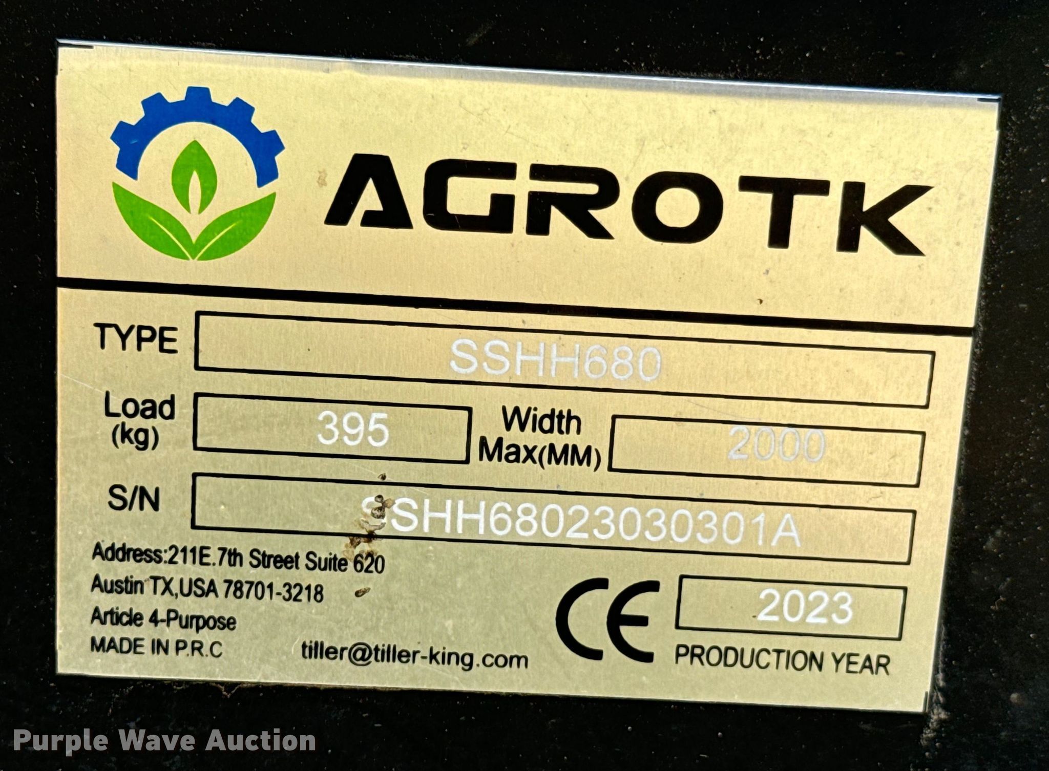 Take a look at this used 2023 Agrotk SSHH680 skid steer breaker being sold on August 8th, 2024 in the SOLD! August 08 Construction Equipment Auction made by Agrotk. Take a look at all of the item information below or take a look at similar auctions for Skid Steer Loaders.