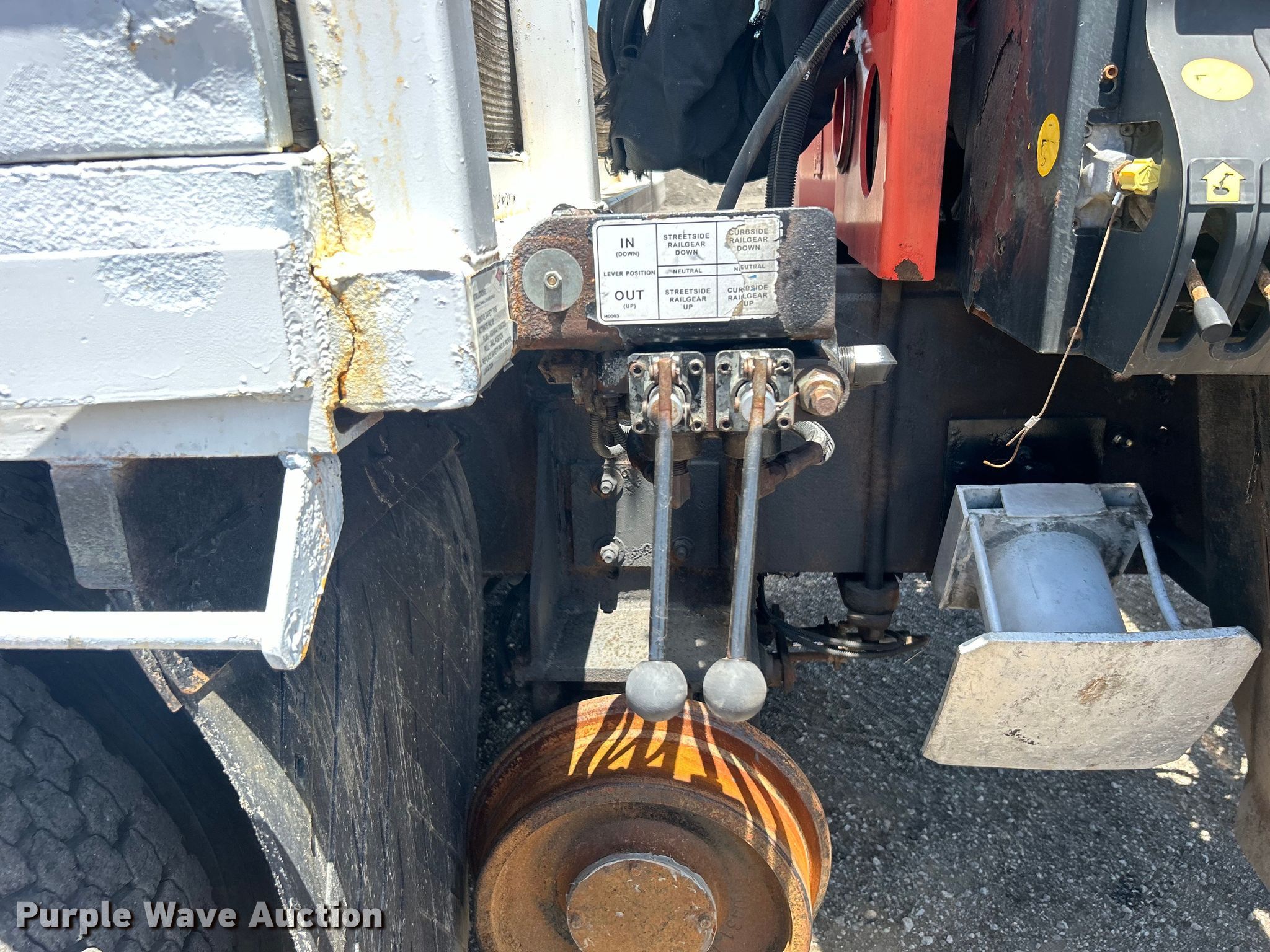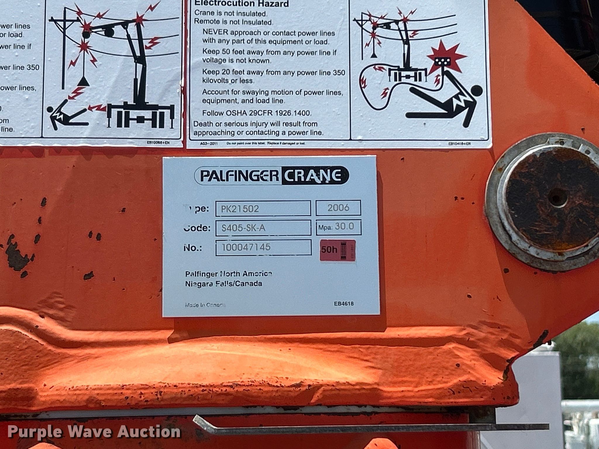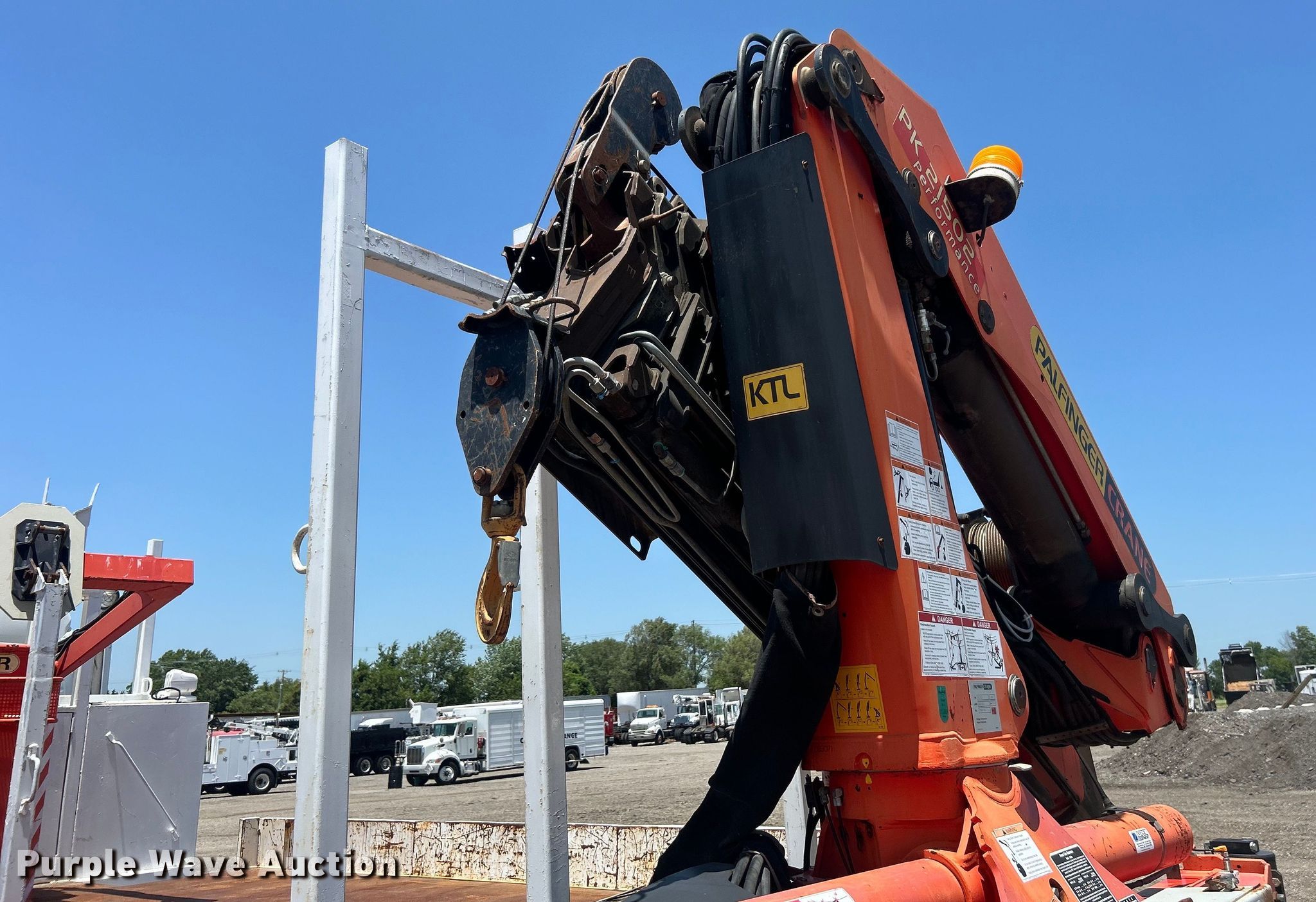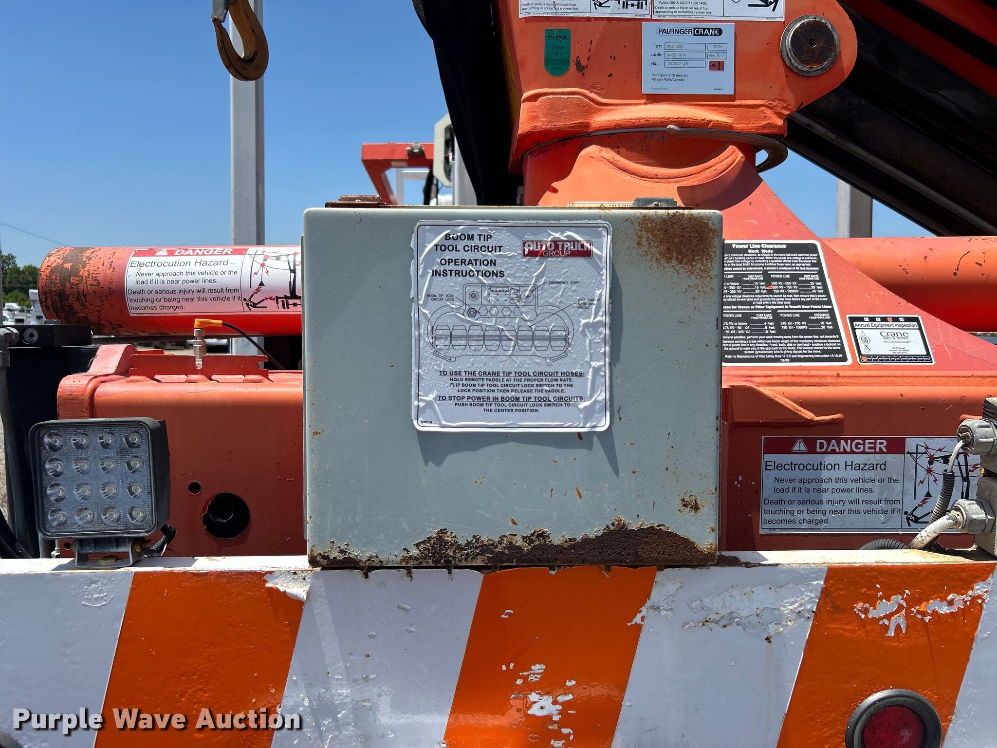 2007 Freightliner Business Class M2 crane truck. Miles: 115,254 on odometer, Hours: 7,323 on meter, VIN: 1FVHC3DJ67HY39293. Engine Mercedes Benz, Displacement: 7.2L, Cylinders: 6, Fuel type: Diesel. Transmission Eaton Fuller 8LL, Manual, Speed: 10. Chassis Axles: Tandem, Brakes: Air, PTO. Interior AC, Heat, Heated mirrors, Cruise control, Auxiliary controls. Features Crane Palfinger PK21502, Knuckle, Maximum boom length: 40' Maximum lift capacity: 17,750 lbs, Hi-rail system, Palfinger man basket 30" L x 36" W x 46" H. Tires Front: 315/80R22.5, Rear: 11R22.5. Notes Windshield chipped or cracked. Oklahoma title. 15107 North 137th East Avenue. Collinsville, OK 74021