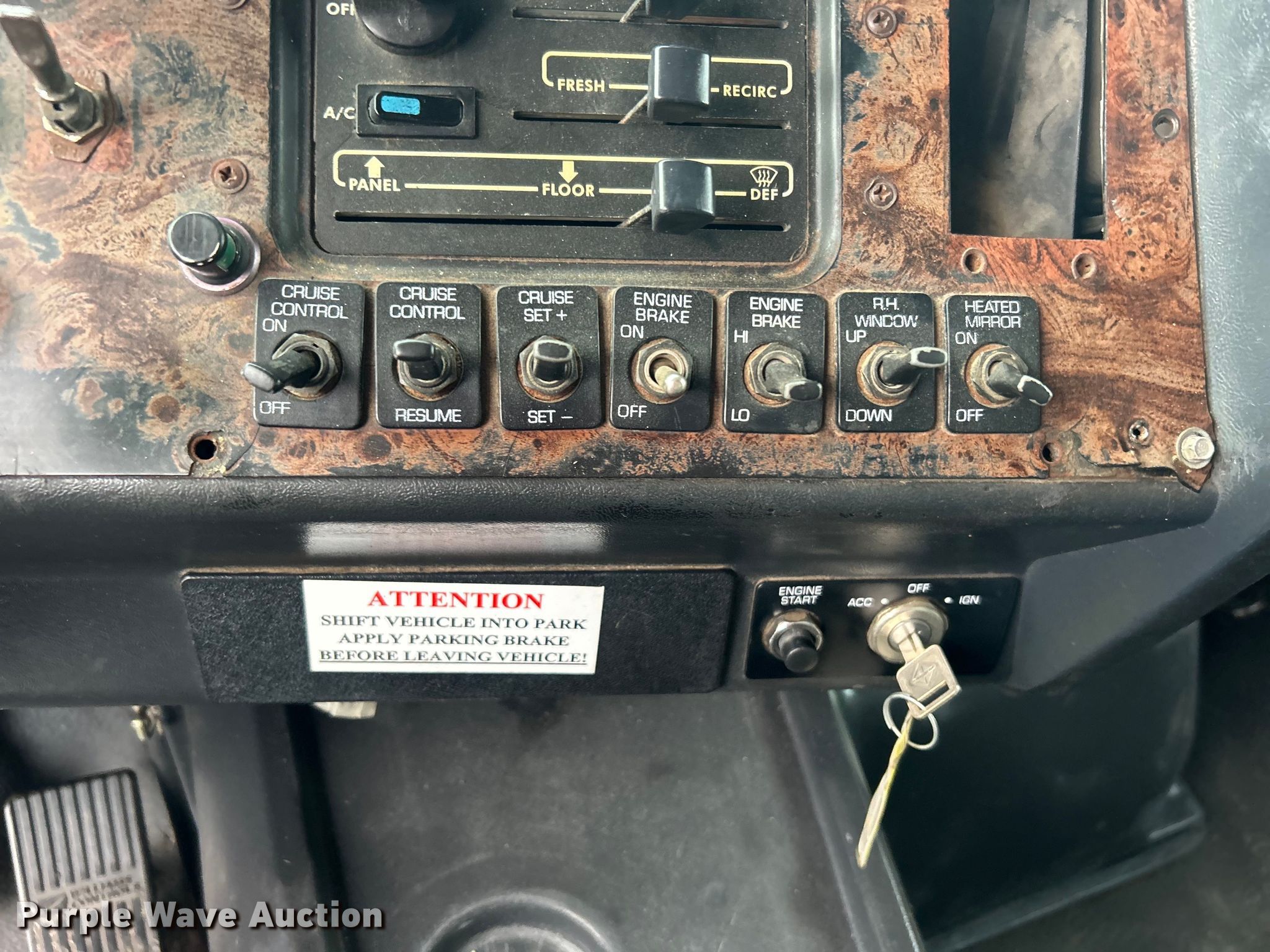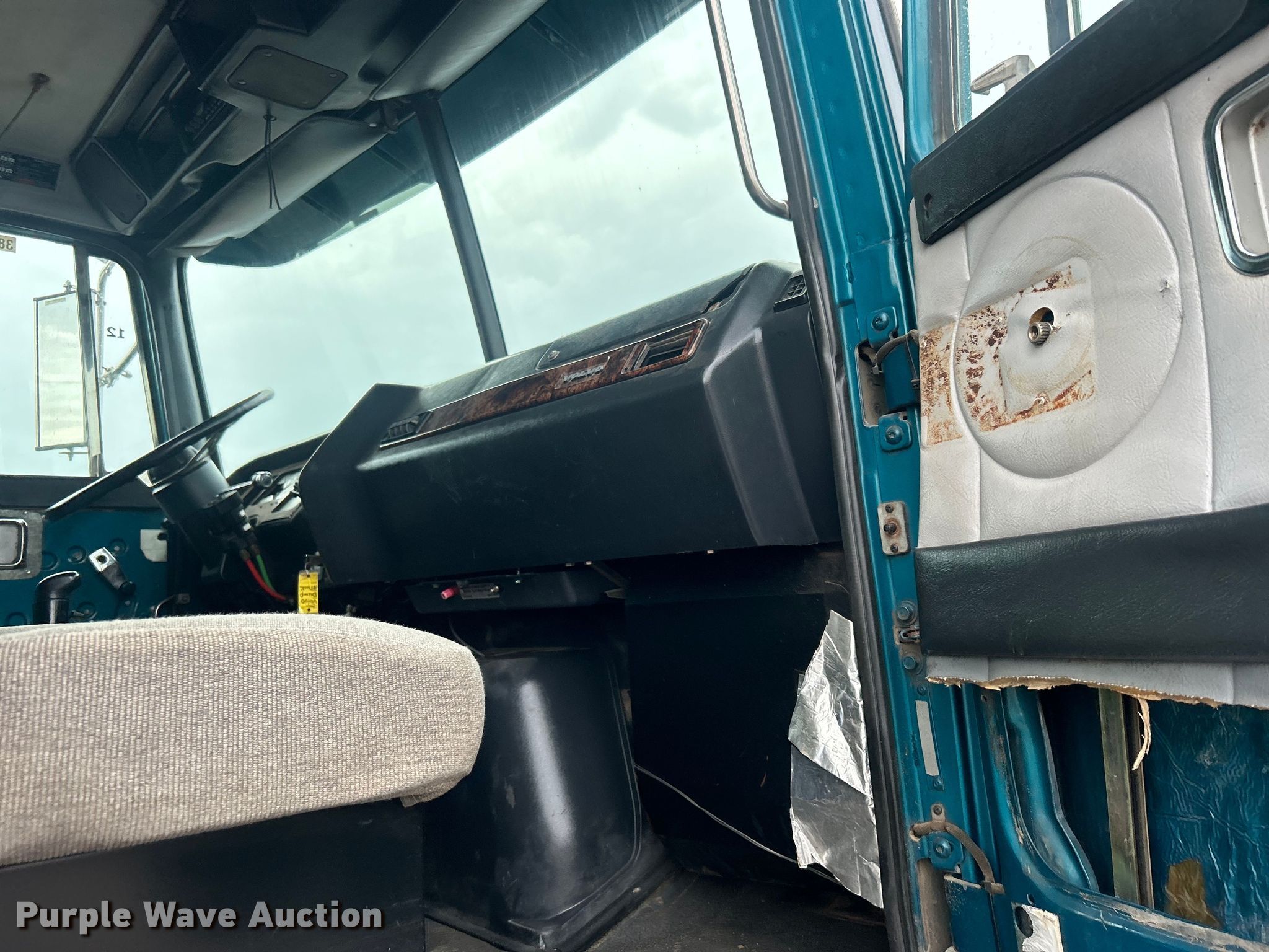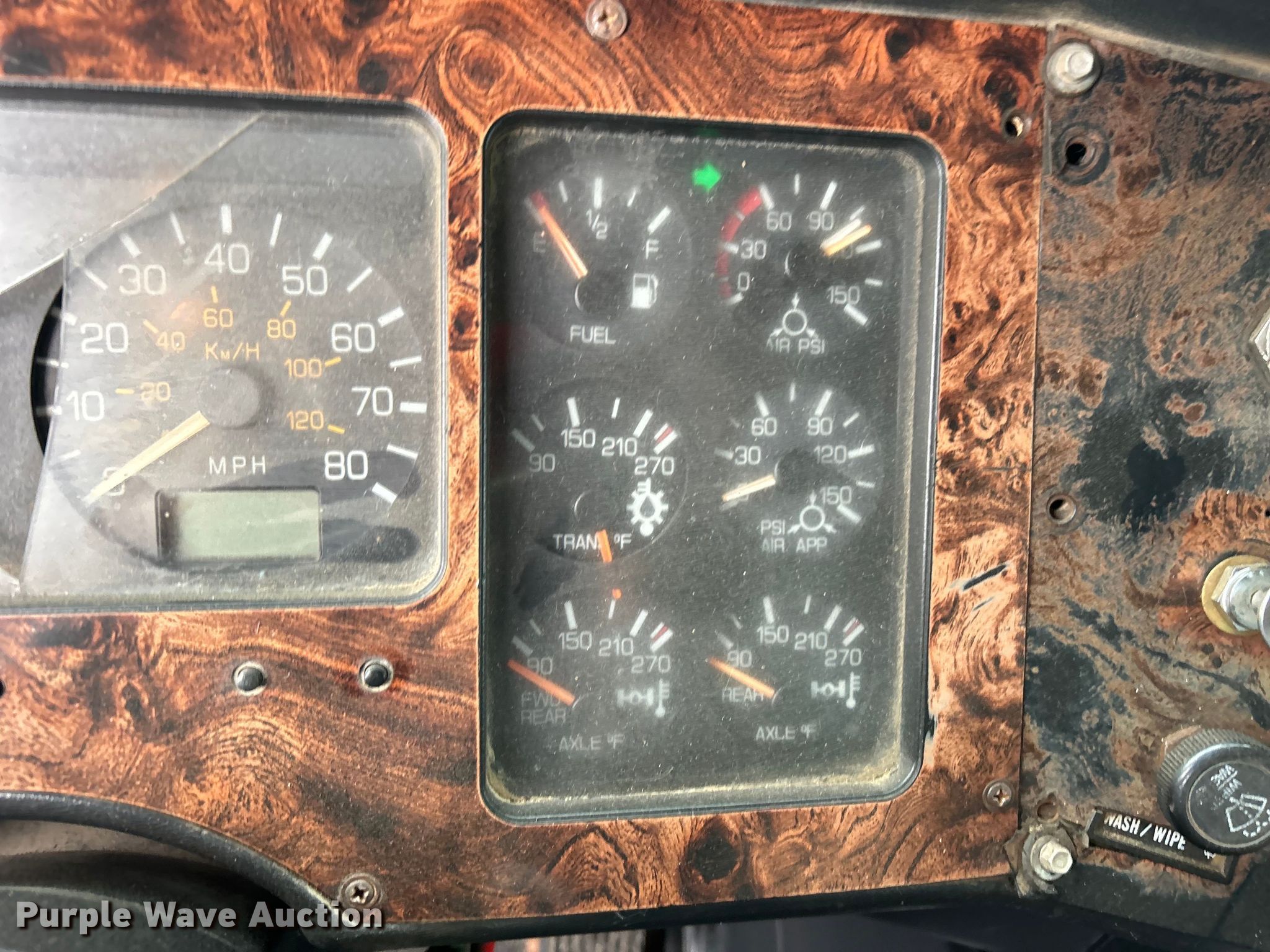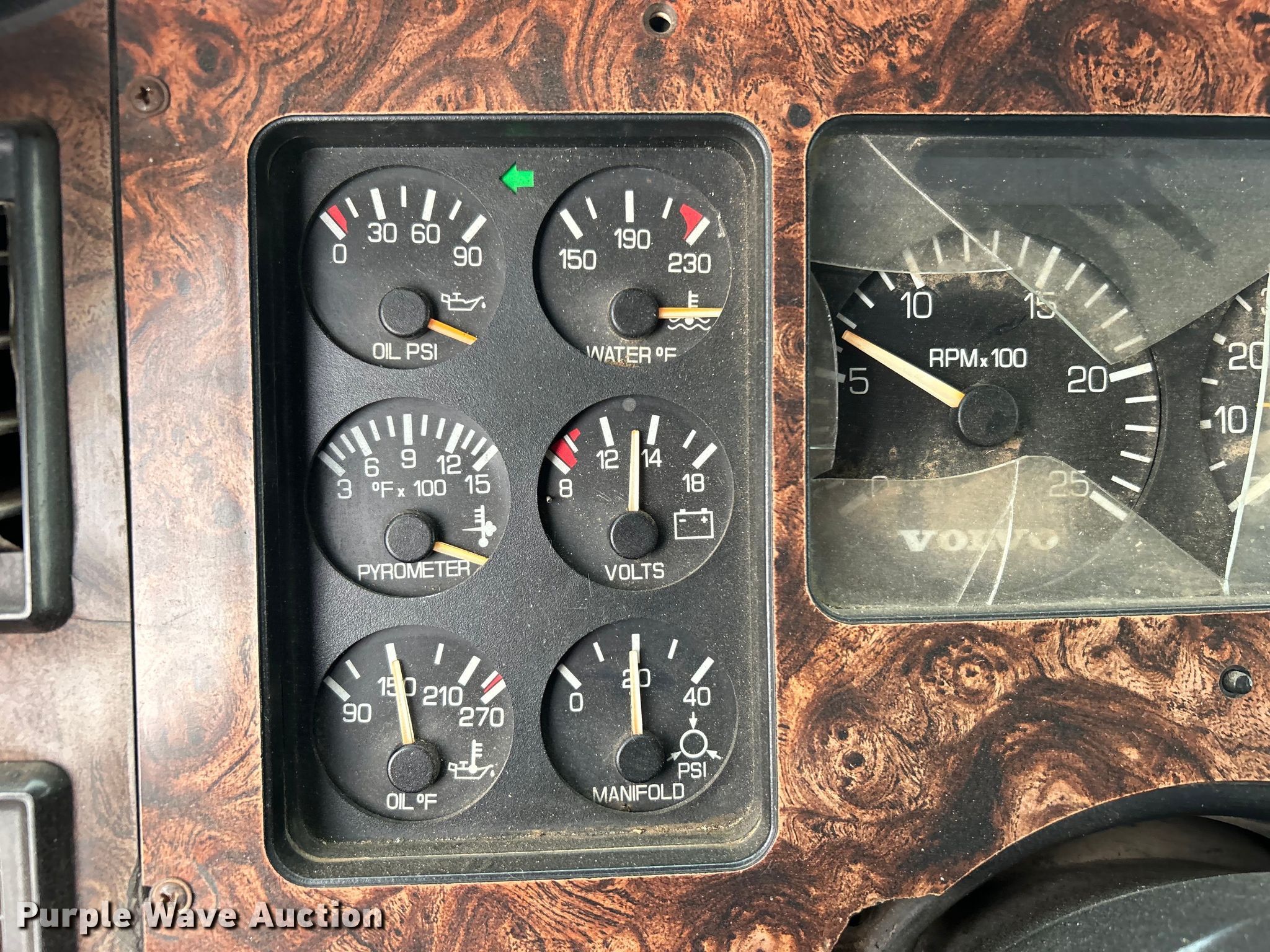 1999 Volvo ACL dump truck. Miles: Unknown, VIN: 4VHSCCGH6XN519261. Engine Volvo VEB12B-425, Displacement: 12.1L, Cylinders: 6, Fuel type: Diesel, HP: 425, Engine brake. Transmission Eaton Fuller 8LL, Manual, Speed: 10. Chassis Axles: Triple, Pusher axle, Differential lock, Suspension: Spring, Brakes: Air, PTO. Interior AC, Heat, Cruise control. Features Dump bed Danco, 17' L x 96" W, Side height: 64", Bed type: Aluminum, Roll tarp, Ram: Single, End gate: Manual. Tires Front: 425/65R22.5, Rear: 375:80R22.5, Lift axle: 295/80R22.5. Notes Dash warning indicator: DEF, Non-operational odometer, Display cover broken. Oklahoma title. Mileage has not been verified. Exempt will be written in the odometer disclosure on the title. 15107 North 137th East Avenue. Collinsville, OK 74021