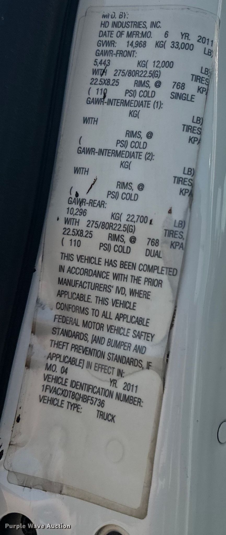 • VIN: 1FVACXDT8CHBF5736