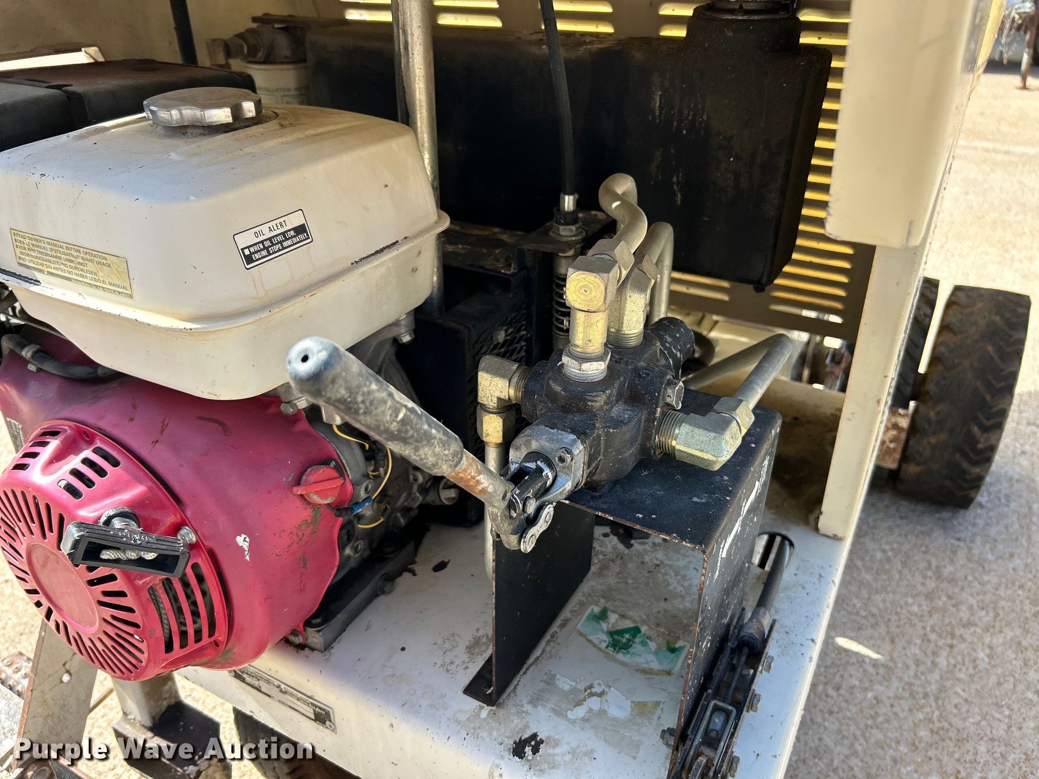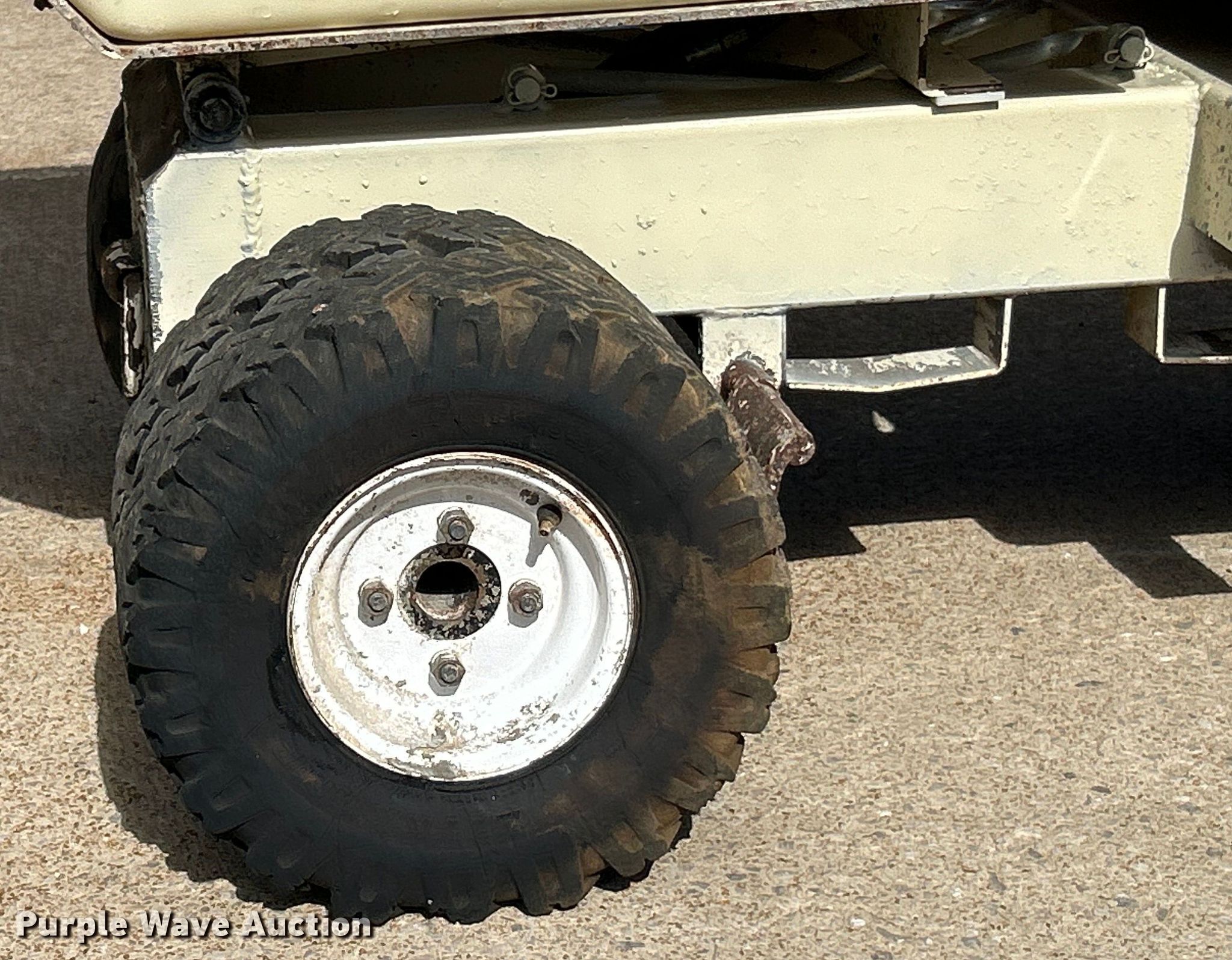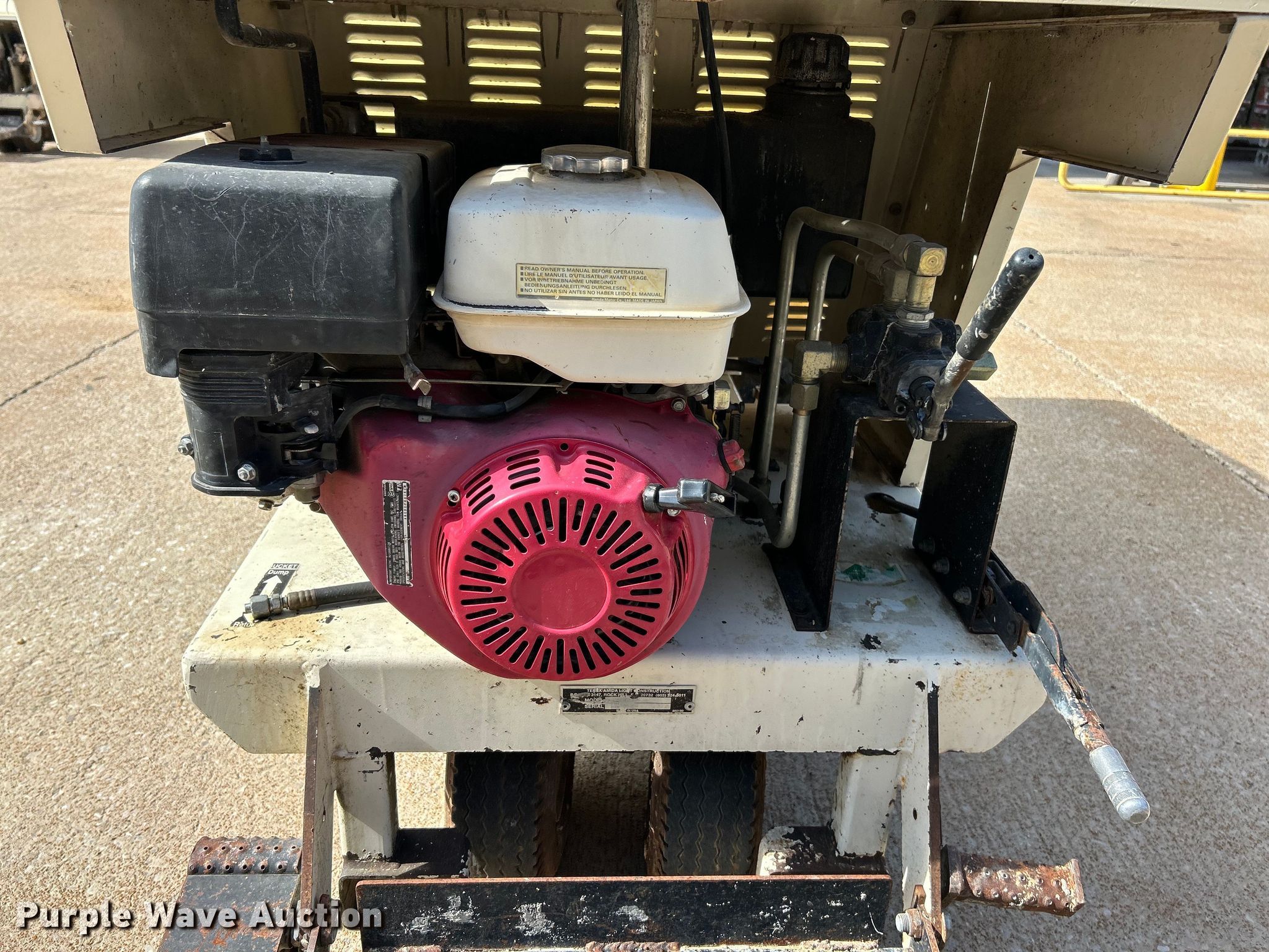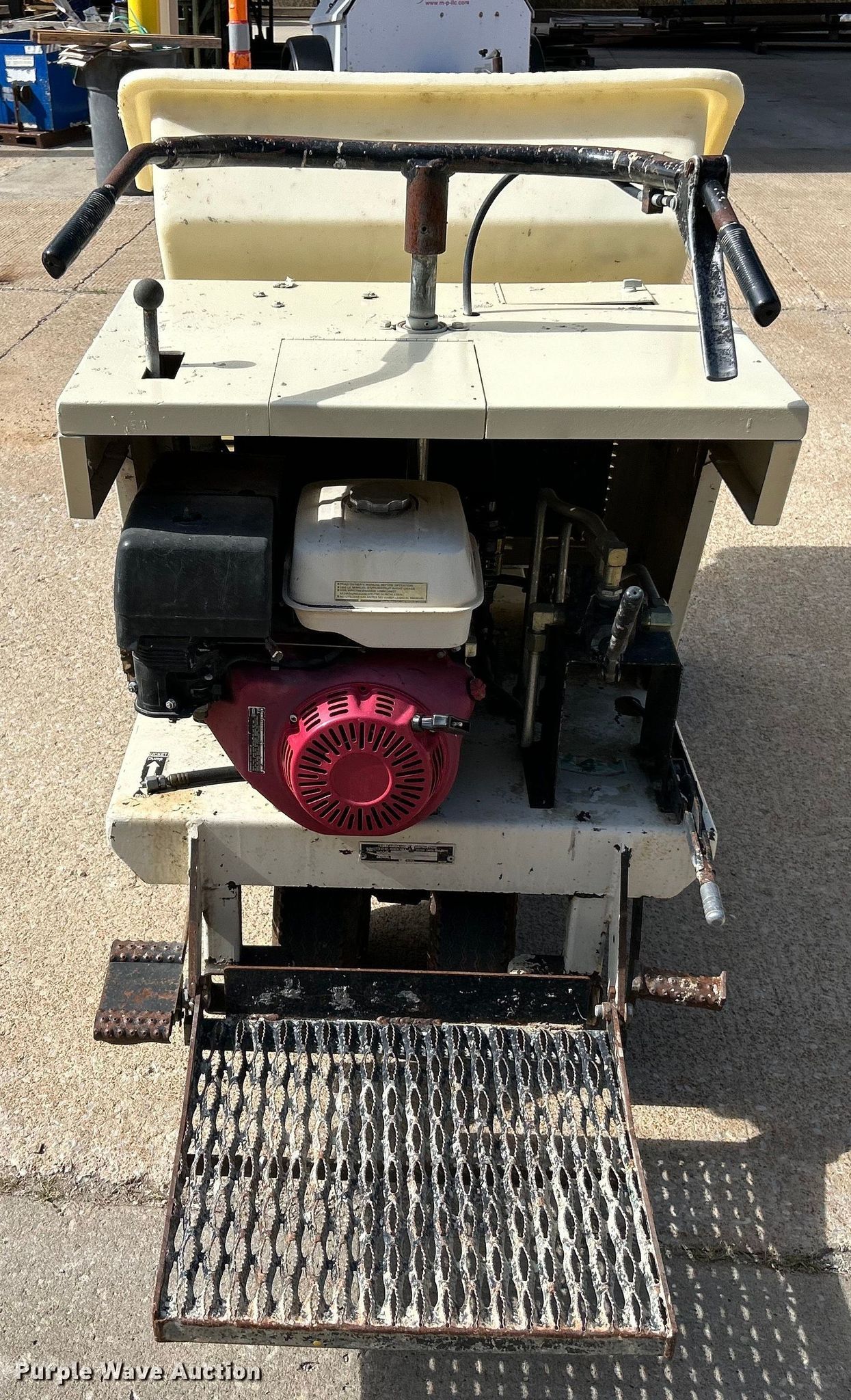Terex 0MPB16A concrete buggy. Serial: DTD-00954. Engine Honda, Displacement: 389cc, Cylinders: 1, Fuel type: Gas. Features Hopper 57" x 31" x 21". Tires Front: 5.70-8, Rear: 4.80-8. Notes Hopper damaged, cracked. Tarlton Corporation. St. Louis, MO 63110