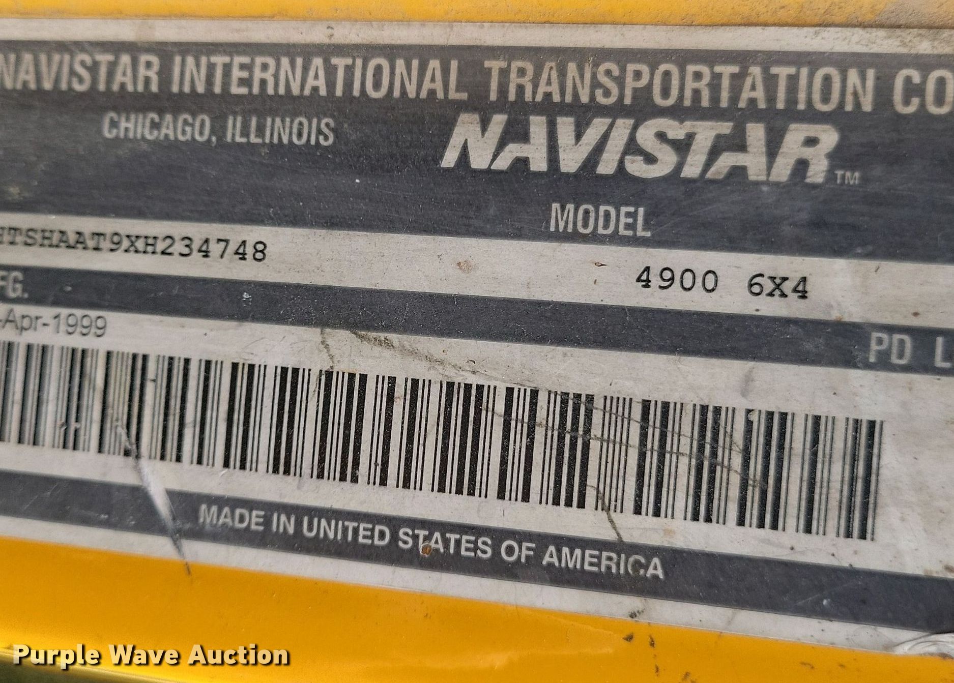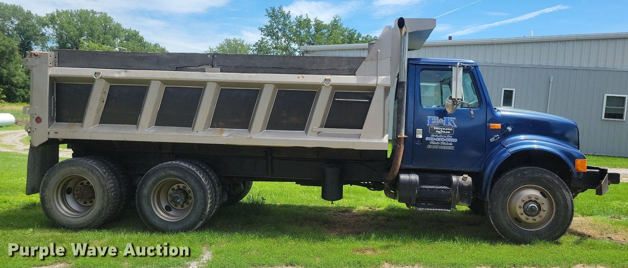 Purple Wave is selling a used Construction Dump Truck in Iowa. This item is a 1999 International 4900 dump truck with the following: Miles: 94,143 on odometer, Hours: 8,664 on meter, VIN: 1HTSHAAT9XH234748