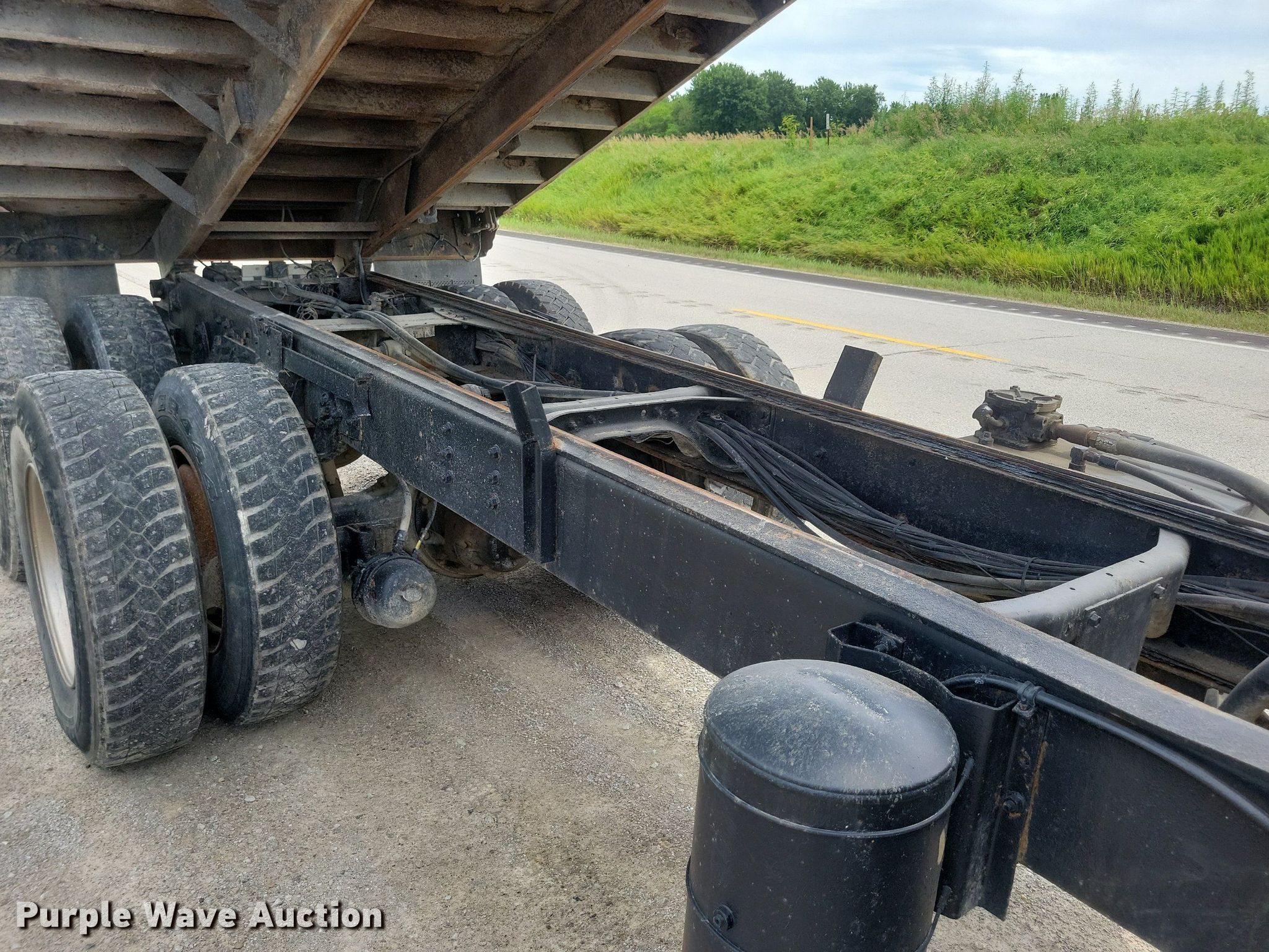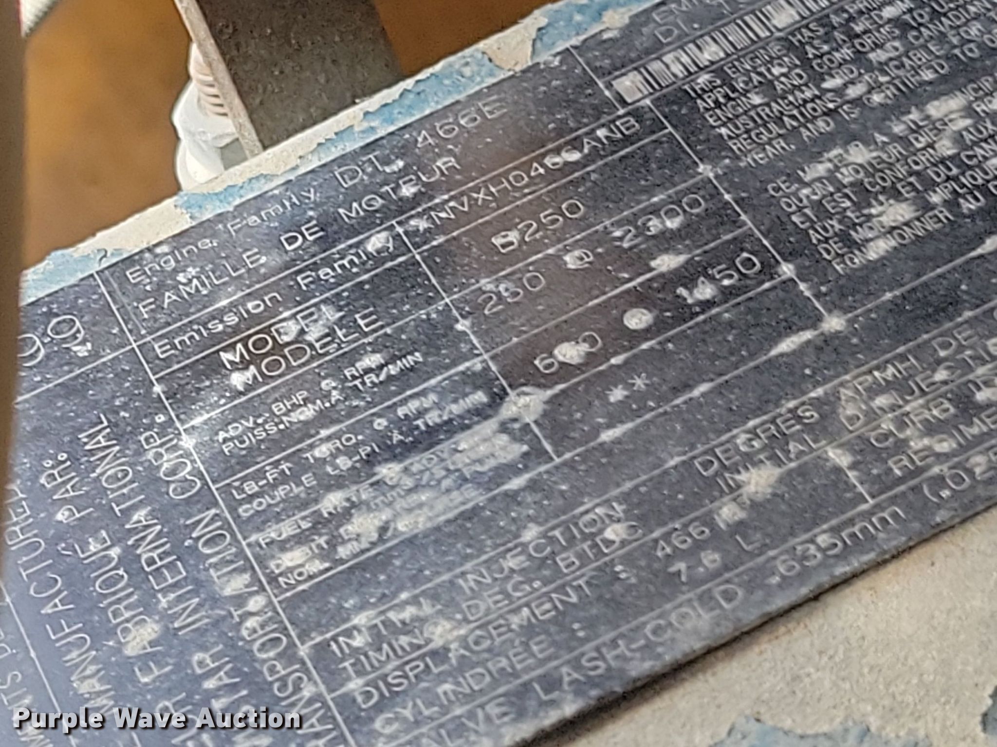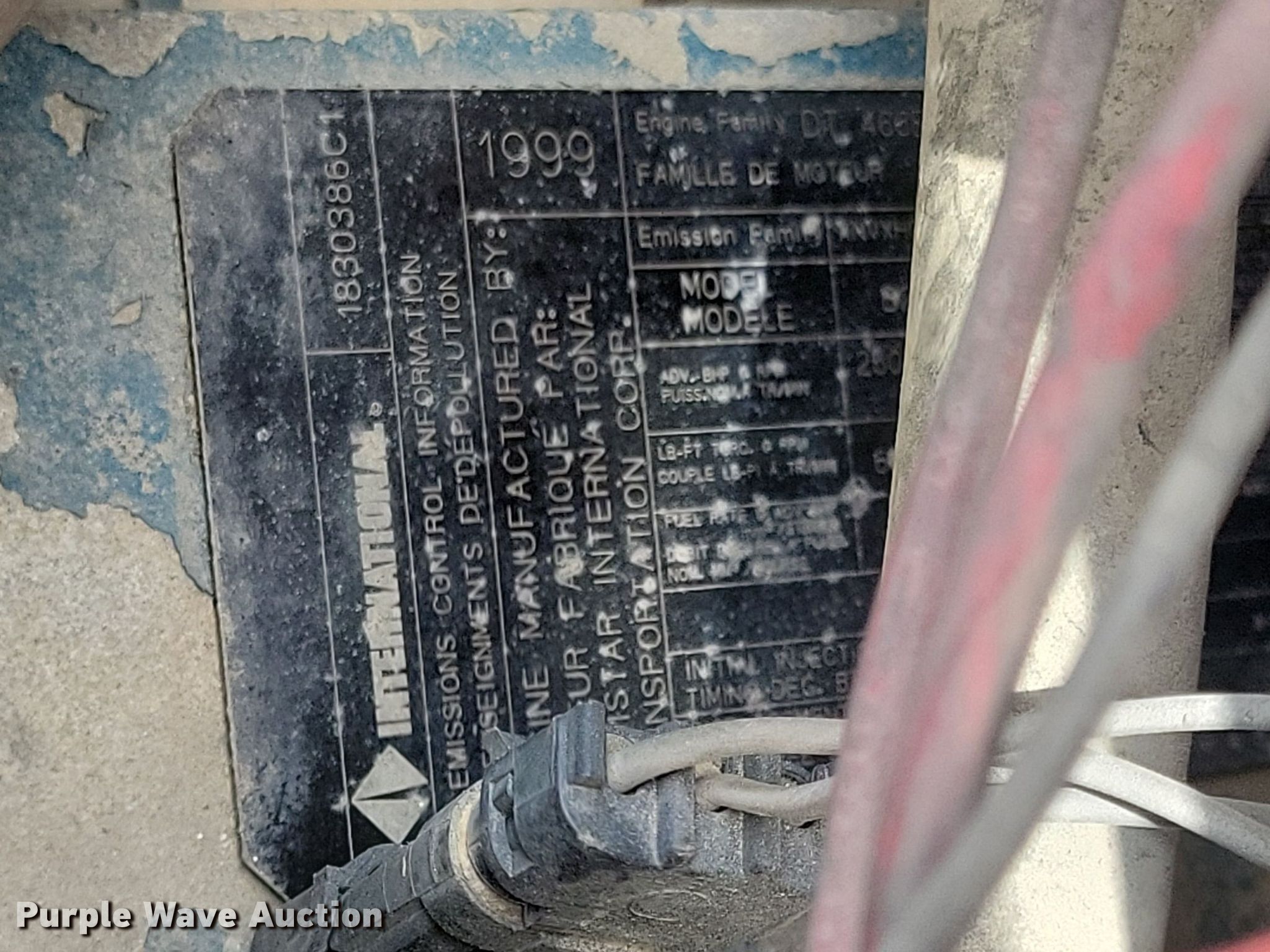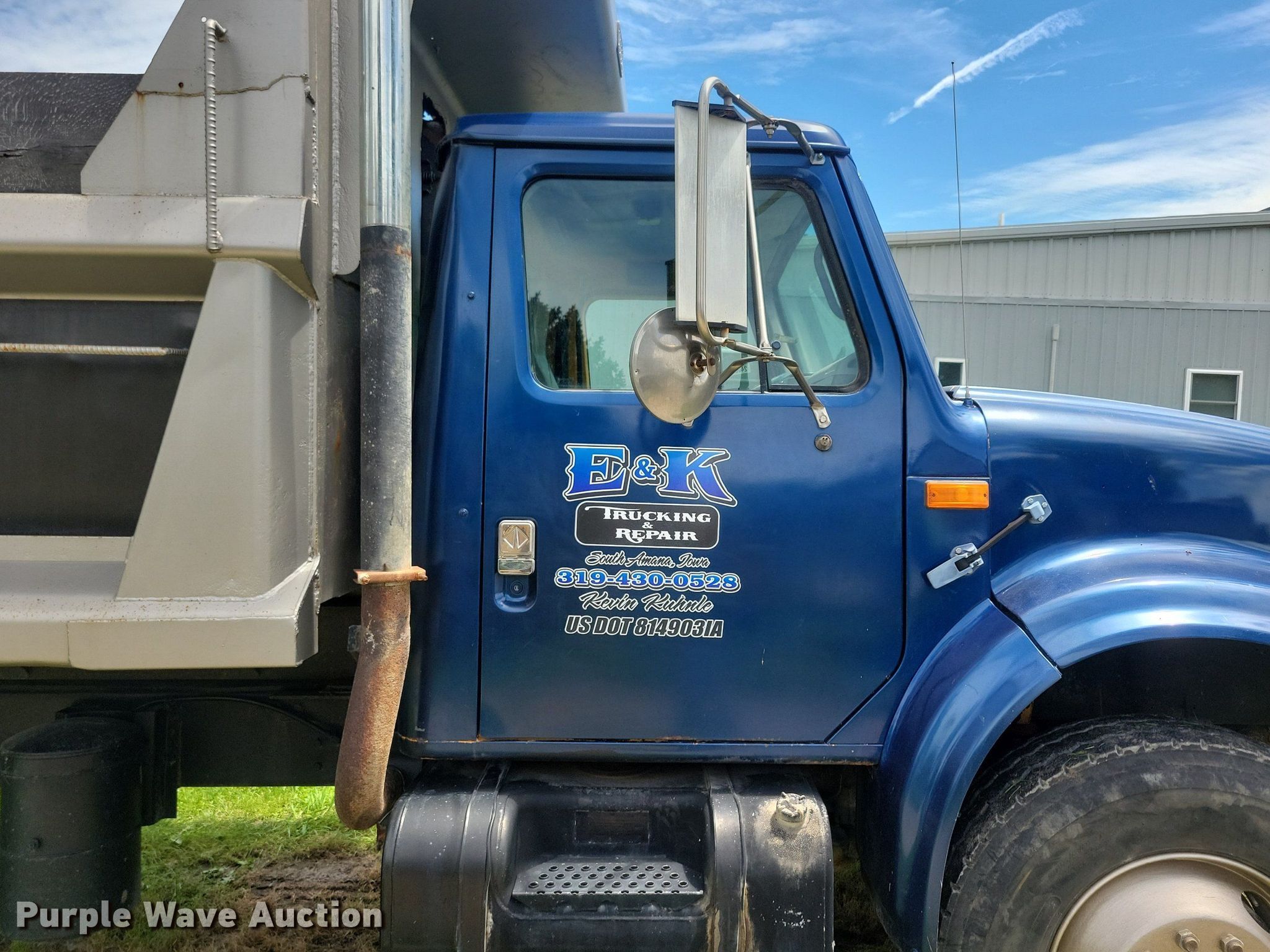 1999 International 4900 dump truck. Miles: 94,143 on odometer, Hours: 8,664 on meter, VIN: 1HTSHAAT9XH234748. Engine International DT466E, Serial: 1830386C1, Displacement: 7.6L, Cylinders: 6, Fuel type: Diesel, HP: 250. Transmission Allison, Automatic. Chassis Double frame, Axles: Tandem, Differential lock: Inter-axle, Suspension: Spring over walking beam, Brakes: Air, PTO, Front mount PTO, Wheelbase: 212". Interior Heat, Cruise control. Features Dump bed Heil, 16' L x 96" W, Side height: 34", Side board height: 10", Bed type: Steel, Liner, Ram: Single, End gate: Air operated. Tires Front: 315/80R22.5, Rear: 11R22.5. Iowa prior salvage title. E&K Trucking. South Amana, IA 52334