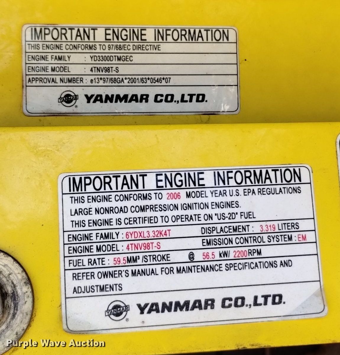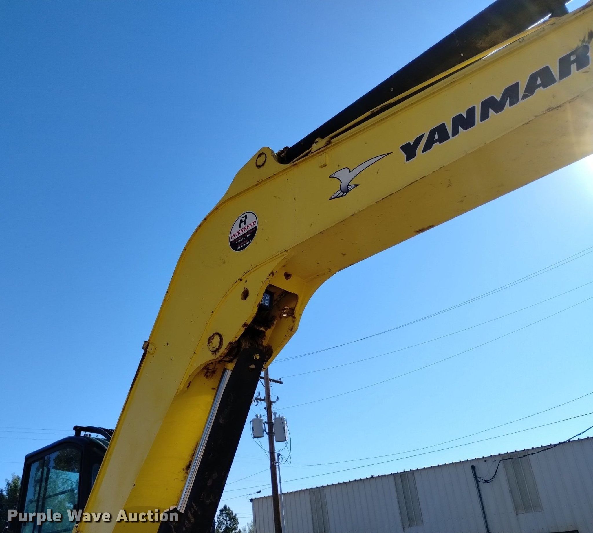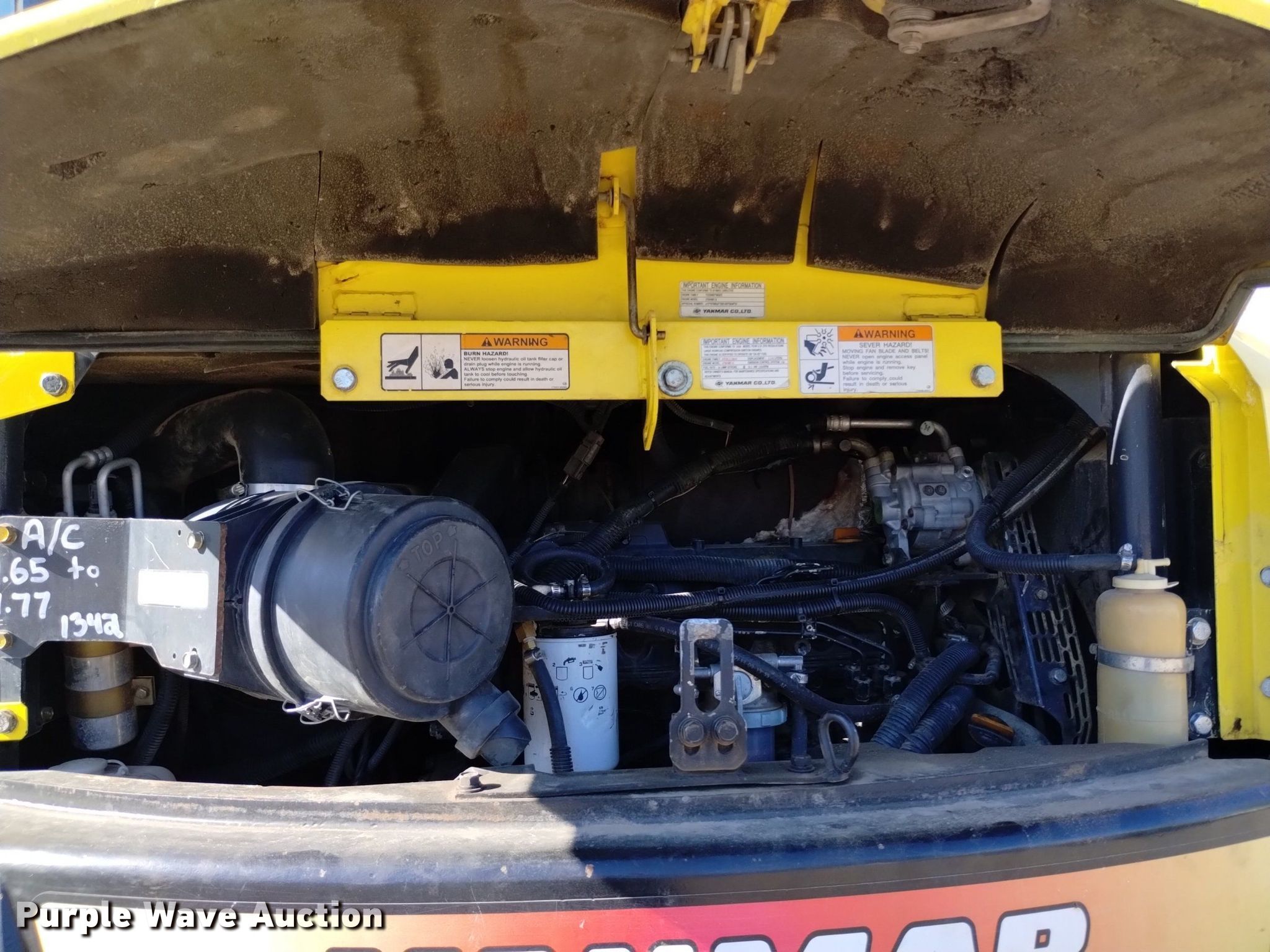 Yanmar SV100 mini excavator. Hours: 6,061 on meter. Engine Yanmar 4TNV98T-S, Displacement: 3.319L, Cylinders: 4, Fuel type: Diesel. Transmission Hydrostatic. Operators station Enclosed cab, AC, Heat. Features Auxiliary hydraulics, Counter weights, Backfill blade Width: 91", Boom Swing, Stick Stick length: 6' 5", Quick coupler: Hydraulic, Thumb: Hydraulic Tag, Bucket Width: 24", Teeth: 5. Tracks Width: 19", Steel, Grouser pads: Triple. X FIELD SVC LLC. Craig, CO 81625