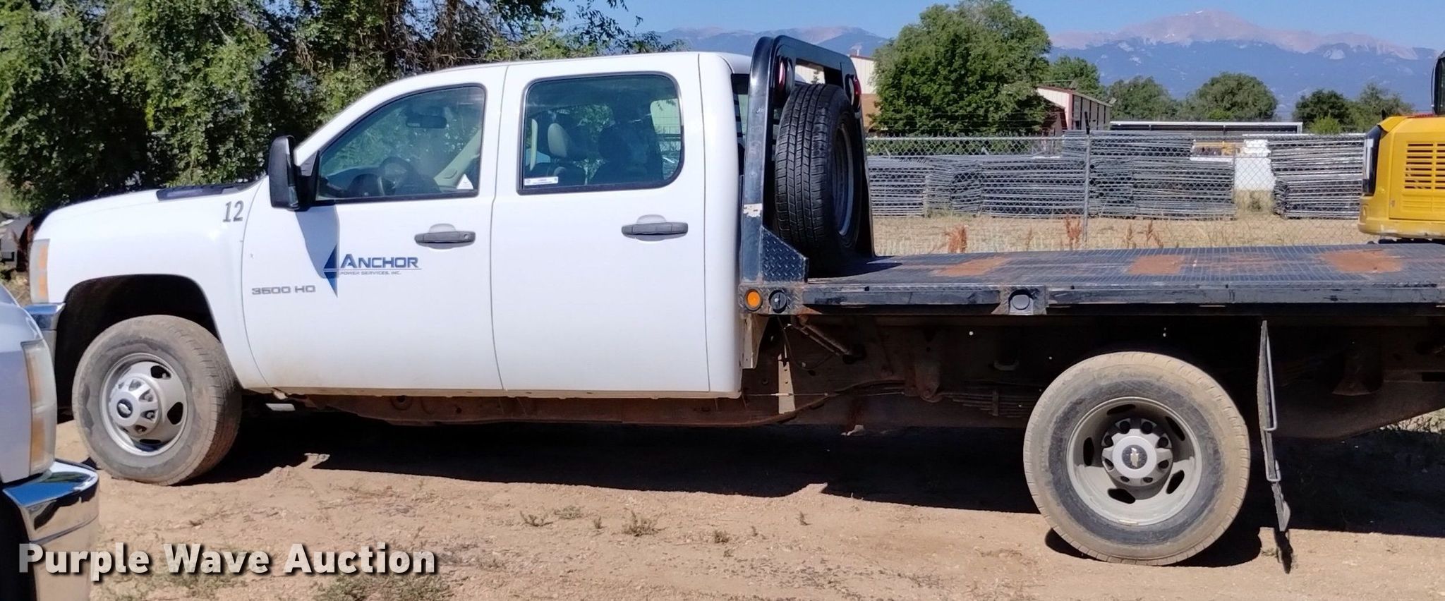 Purple Wave is selling a used 3/4 or 1 Ton Pickup or Van in Colorado. This item is a 2014 Chevrolet Silverado 3500HD Crew Cab flatbed pickup truck with the following: Miles: 223,662 on odometer, VIN: 1GB4CZCG6EF155487, Unit #: 12