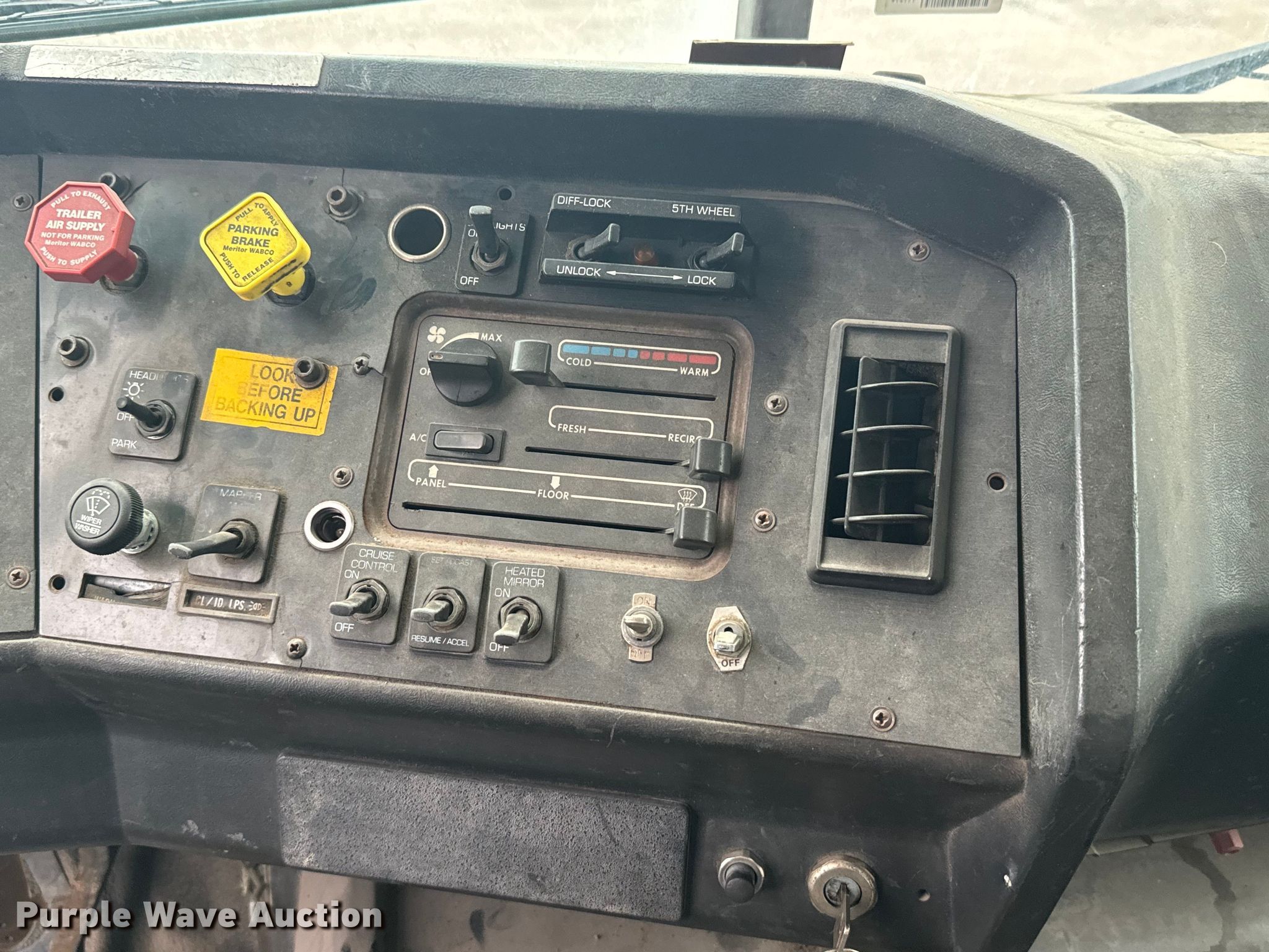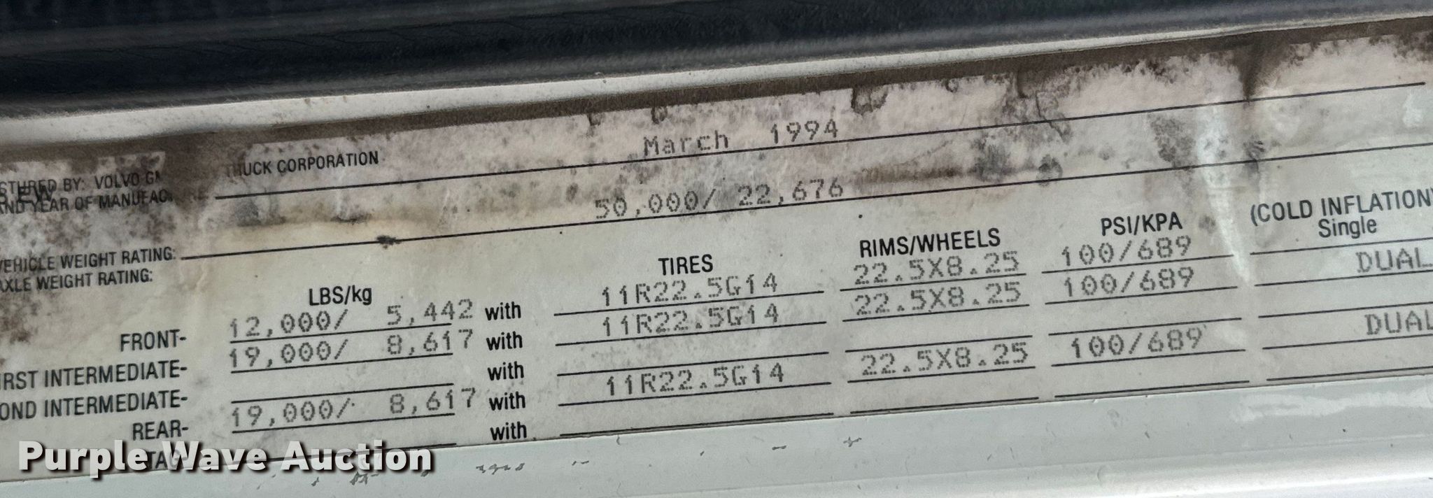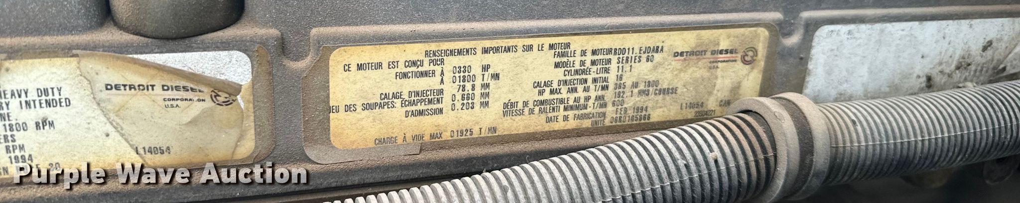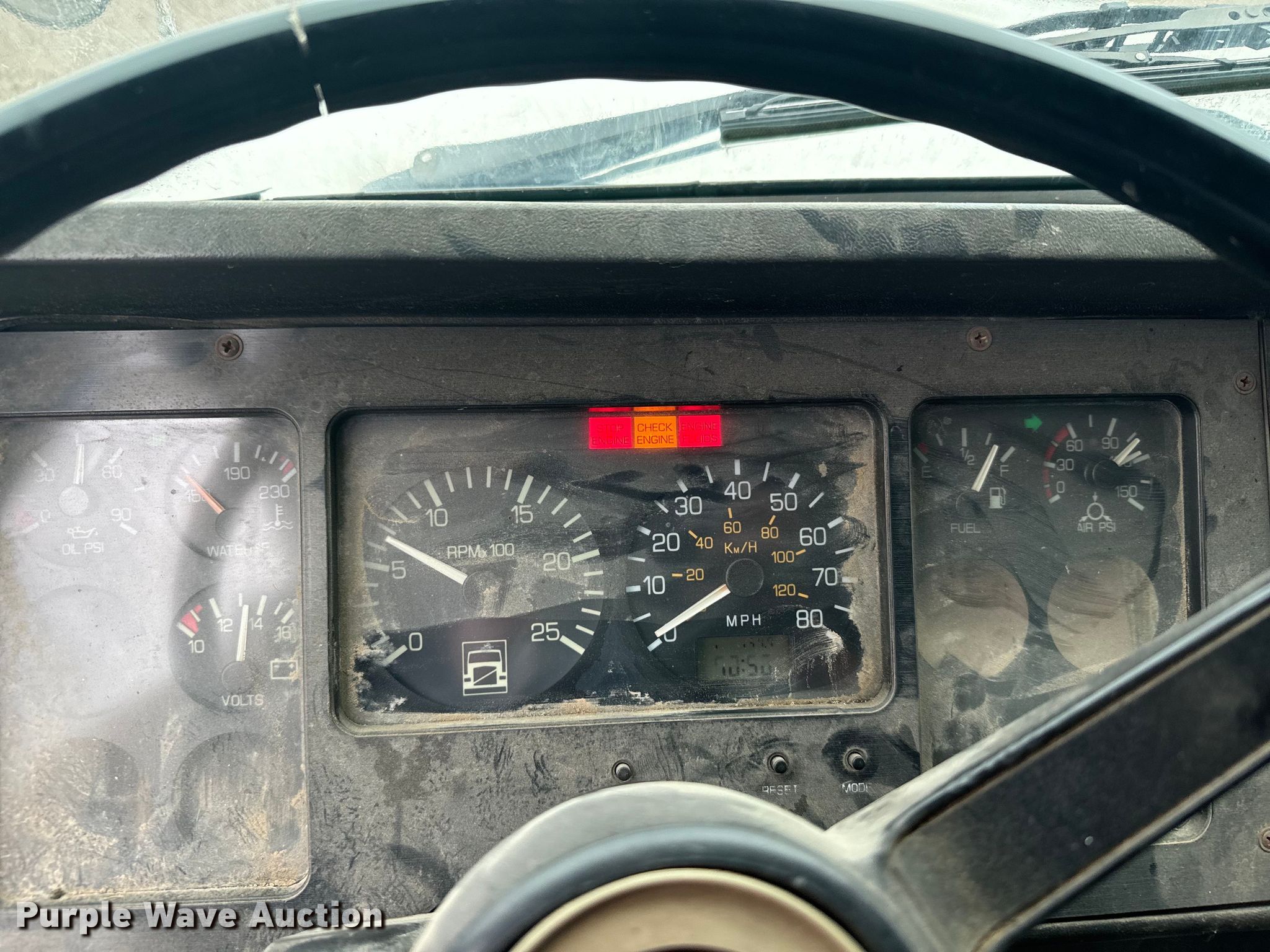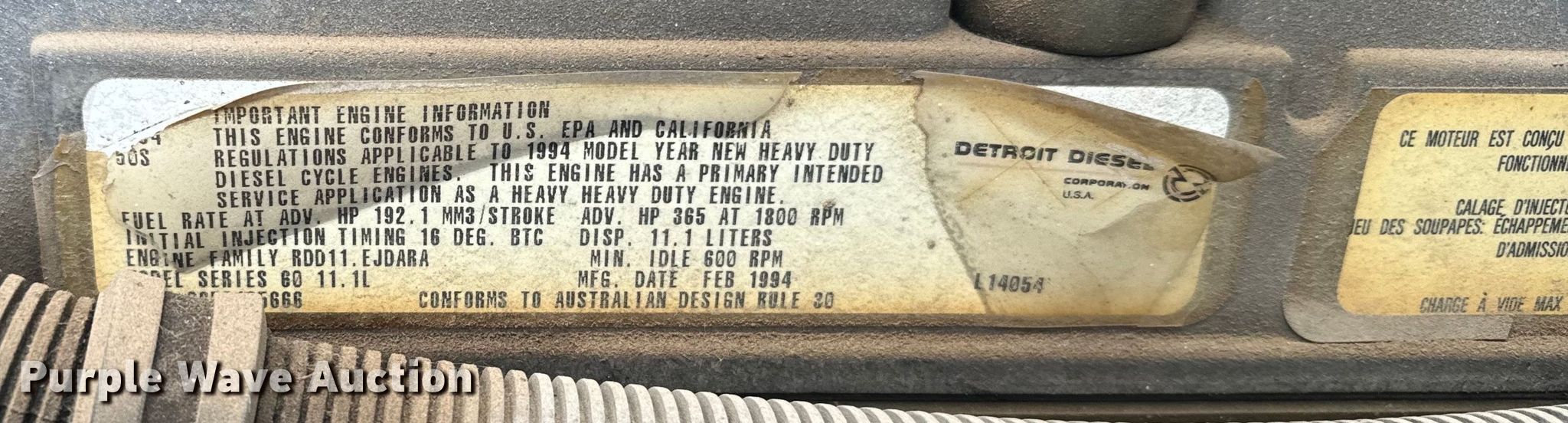 1994 White GMC water truck. Miles: Unknown, VIN: 4V1JDBRF9RR830899. Engine Detroit Diesel Series 60, Displacement: 11.1L, Cylinders: 6, Fuel type: Diesel. Transmission Eaton Fuller, Manual, Speed: 9. Chassis Axles: Tandem, Differential lock: Inter-axle, Suspension: Spring, Brakes: Air. Interior AC, Heat, Heated mirrors, Cruise control. Features Bed / tank 20' L x 96" W, (4) 700 gallon poly tanks, Top fill, Front drain: 2", Rear drain: 2", Auxiliary fuel tank, Briggs & Stratton 550 Series engine Cylinders: 1, Displacement: 127 cc, Fuel type: Gas. Tires Size: 11R22.5. Notes Dash warning indicator: Check engine, Stop engine, Engine fluids, Windshield chipped or cracked, Weak battery, Driver side mirror cracked, Unknown operating condition of Banjo water pump, Unknown operating condition of water pump engine, Unknown operating condition of odometer, Non-operational AC. Kansas title. Mileage has not been verified. Exempt will be written in the odometer disclosure on the title. Title distribution may be delayed up to 14 days from verification of funds. Dustrol Inc.. Towanda, KS 67144