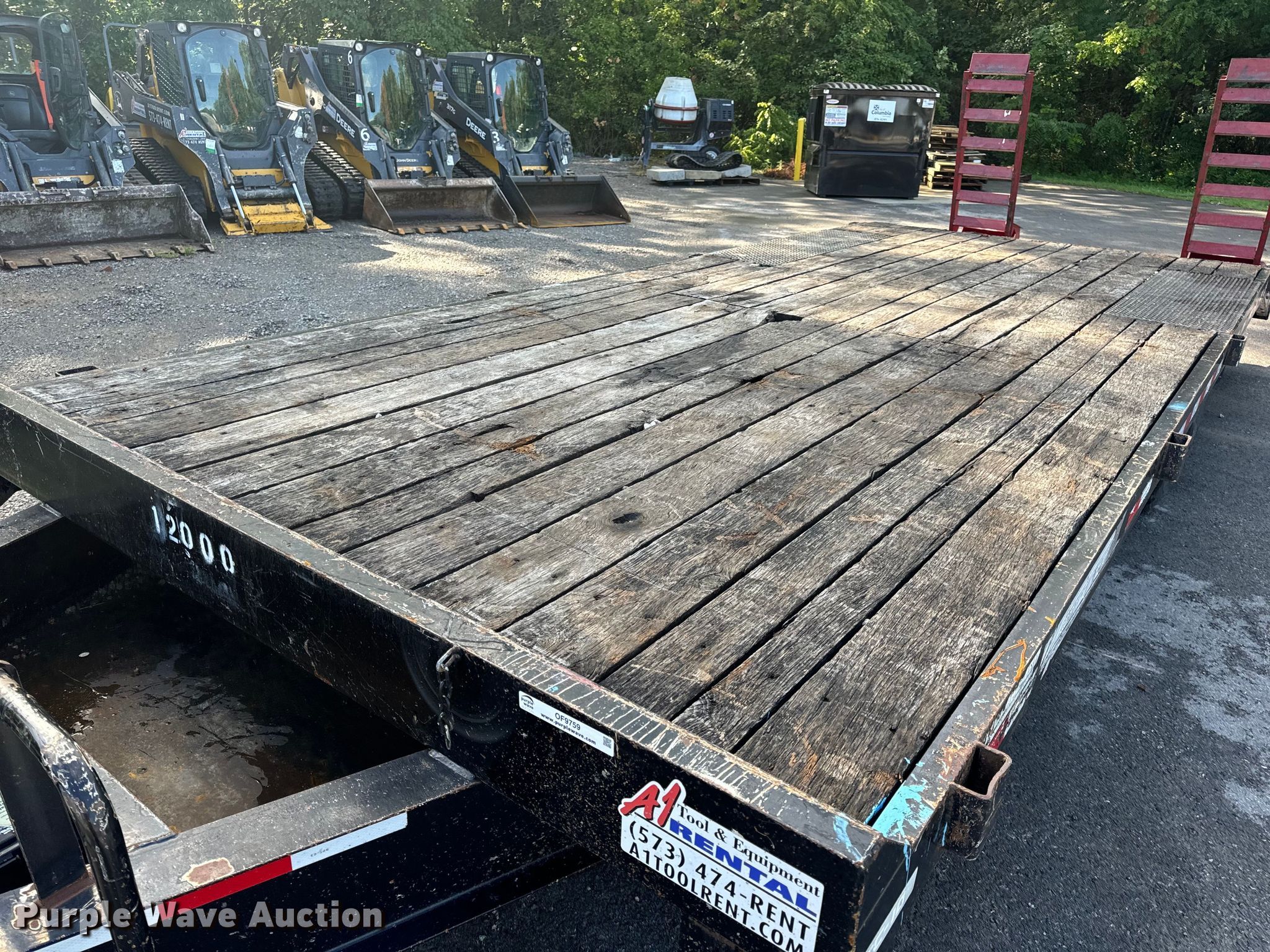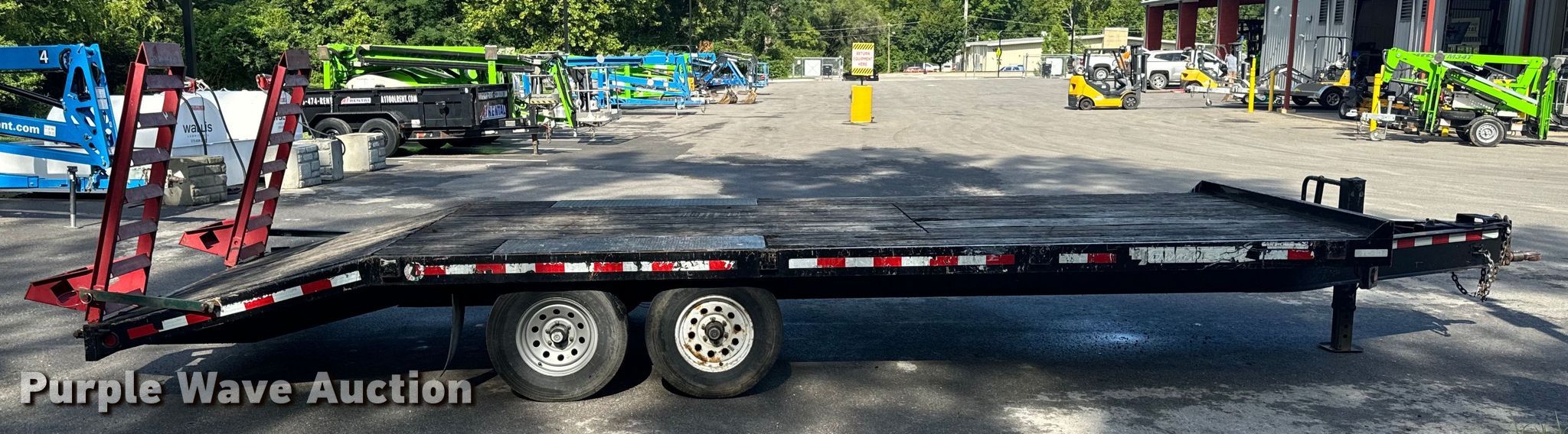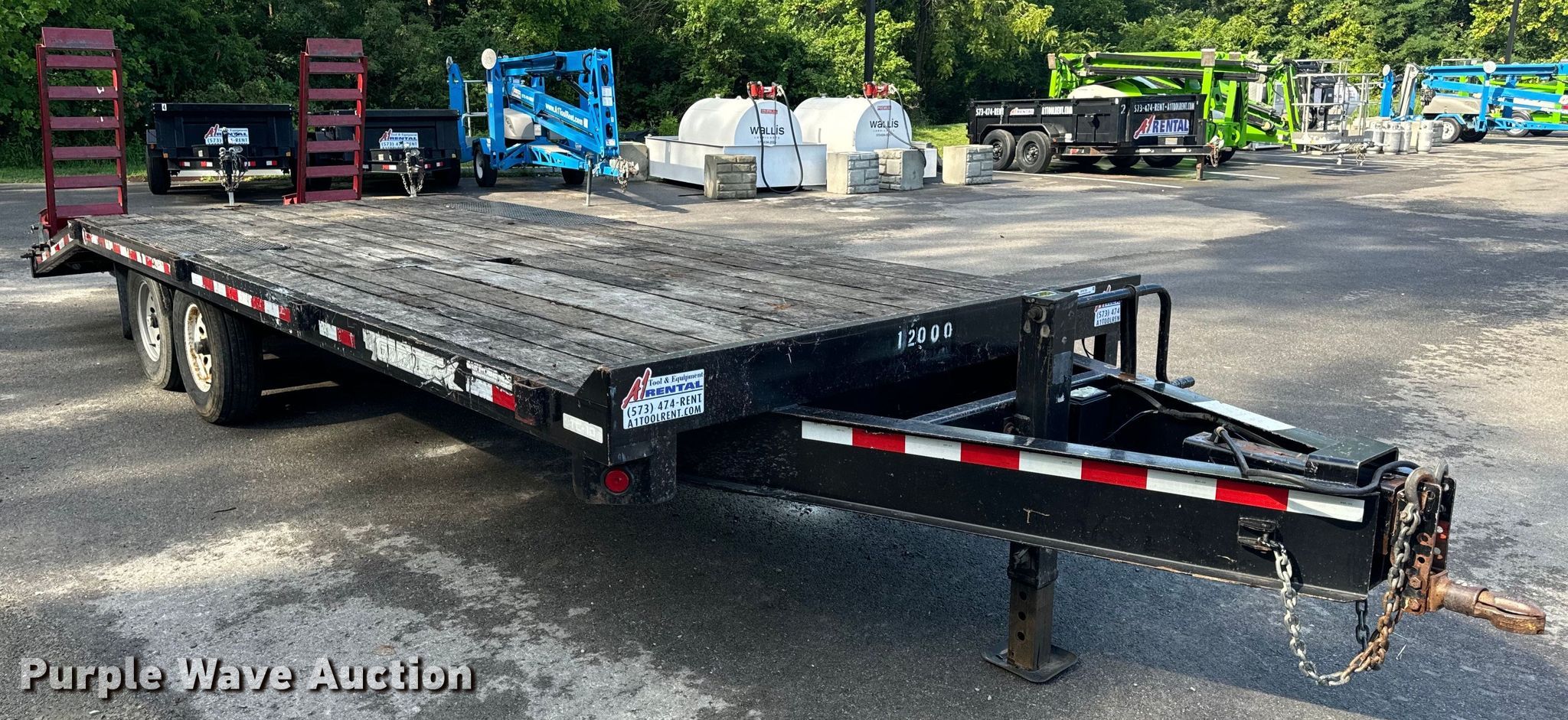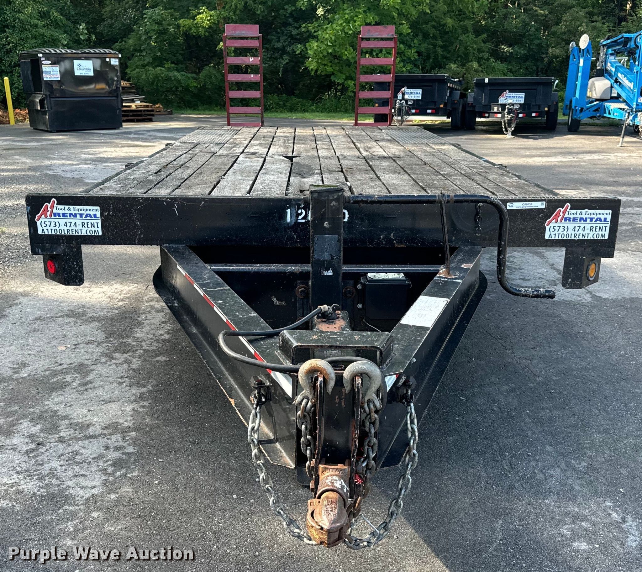 2016 Towmaster TC-10 equipment trailer. VIN: 4KNFT1824GL162520. Dimensions Overall: 29' 9" L x 99" W, Deck: 17' 9" L x 95.5" W, Tail length: 59", Ramps: Manual Length: 5'. Features Deck type: Steel, Wood. Chassis Ball hitch: 2 5/16", Landing gear: Single, Brakes: Electric, Axles: Tandem, GVWR: 14,800 lbs, GAWR: 6,000 lbs. Tires Steel wheels, Size: 235/80R16. Missouri title. Title distribution may be delayed up to 14 days from verification of funds. A-1 Tool & Equipment Rental/Mid MO Rental Inc.. Columbia, MO 65201