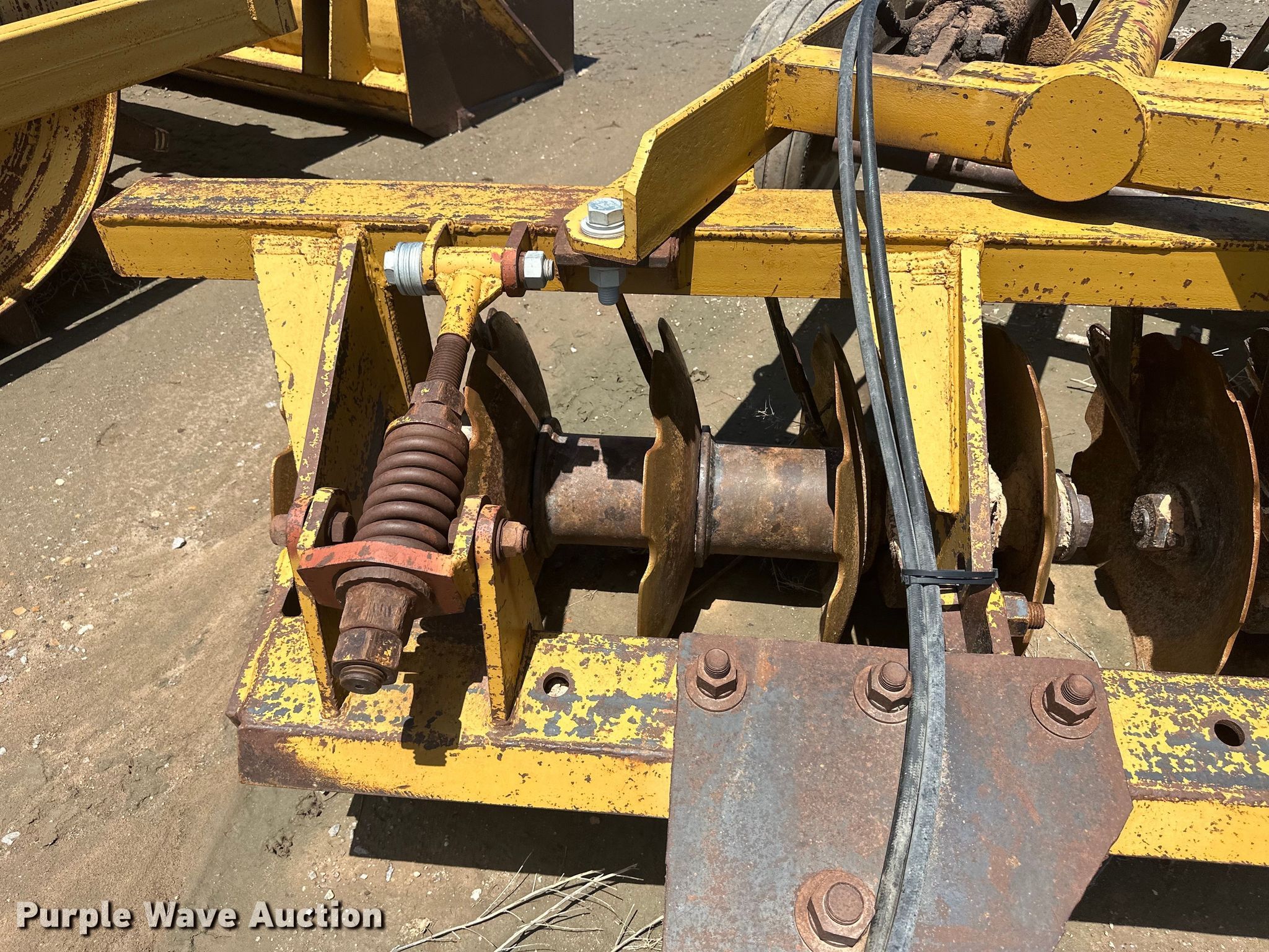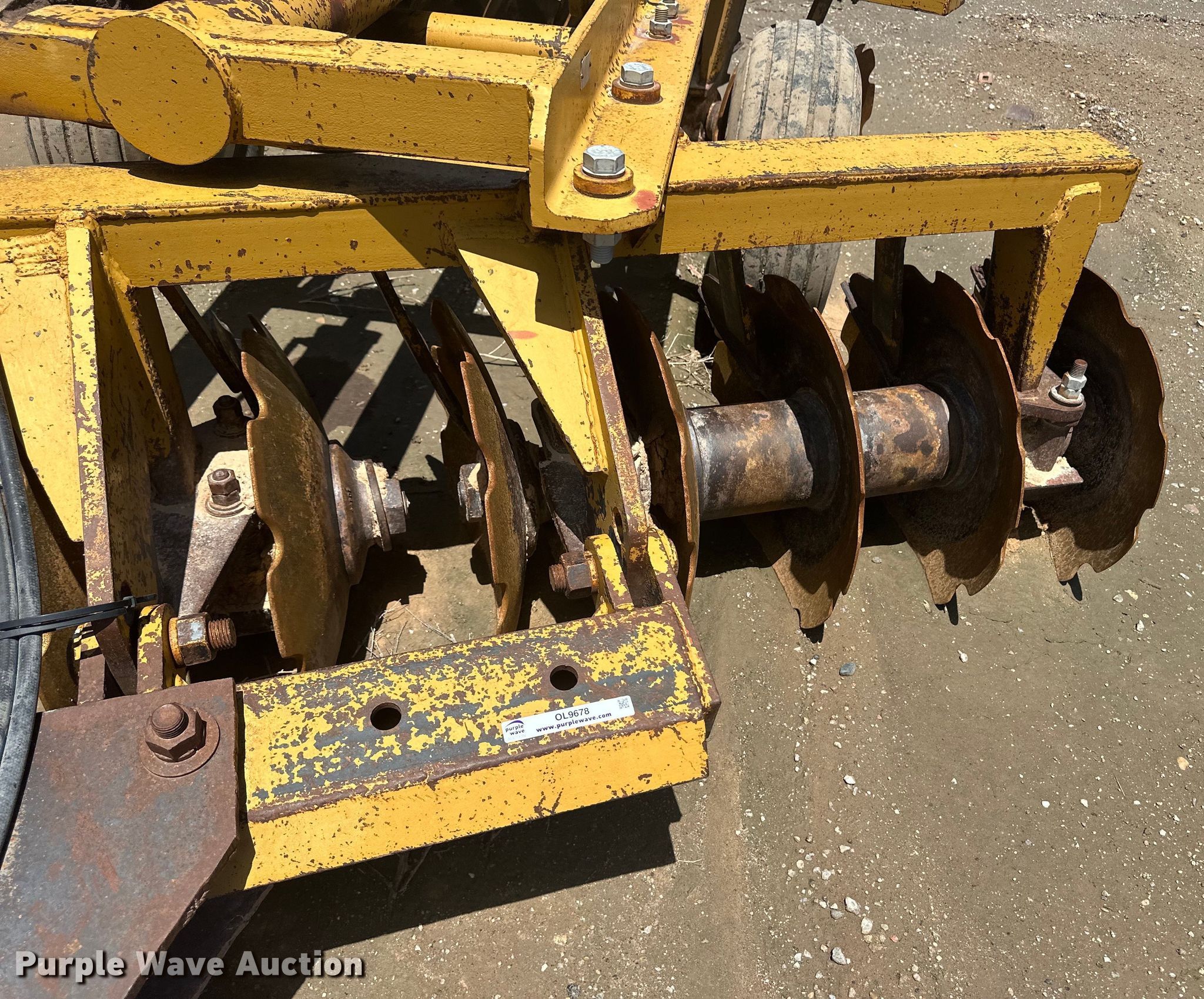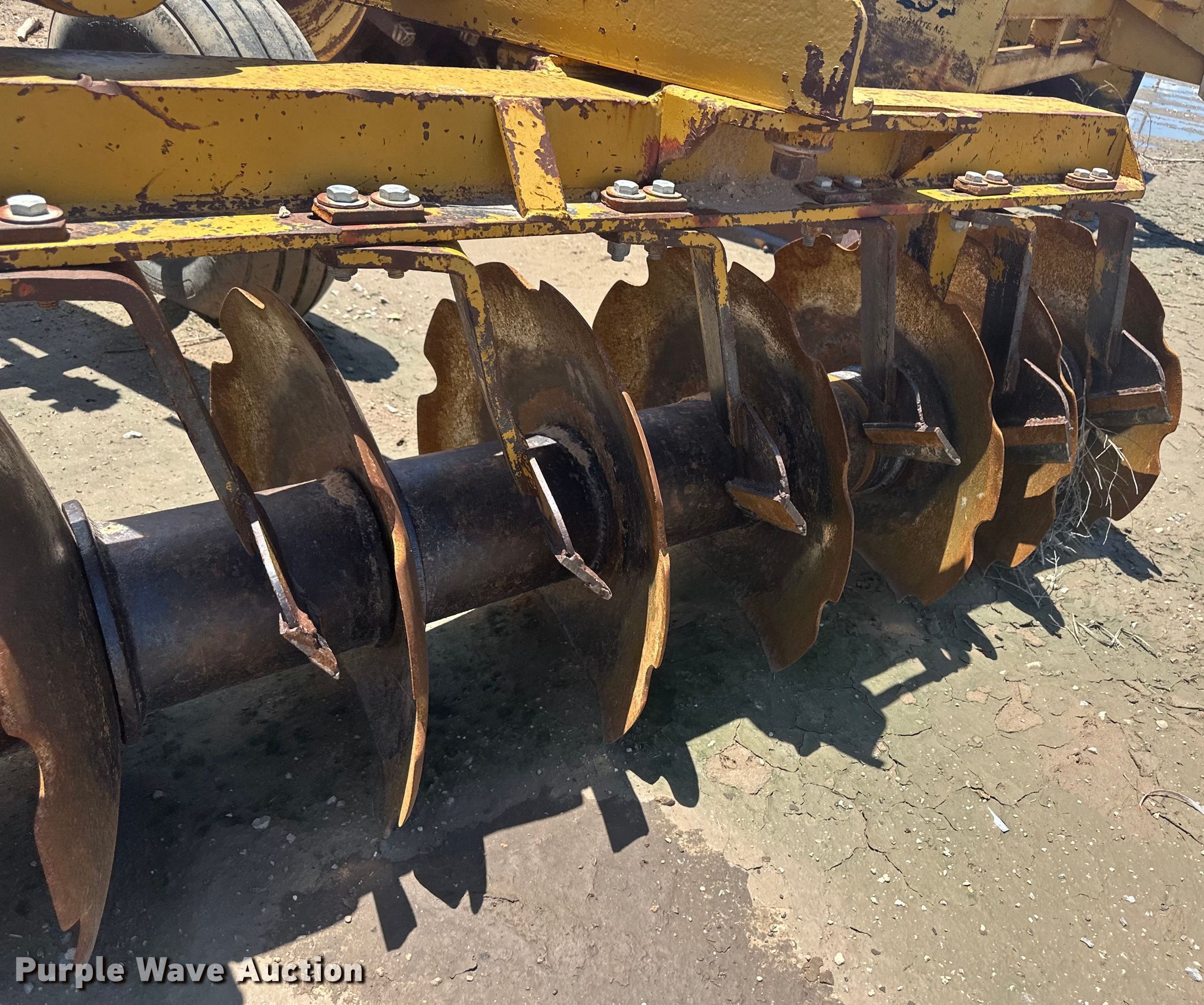Remco AW20S off-set disk. Overall width: 10', Serial: AW98-223. Features Front blades Diameter: 26", Spacing: 12", Rear blades Diameter: 26", Spacing: 12", Disk scrapers, Operation Hydraulic lift. Tires Tire size: 12.5L-15. Stoppel Dirt Inc.. Sublette, KS 67877