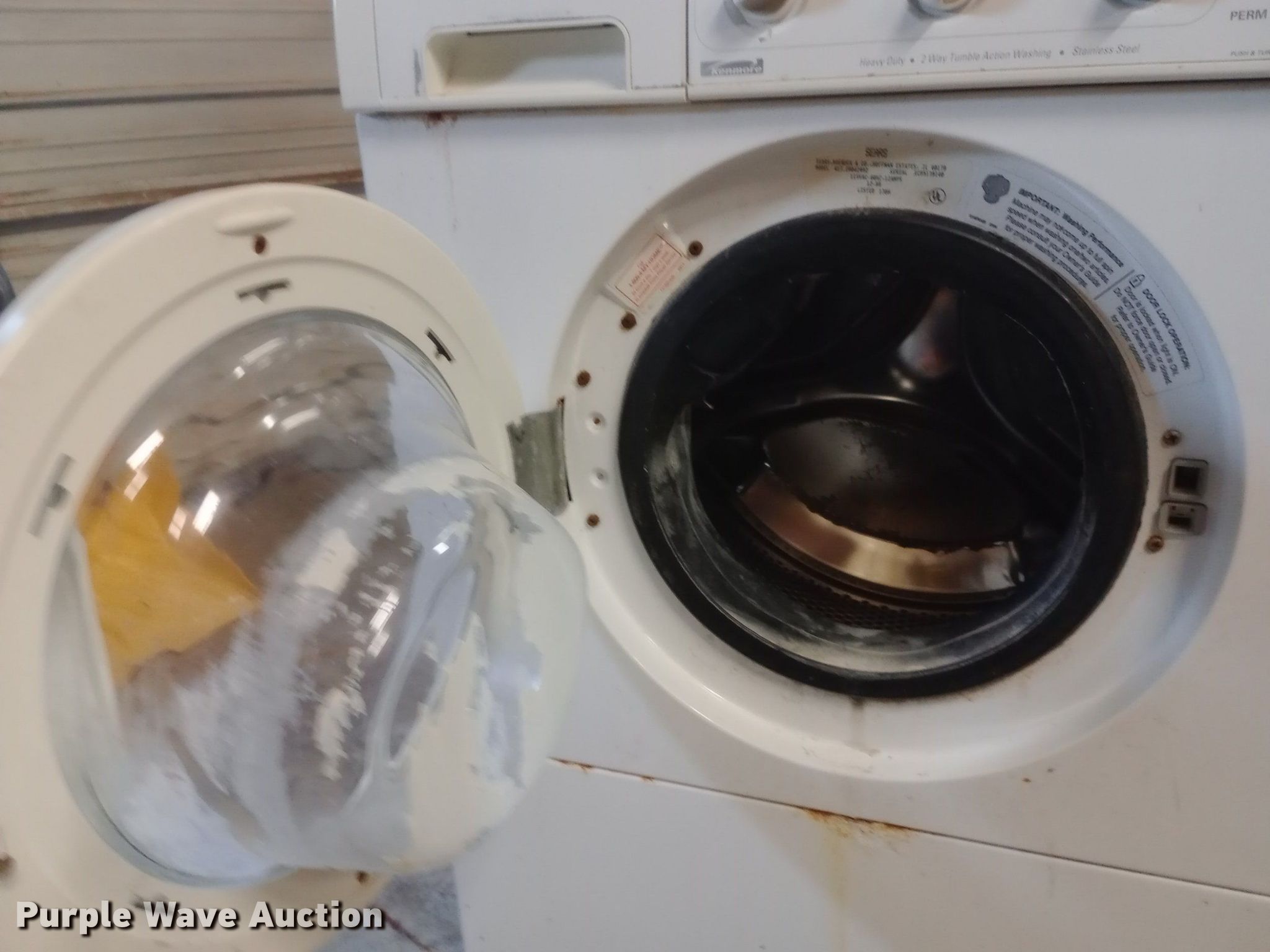Purple Wave is selling a used Appliances in Kansas. This item is a Kenmore washer and dryer set with the following: Unknown operating condition