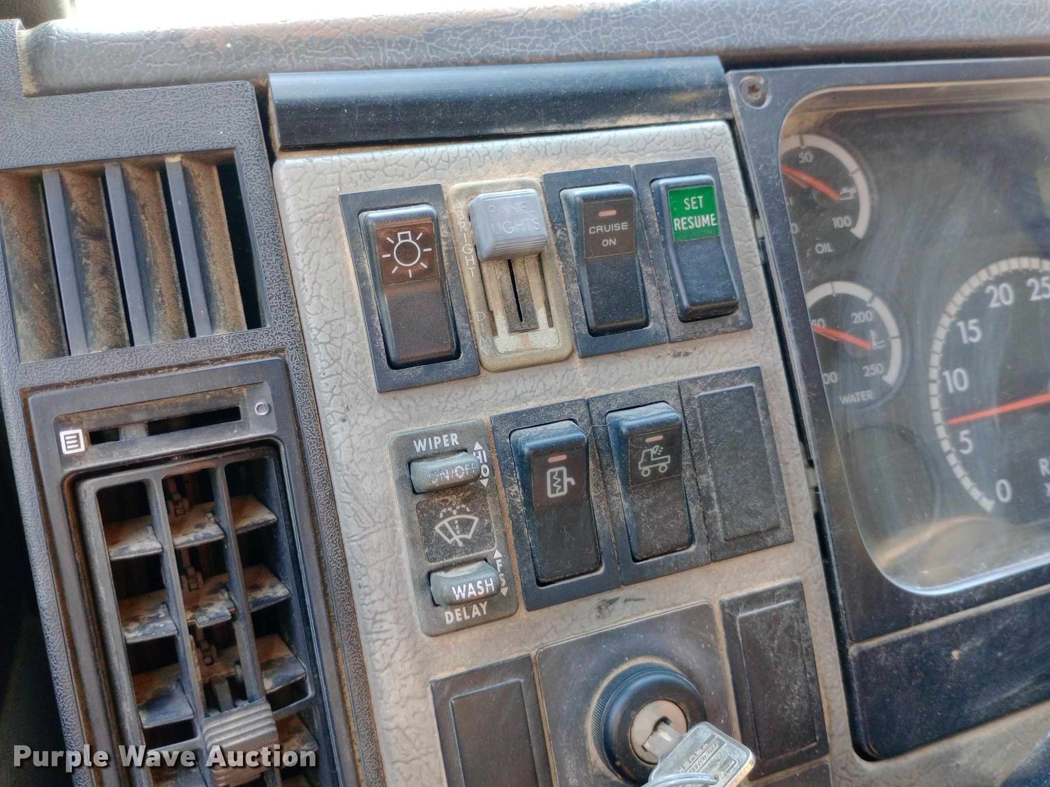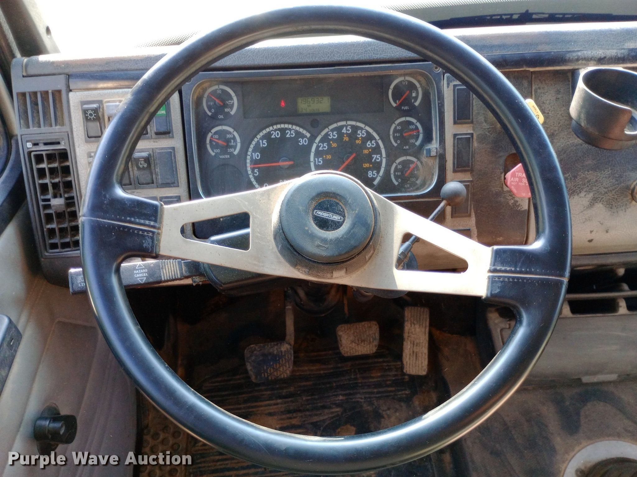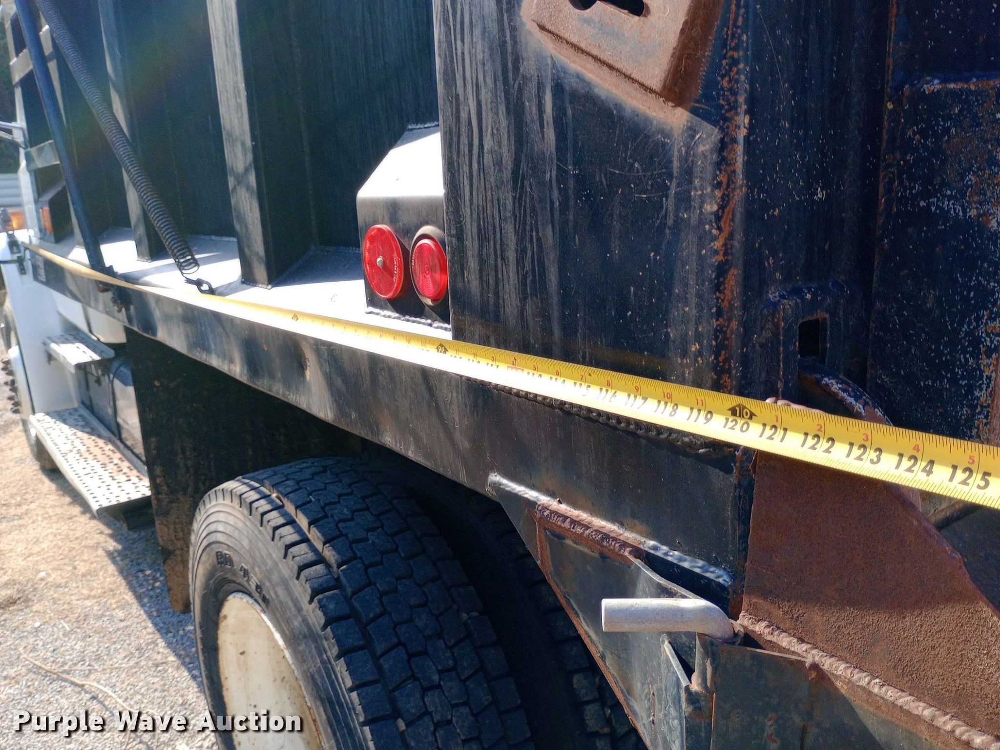 2001 Freightliner FL80 dump truck. Miles: 196,932 on odometer, VIN: 1FUBBXAK51HH85061. Engine Caterpillar 3126, Displacement: 7.2L, Cylinders: 6, Fuel type: Diesel. Transmission Eaton Fuller, Manual, Speed: 9. Chassis Axles: Single, Suspension: Spring, Brakes: Air, PTO, GVWR: 34,700 lbs FAWR: 12,000 lbs, RAWR: 22,700 lbs. Interior AC, Heat, Heated mirrors, Cruise control. Features Dump bed 10' L x 94" W, Side height: 37", Side board height: 7.5", Bed type: Steel, Roll tarp, Ram: Single, End gate: Air operated, Superwinch Tiger Shark TS 9500 winch Capacity: 9,500 lbs. Tires Size: 295/75R22.5. Notes No hour meter. Kansas title. City of Leon. Leon, KS 67074