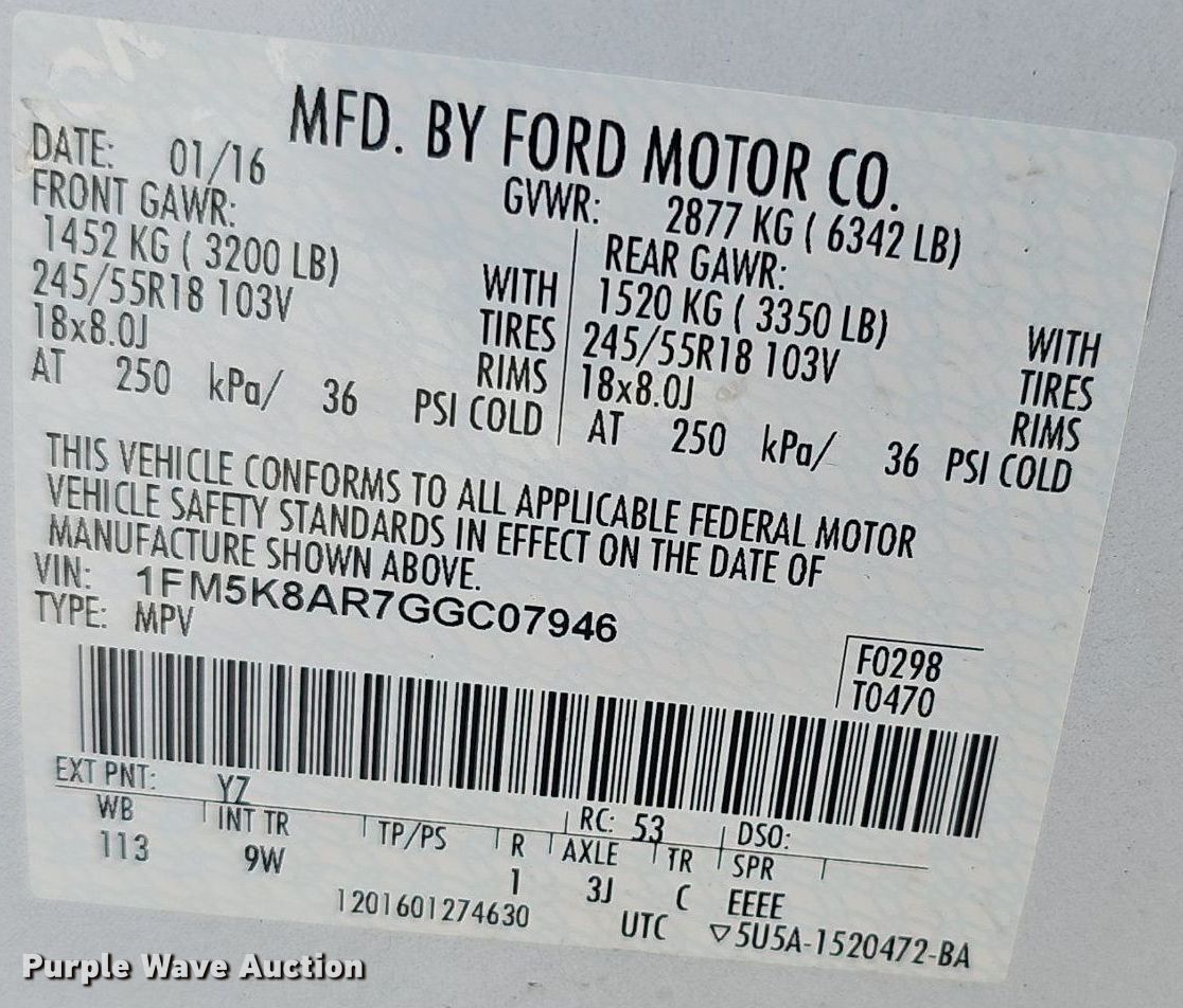 - VIN: 1FM5K8AR7GGC07946