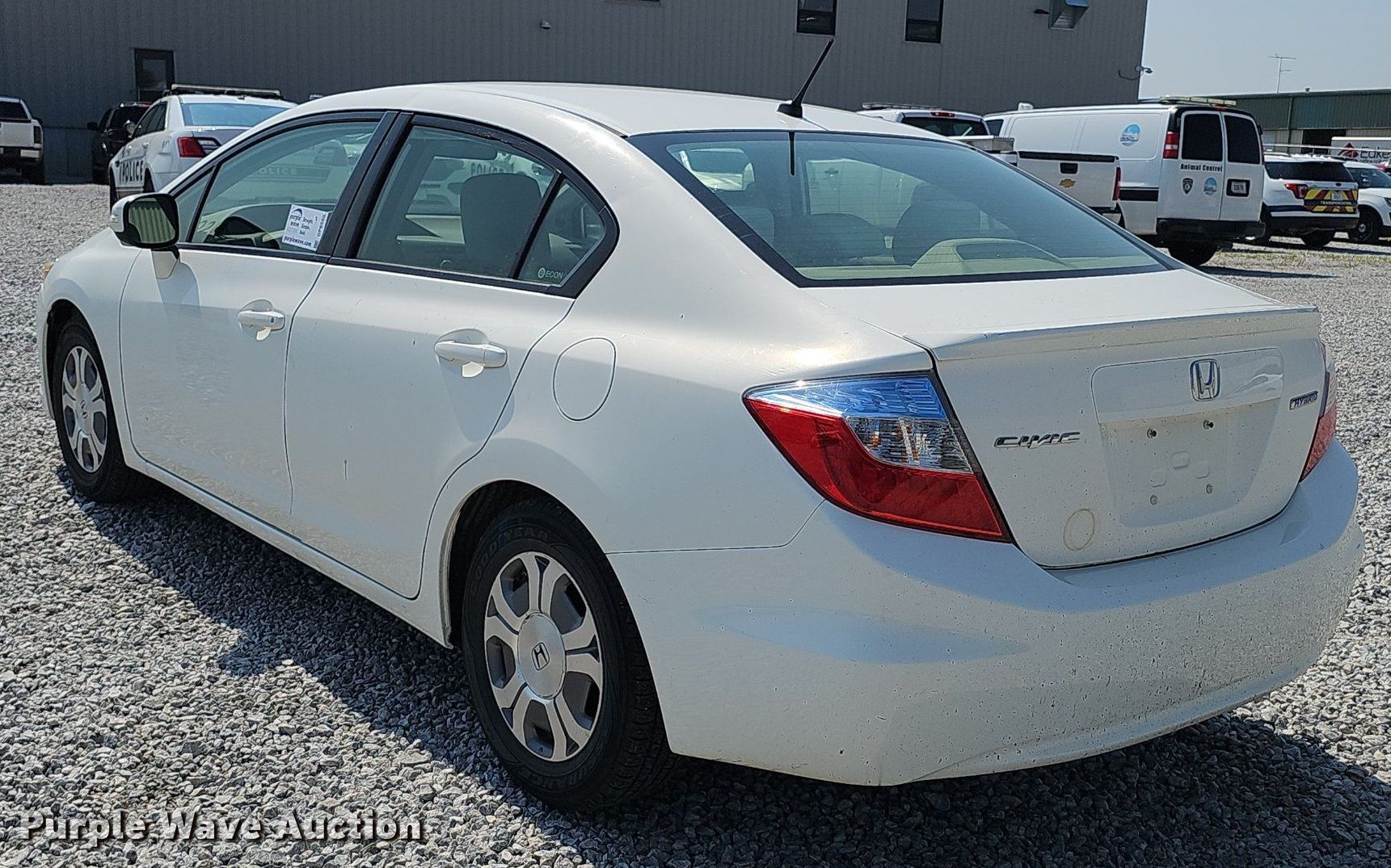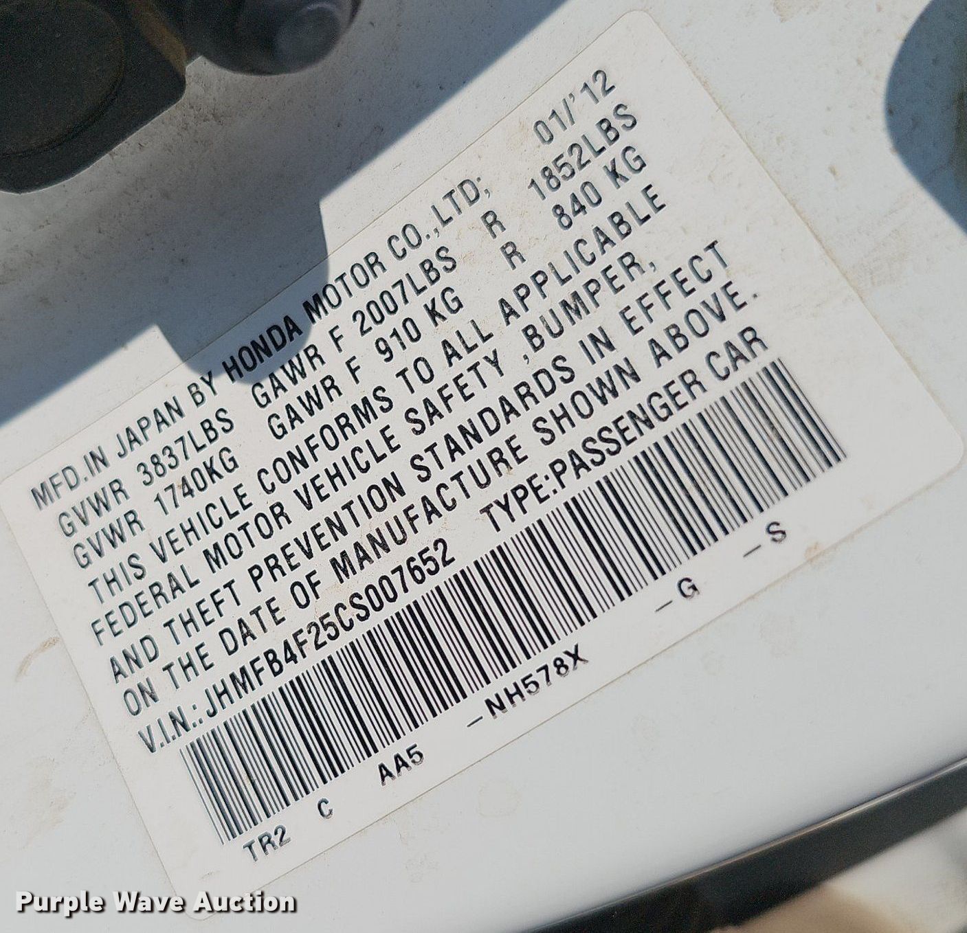 Purple Wave is selling a used Passenger Vehicle in Nebraska. This item is a 2012 Honda Civic with the following: Miles: 94,068 on odometer, VIN: JHMFB4F25CS007652, Unit #: 10254