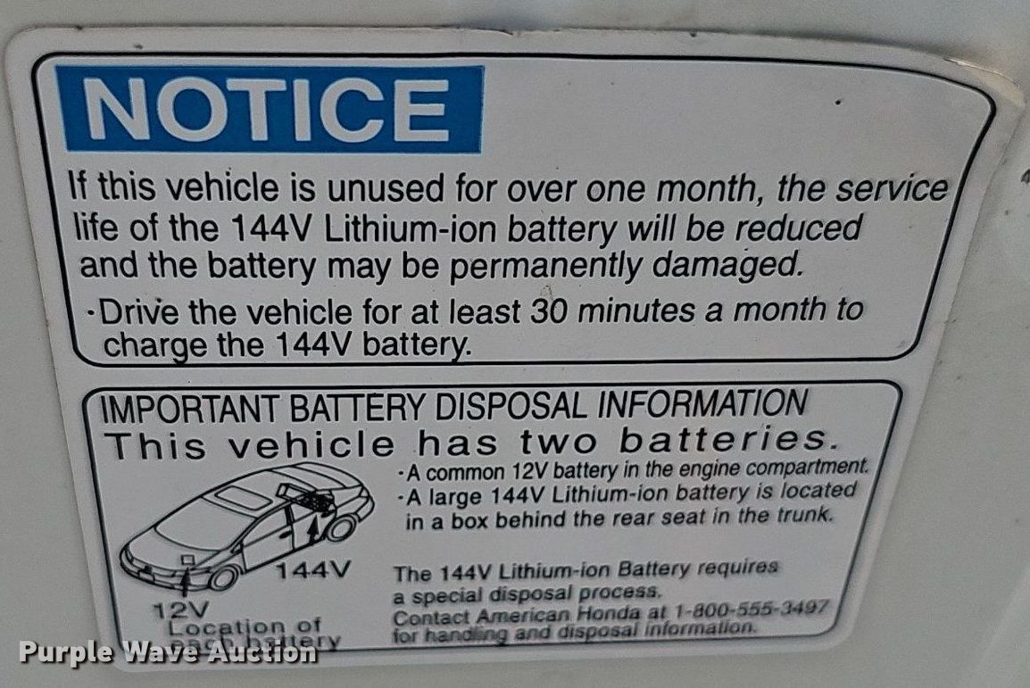 2012 Honda Civic. Miles: 94,068 on odometer, VIN: JHMFB4F25CS007652, Unit #: 10254. Engine Displacement: 1.3L L4 SOHC, Cylinders: 4, Fuel type: Hybrid. Transmission Automatic. Interior AC, Heat, Power windows, Power locks, Cruise control. Tires Size: 195/65R15. Notes Dead battery, Transmission case cracked, has been repaired. Nebraska title. Title distribution may be delayed up to 14 days from verification of funds. City of Lincoln Police Garage. Lincoln, NE 68528