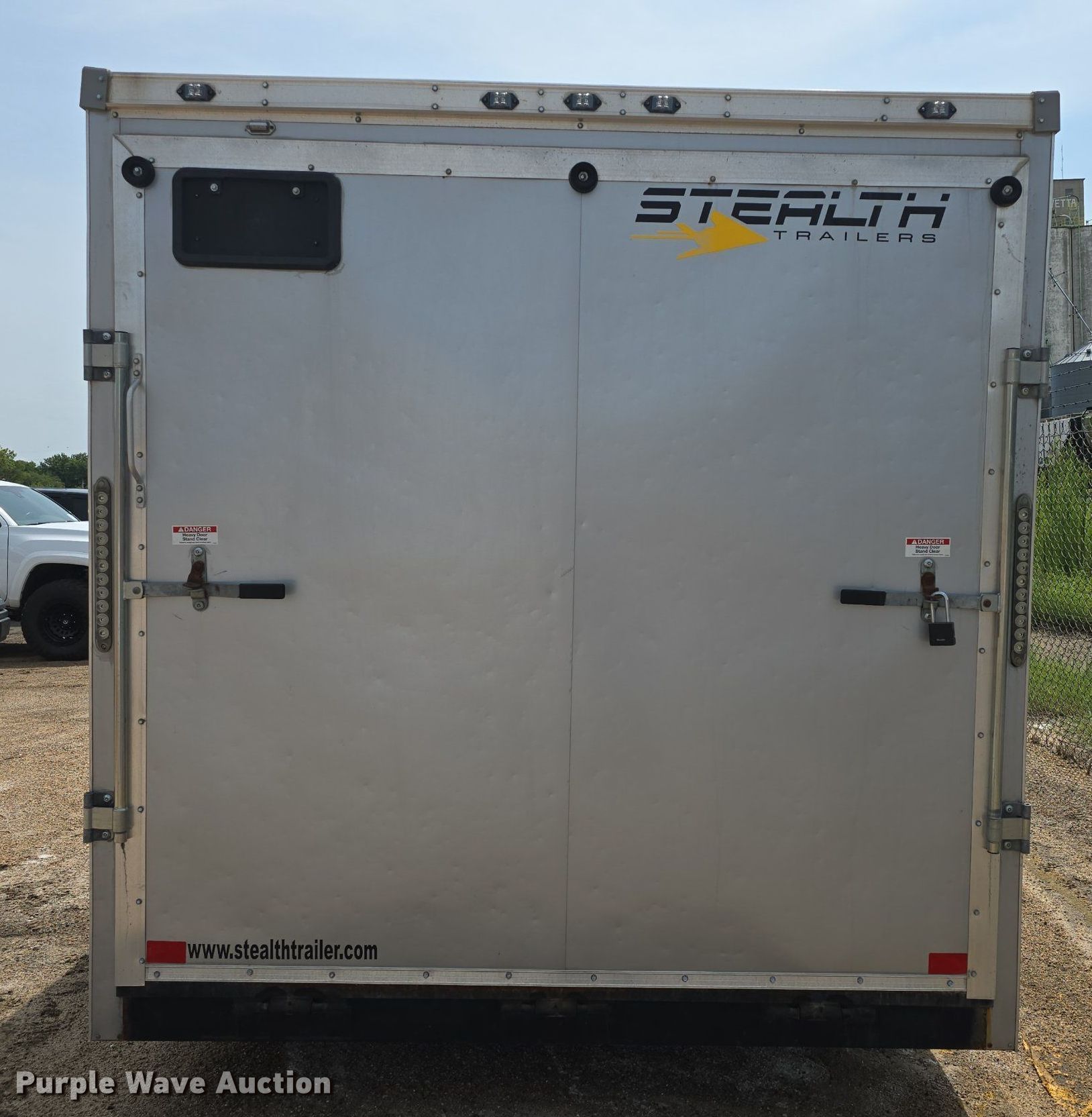 2020 Stealth Enterprises STT714TA2 enclosed cargo trailer. VIN: 52LBE1429LE076121. Dimensions Overall: 18' 3" L x 8' 9" W, Body: 16' 6" L x 7' 1" W, Rear door / ramp 75" L x 89" W. Features Deck type: Wood, E-track rail system. Chassis Ball hitch: 2 5/16", Landing gear: Single, Suspension: Spring, Axles: Tandem, GVWR: 6,990 lbs, GAWR: 3,500 lbs. Tires Aluminum wheels, Size: 205/75R15. Notes Contents included, Hail damage. Kansas title. Title distribution may be delayed up to 14 days from verification of funds. Dickinson County. Abilene, KS 67410