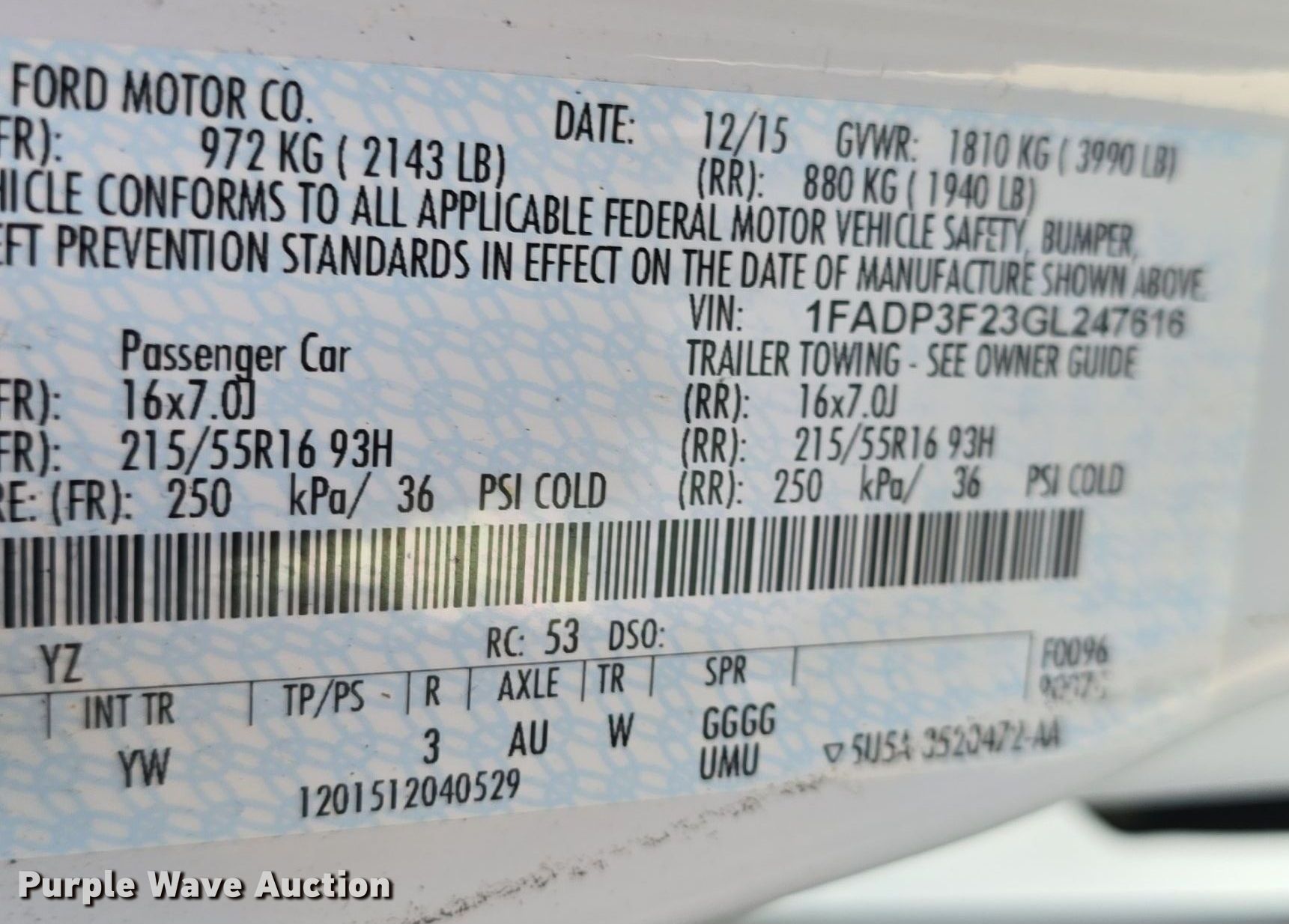 Purple Wave is selling a used Passenger Vehicle in Kansas. This item is a 2016 Ford Focus SE with the following: Miles: 86,067 on odometer, VIN: 1FADP3F23GL247616, Unit #: 17031