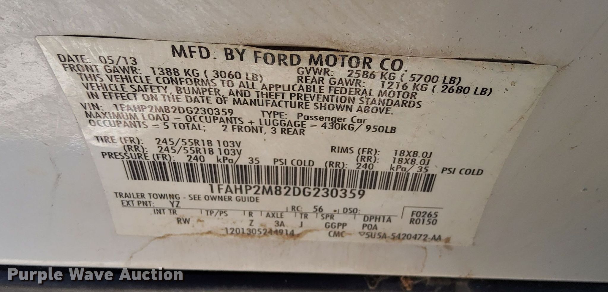 - VIN: 1FAHP2M82DG230359