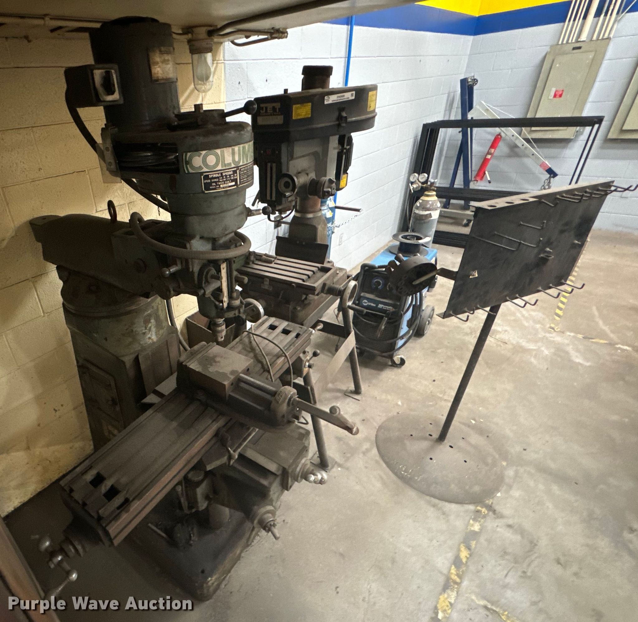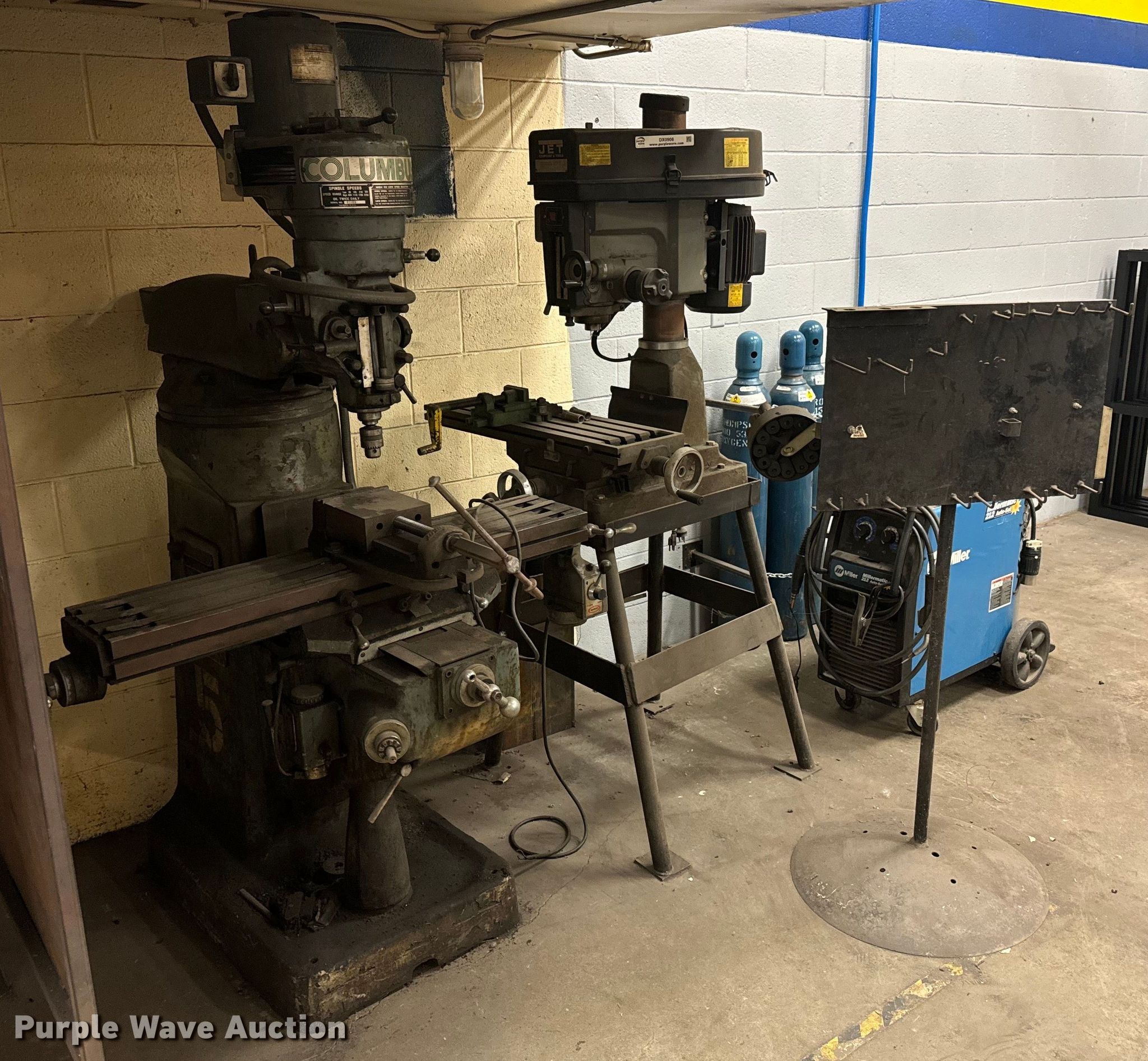 Tools. Columbus drill press. Three phase electric motor. Jet JMD-18PF milling machine Single phase, Volts: 230, HP: 2. Notes Parts rack, Dies. USD 484 Transportation. Fredonia, KS 66736