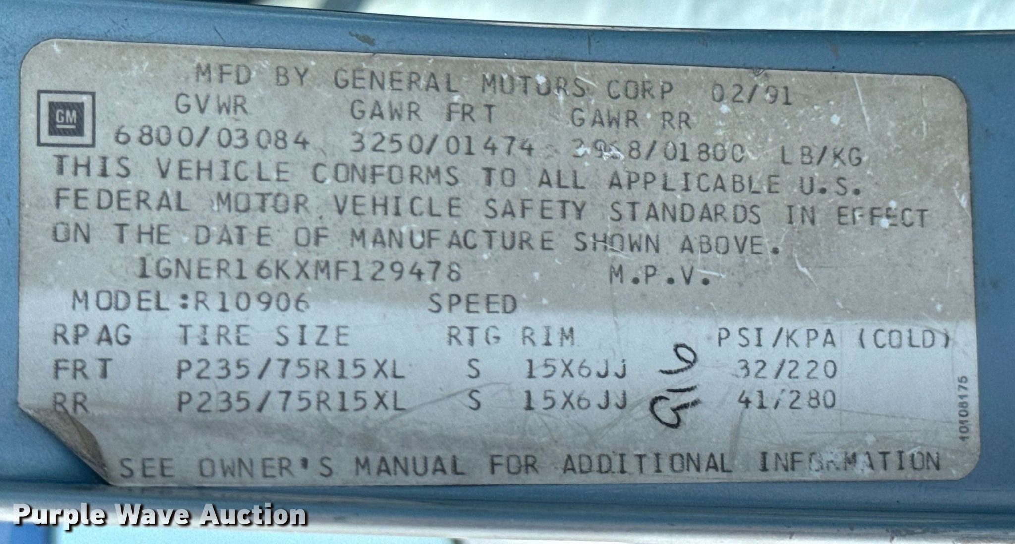 - VIN: 1GNER16KXMF129478