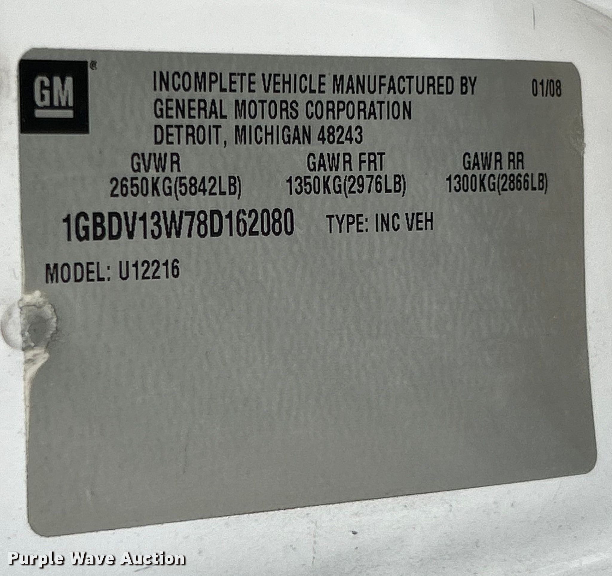 • VIN: 1GBDV13W78D162080