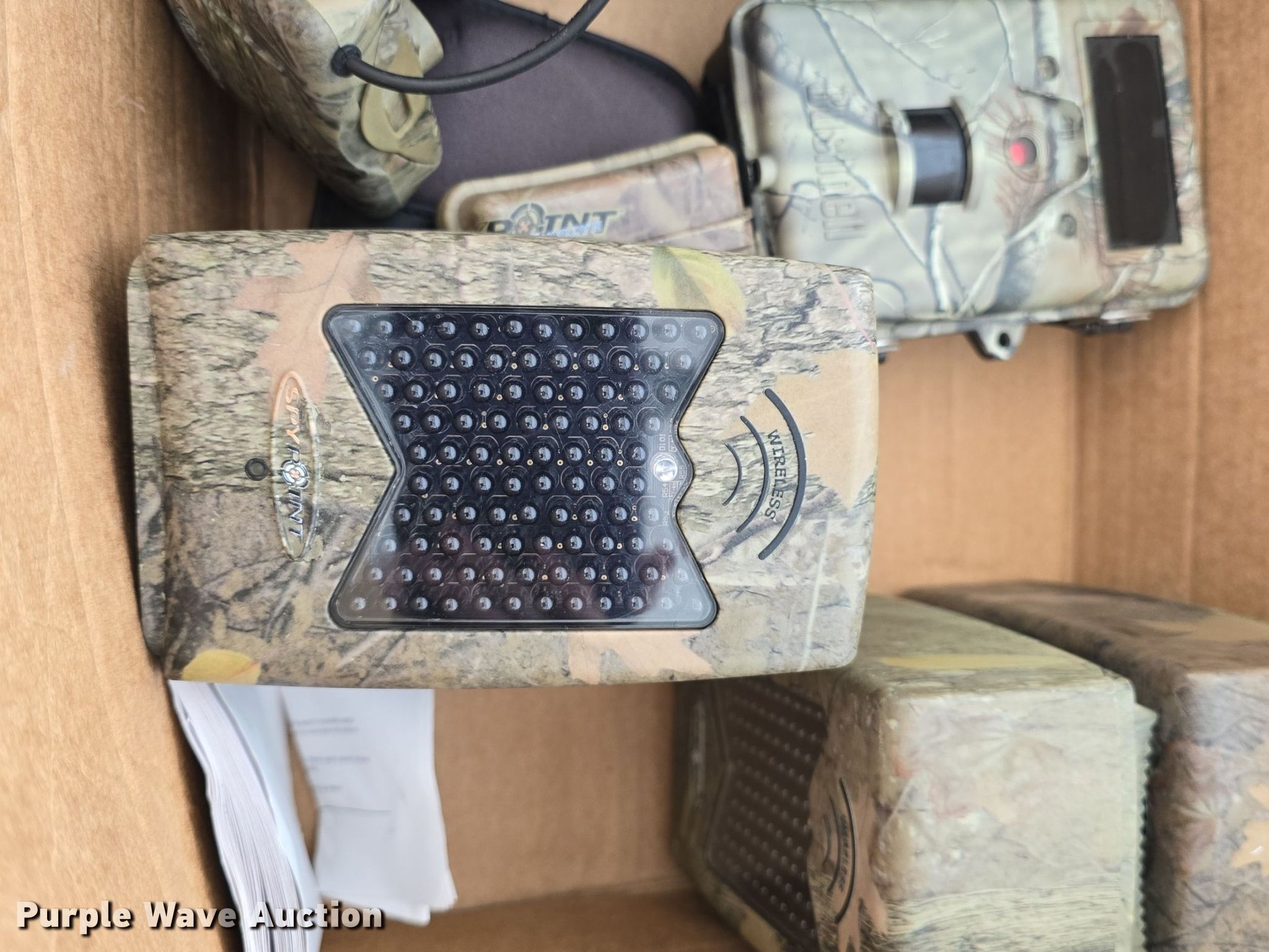Purple Wave is selling a used Electronics in Kansas. This item is a (11) game trail cameras with the following: (2) Spy Points, Bush Nelly, (2) Predators, (2) Leupolds, (4) Reconyx