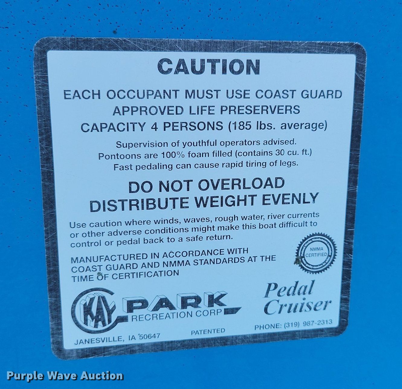 Purple Wave is selling a used Boat in Iowa. This item is a 2008 Kay Pedal Cruiser paddle boat with the following: VIN: IA 5047BF, Length: 10' 4"
