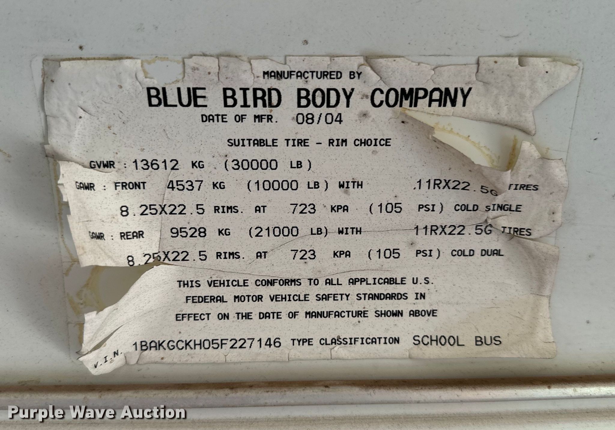 - VIN: 1BAKGCKH05F227146