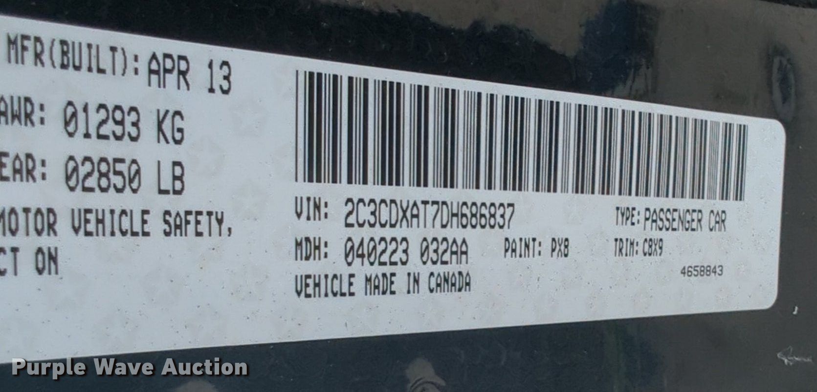 2013 Dodge Charger Police. Miles: 106,863 on odometer, VIN: 2C3CDXAT7DH686837, Unit #: 2134331. Engine Displacement: 5.7L V8 OHV, Cylinders: 8, Fuel type: Gas. Transmission Automatic. Interior AC, Heat, Seat: Power driver, Power windows, Power locks, Cruise control. Tires Size: 225/60R18. Notes Center console missing, Dead battery. Oklahoma title. Title distribution may be delayed up to 30 days from verification of funds. Edmond, OK 73013