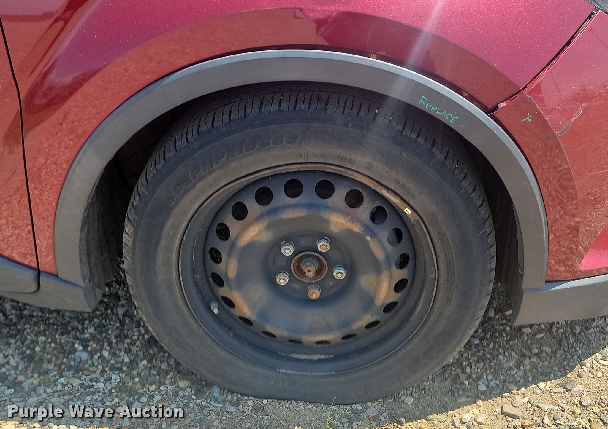 2019 Toyota C-HR. Miles: 72,139 on odometer, VIN: NMTKHMBX2KR090446, Unit #: DCI04. Engine Displacement: 2.0L L4 DOHC, Cylinders: 4, Fuel type: Gas. Transmission Automatic. Interior AC, Heat, Power windows, Power locks, Cruise control, Backup camera. Tires Driver side front: T145/90D16 Spare tire, Size: 215/60R17. Notes Dash warning indicator: TPMS, Possible rodent damage, Front end damage. South Dakota title. State of South Dakota Bureau of Administration. Pierre, SD 57501