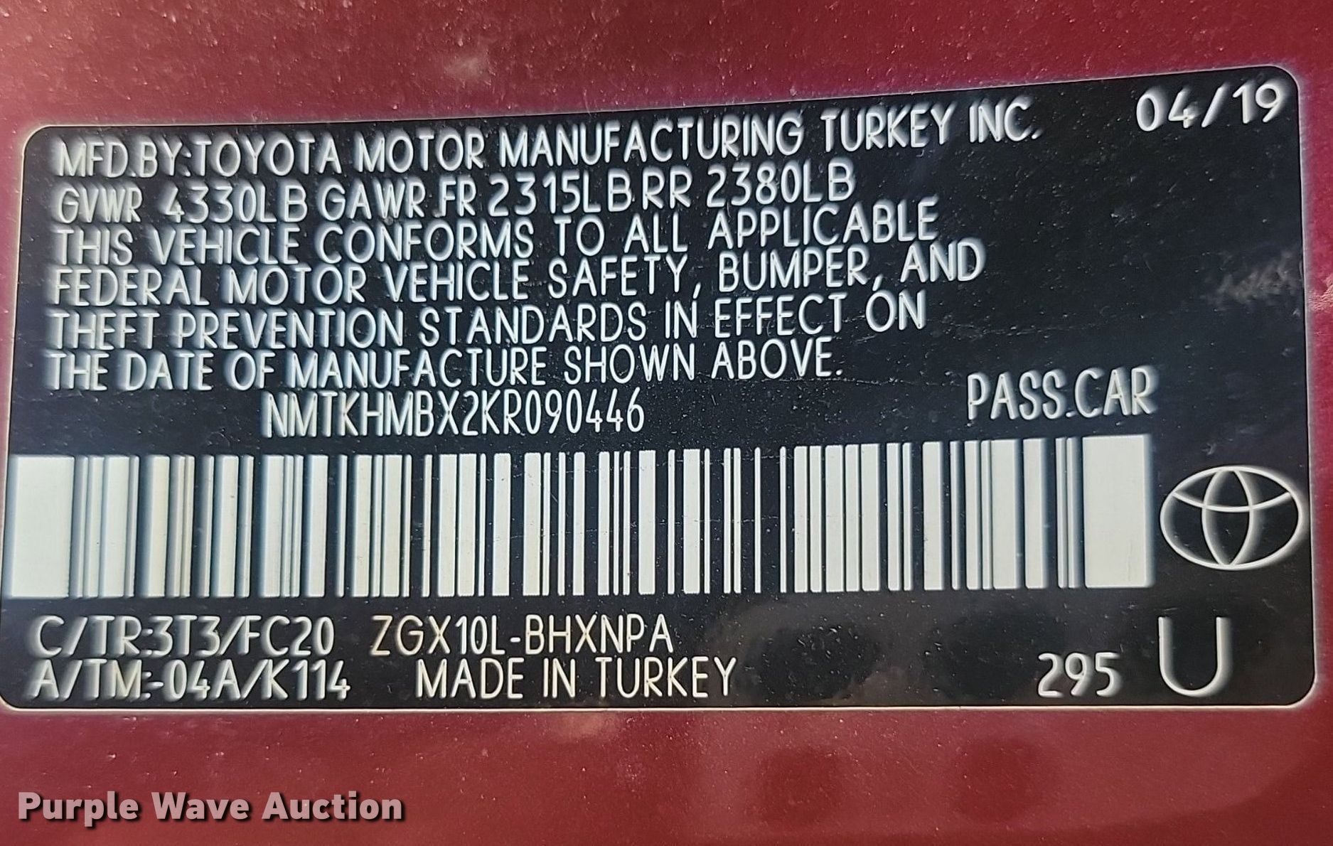 - VIN: NMTKHMBX2KR090446