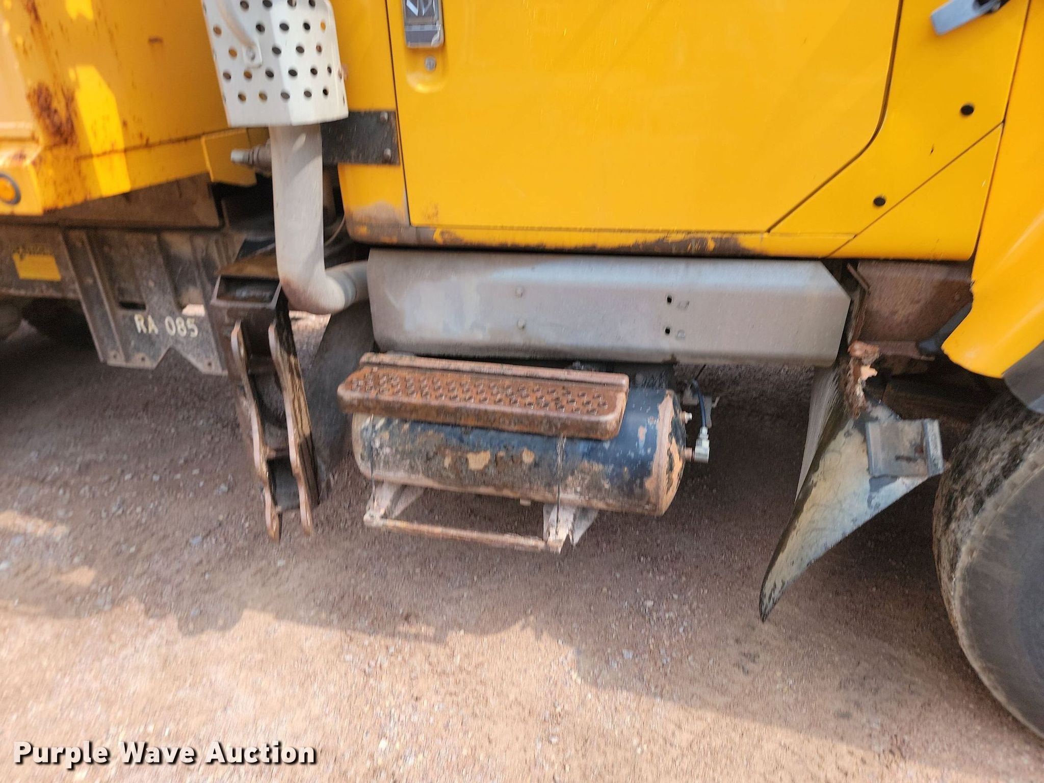 1998 International 2554 6x4 dump truck. Miles: 175,602 on odometer, Hours: 7,039 on meter, VIN: 1HTGCADR9WH538293, Unit #: DL180. Engine International, Displacement: 8.7L, Cylinders: 6, Fuel type: Diesel. Transmission Eaton Fuller 8 Speed + Lo & lo-lo, Manual, Speed: 10. Chassis Axles: Tandem, Differential lock: Inter-axle, Suspension: Spring over walking beam, Brakes: Air, Front mount PTO, GVWR: 54,500 lbs FAWR: 14,500 lbs, IAWR: 20,000 lbs, RAWR: 20,000 lbs. Interior AC, Heat, Heated mirrors, Cruise control. Features Dump bed 15' L x 96" W, Side height: 36", Bed type: Steel, Ram: Single, End gate: Air operated, Spreader Monroe, Plow Henke, Width: 144". Tires Front: 385/65R22.5, Rear: 11R22.5. Notes Stalls sometimes during idle Hard to restart. South Dakota title. Title distribution may be delayed up to 30 days from verification of funds. State of South Dakota Bureau of Administration. Custer, SD 57730