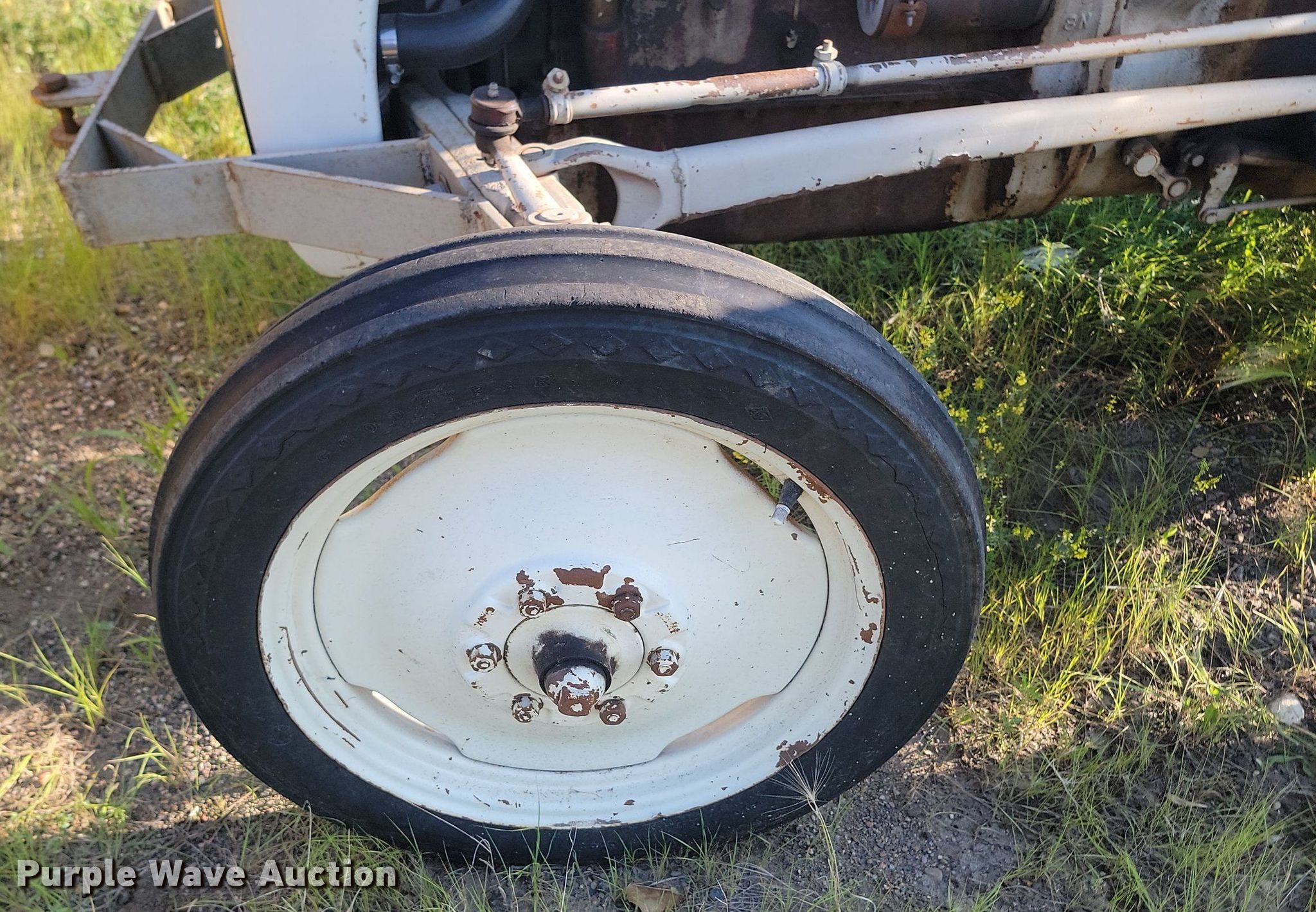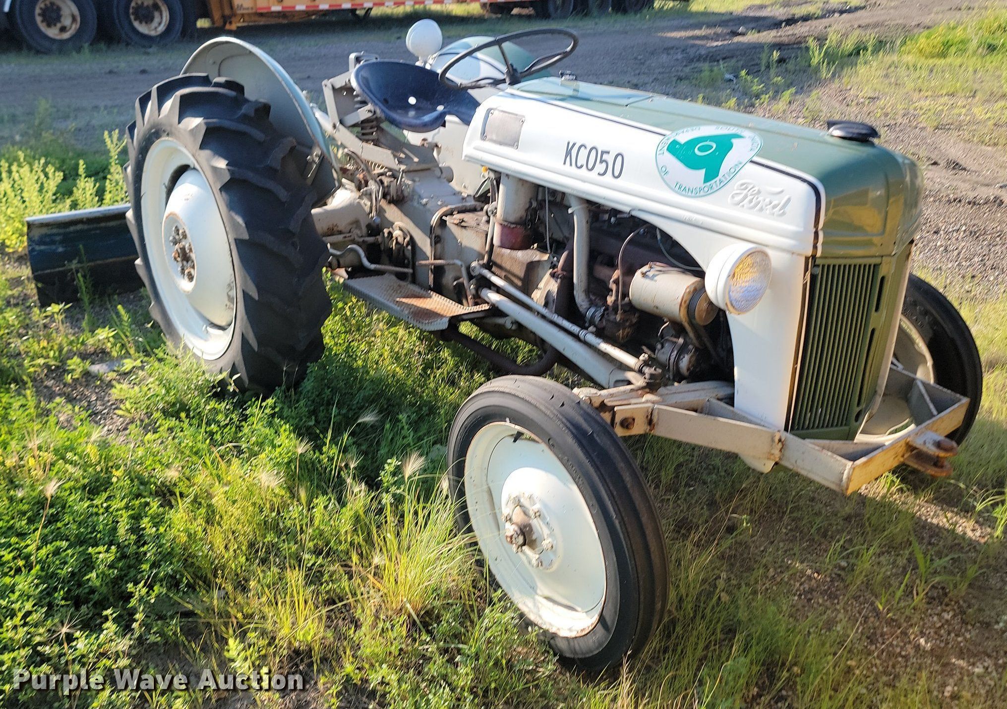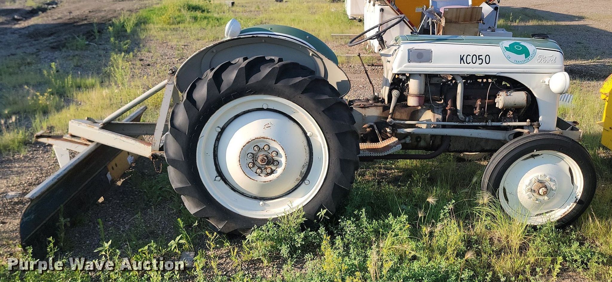 Ford tractor. Unit #: KC050. Engine Ford, Cylinders: 4, Fuel type: Gas. Transmission Manual. Features Three point, Blade Width: 7'. Tires Front: 4.00-19, Rear: 11.2-28. Notes Engine turns over but will not start, Non-operational unit. State of South Dakota Bureau of Administration. Pierre, SD 57501