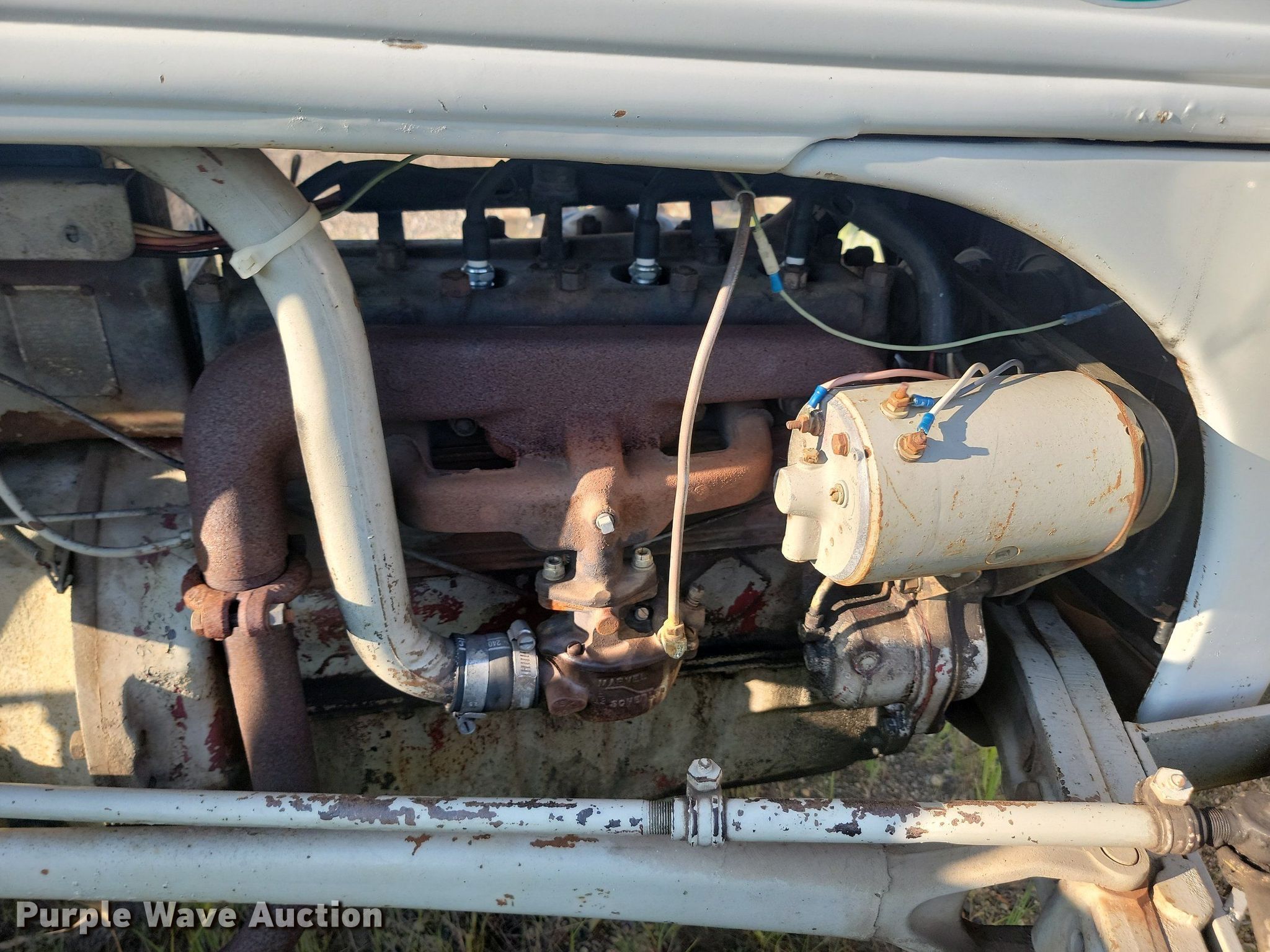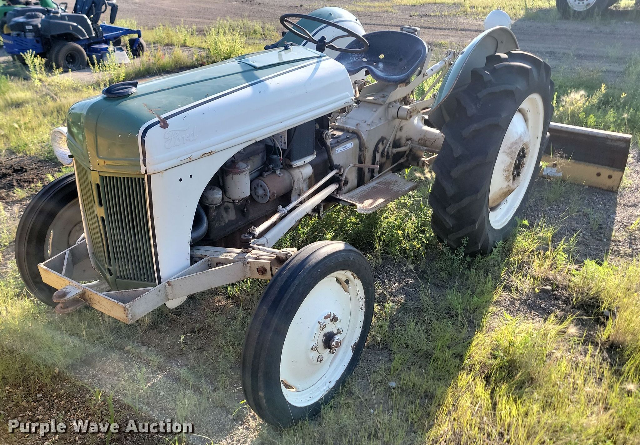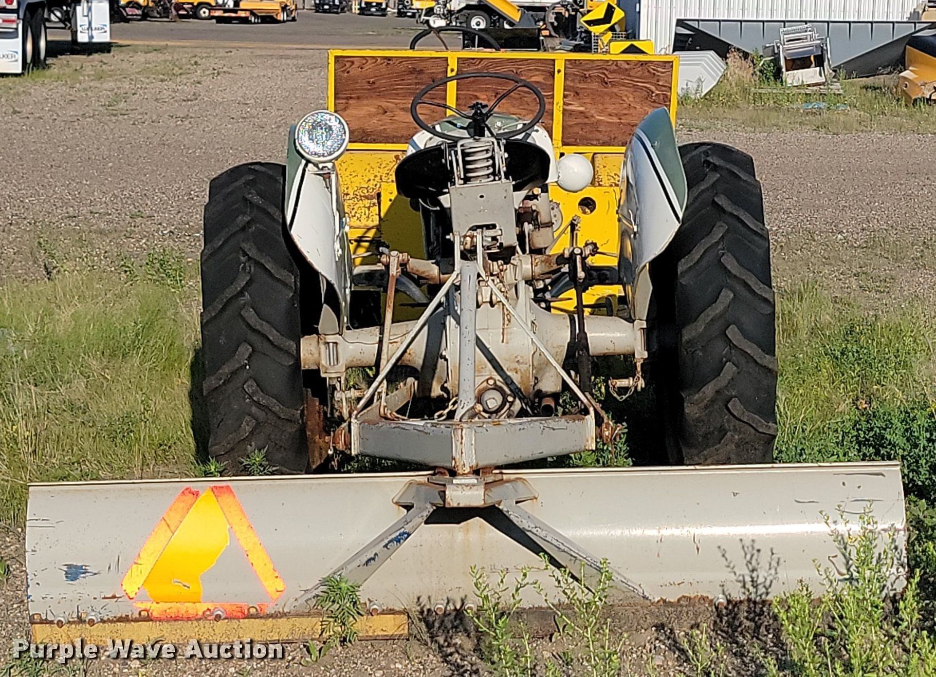 Ford tractor. Unit #: KC050. Engine Ford, Cylinders: 4, Fuel type: Gas. Transmission Manual. Features Three point, Blade Width: 7'. Tires Front: 4.00-19, Rear: 11.2-28. Notes Engine turns over but will not start, Non-operational unit. State of South Dakota Bureau of Administration. Pierre, SD 57501