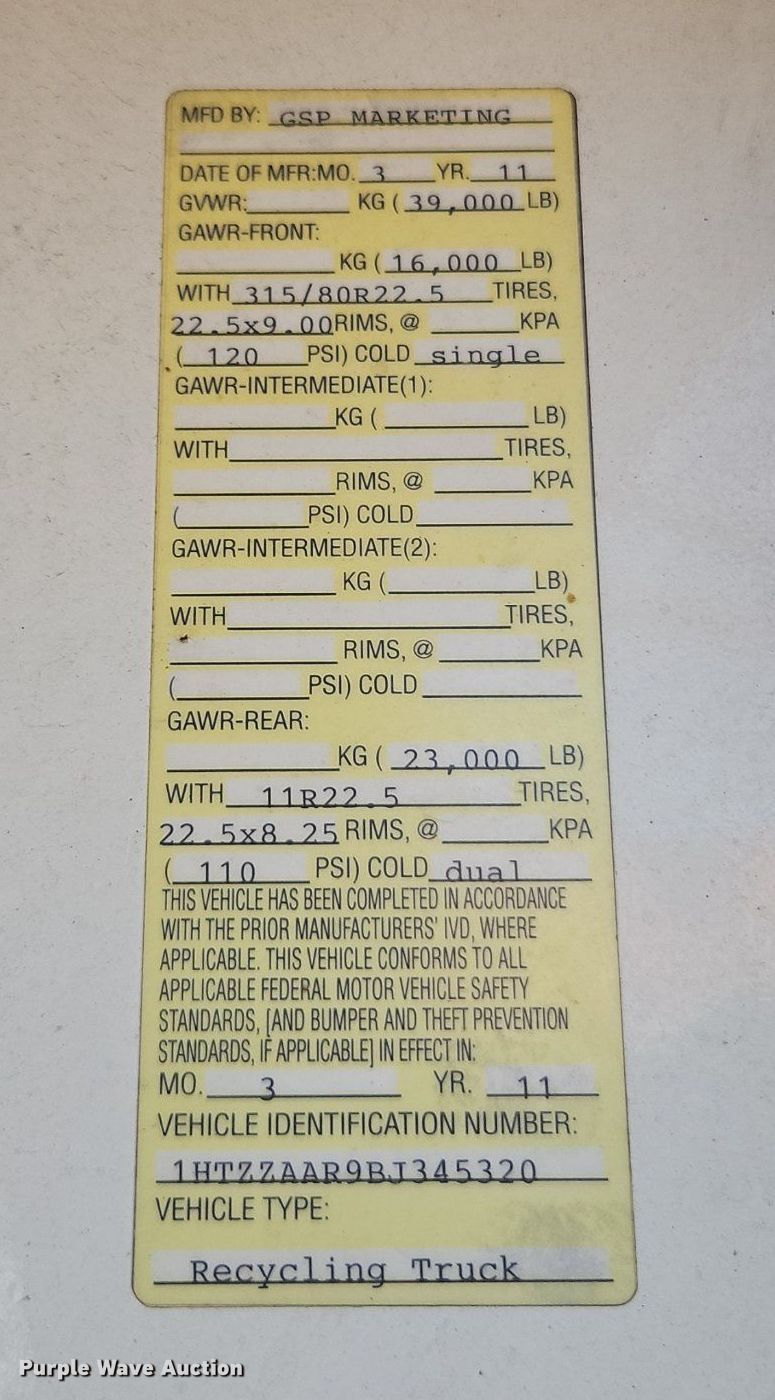 2011 International 7300 refuse truck. Miles: Unknown, VIN: 1HTZZAAR9BJ345320, Unit #: 4834. Engine International Maxxforce, Displacement: 7.6L, Cylinders: 6, Fuel type: CNG. Transmission Allison, Automatic. Chassis Axles: Single, Suspension: Spring, Brakes: Air, PTO, GVWR: 39,000 lbs, Wheelbase: 660". Interior AC, Heat, Cruise control, Backup camera. Features Refuse bed G-S PRODUCTS MP8120DX, Load: Side. Tires Front: 315/80R22.5, Rear: 11R22.5. Notes Unit must be towed or hauled, Non-operational unit. Missouri title. Title distribution may be delayed up to 14 days from verification of funds. City of Kansas City. Kansas City, MO 64120
