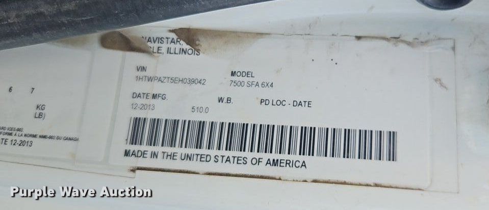 Purple Wave is selling a used Construction Dump Truck in Missouri. This item is a 2014 International WorkStar 7500 dump truck with the following: Miles: Unknown, VIN: 1HTWPAZT5EH039042, Unit #: 8338