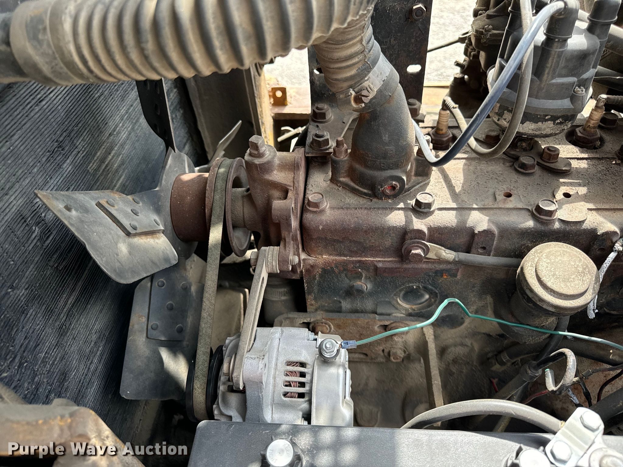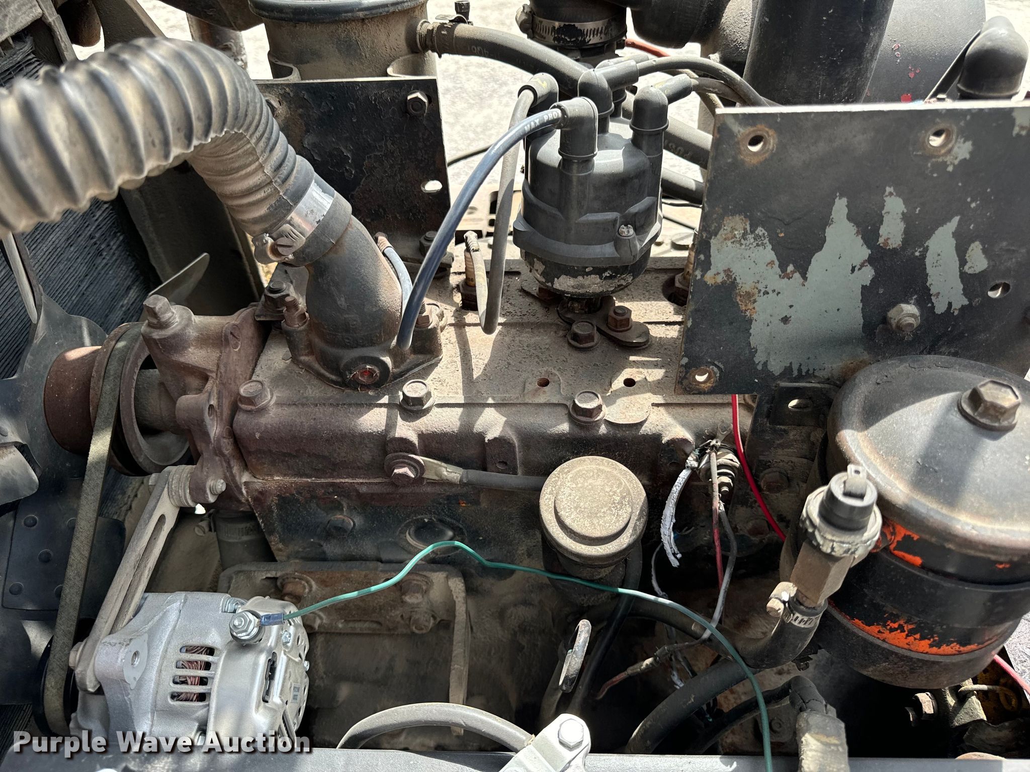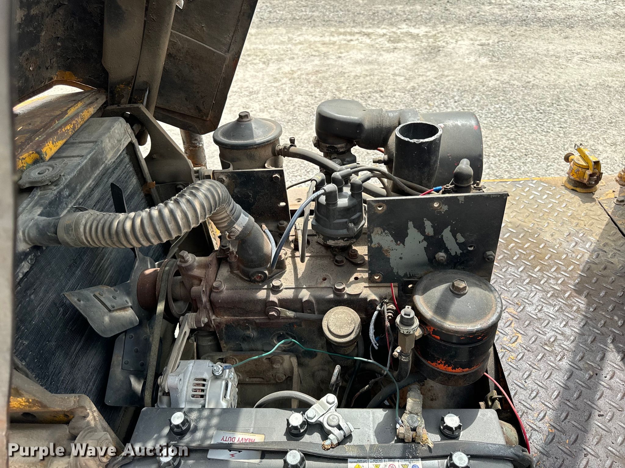 Hyster forklift. Serial: FAB21964. Engine Cylinders: 4, Fuel type: Gas. Transmission Powershift, 1F - 1R. Operators station Canopy. Features Mast stages: 2, Fork length: 44". Tires Front: 18x8x12 1/8, Rear: 16x5x10 1/2, Solid. Notes Hydraulic leak. East Oakland Township. Oakland, IL 61943