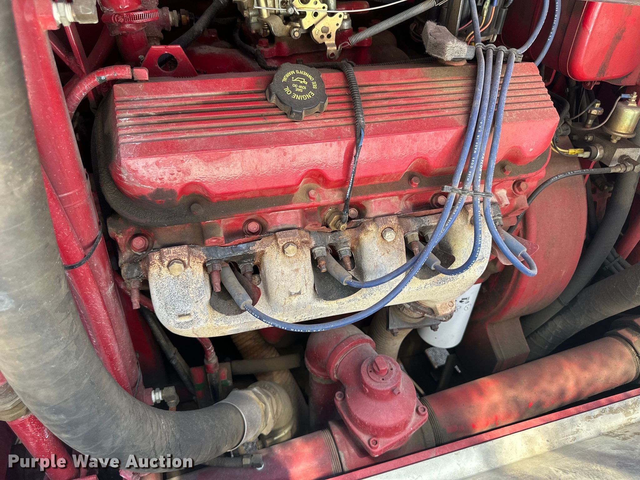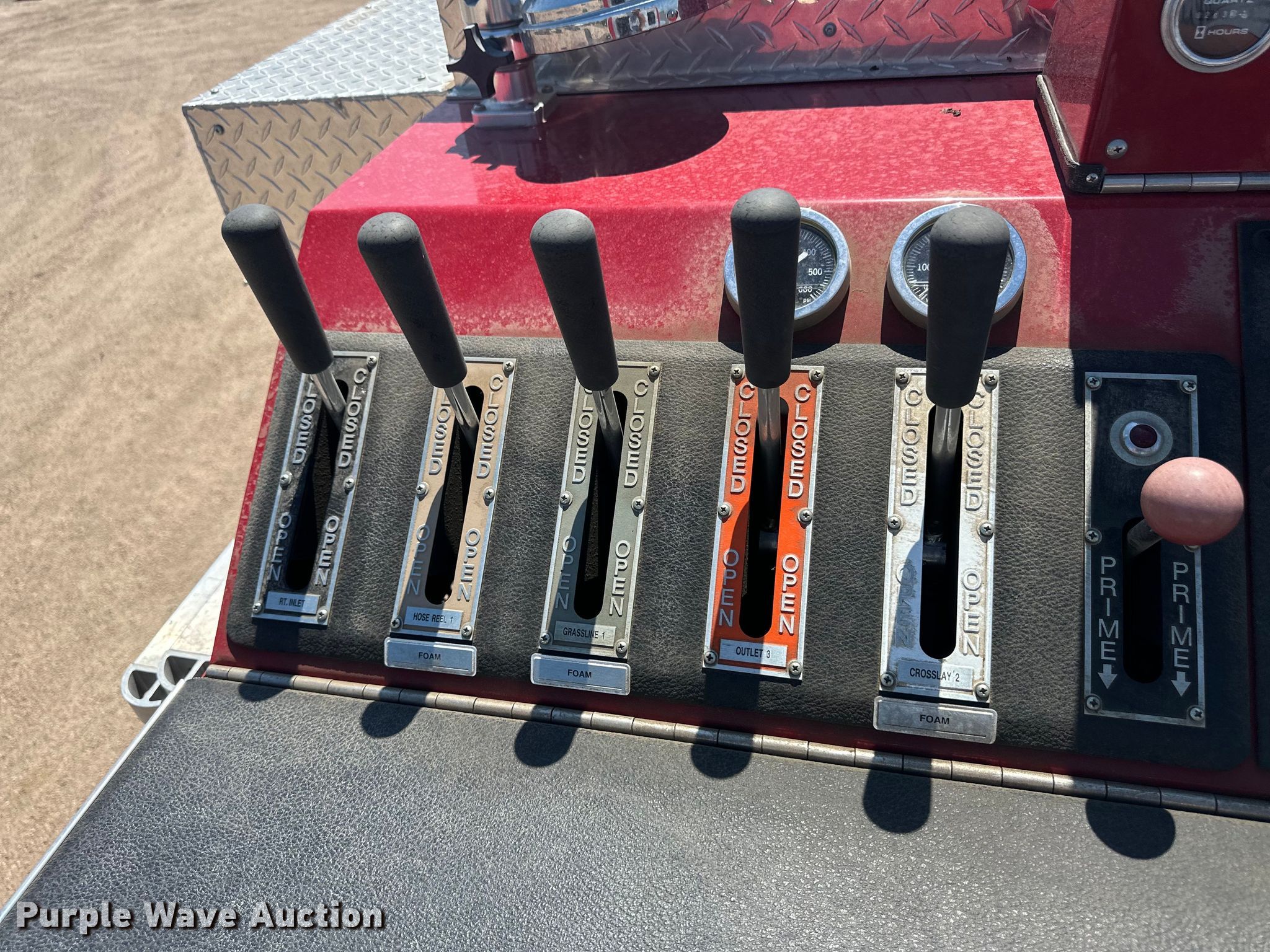 1995 Ford pumper fire truck. Miles: 4,813 on odometer, VIN: 1FDRF70J7SVA63833. Engine Displacement: 7.0L, Cylinders: 8, Fuel type: Gas. Transmission Manual, Speed: 6. Chassis Axles: Single, Suspension: Spring, Brakes: Hydraulic. Interior Heat. Features Fire truck body Pump 1,000 gpm, Hours: 263 on meter, Engine Displacement: 454 C.I.D., Ground ladder. Tires Size: 11R22.5, Aluminum. Kansas title. Title distribution may be delayed up to 14 days from verification of funds. City of Syracuse. Syracuse, KS 67878