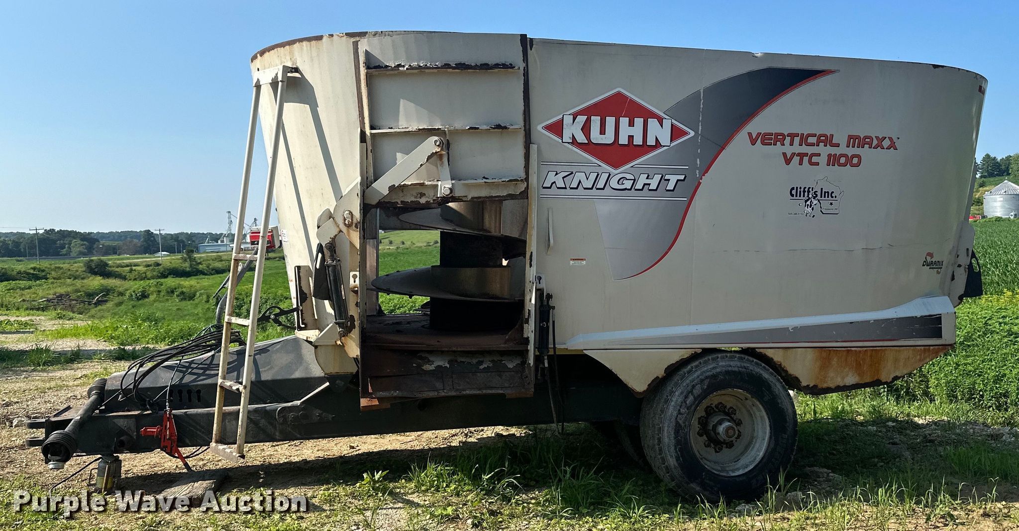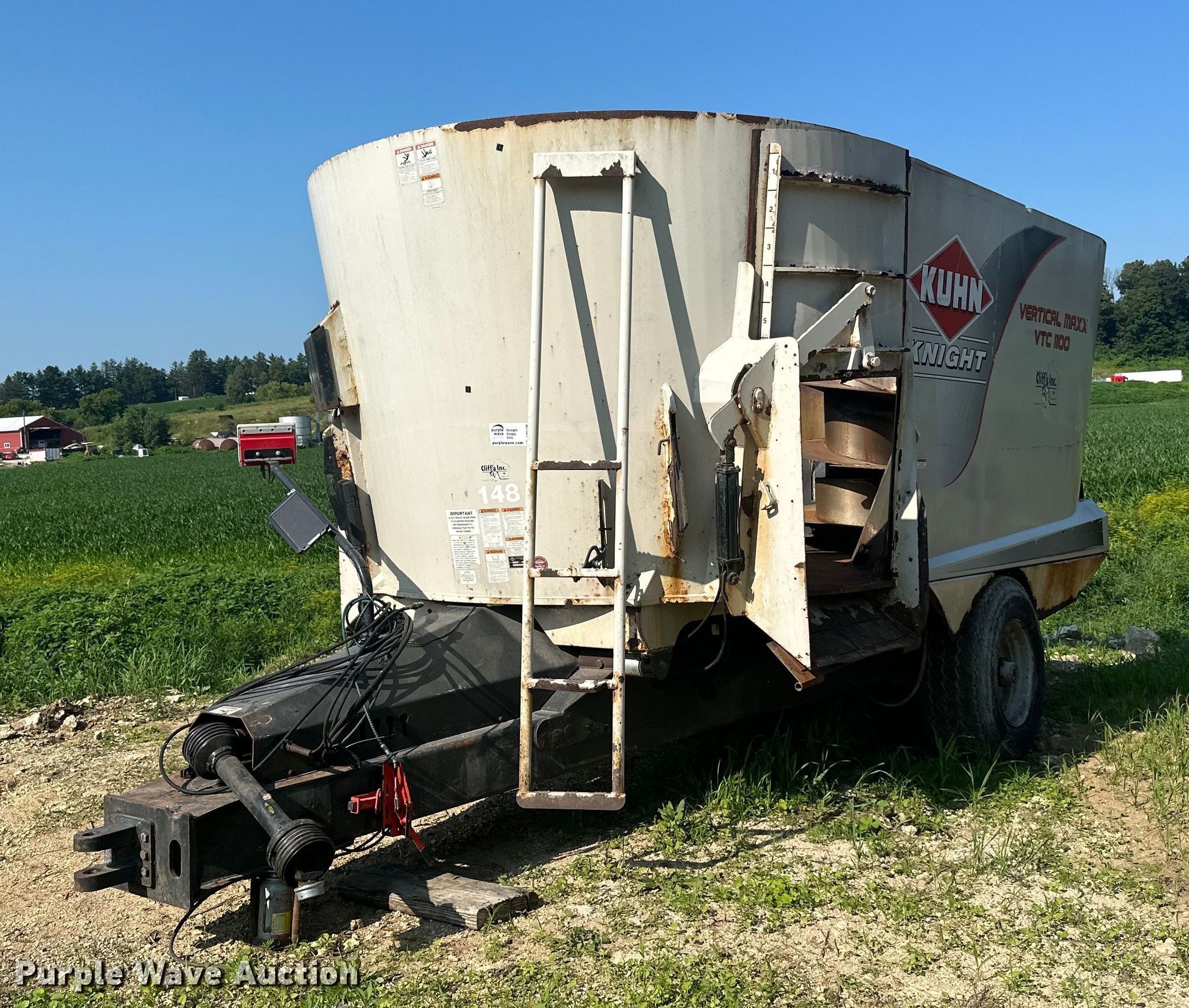Purple Wave is selling a used Feed Mixer or Bale Processor in Iowa. This item is a Kuhn Knight VTC 1100 feed mixer with the following: PTO: 1000, Auger, Quantity: 2, Diameter: 60", Discharge: Side, Rear, Chute: Hydraulic